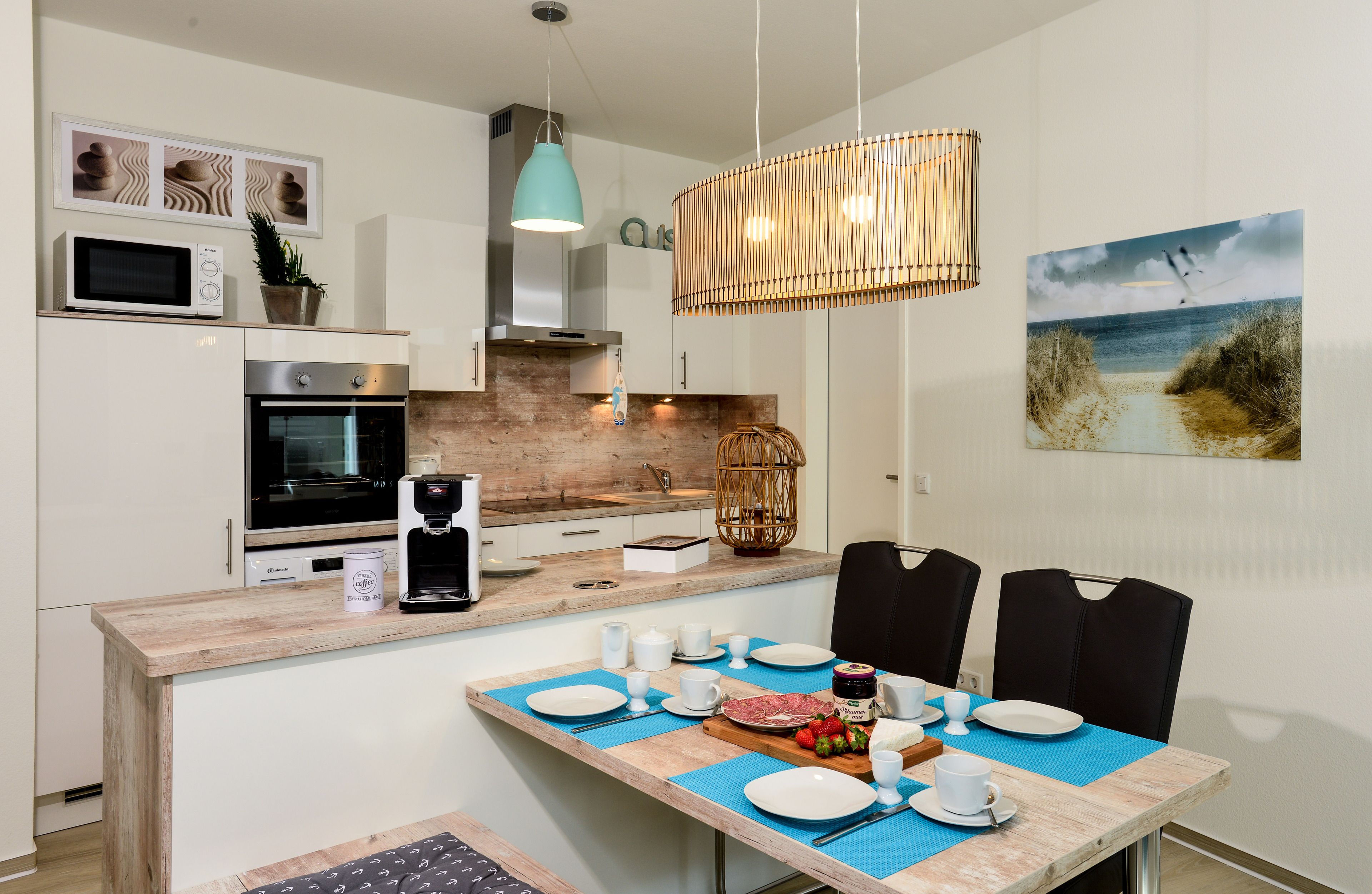 Sollte das Wetter mal nicht mitspielen wird Ihnen im Marina Loft dennoch sicher nicht langweilig. Bücher, Gesellschaftsspiele und eine Playstation 4 Pro sorgen für eine abwechslungsreiche Unterhaltung. Auf den Fernsehern gibt es auch SkyTV (einige Sky Sender, nicht das Komplett Paket). Die Küche ist zum Wohnbereich hin offen gestaltet und verfügt durch ihre Kücheninsel über viel Arbeitsfläche.