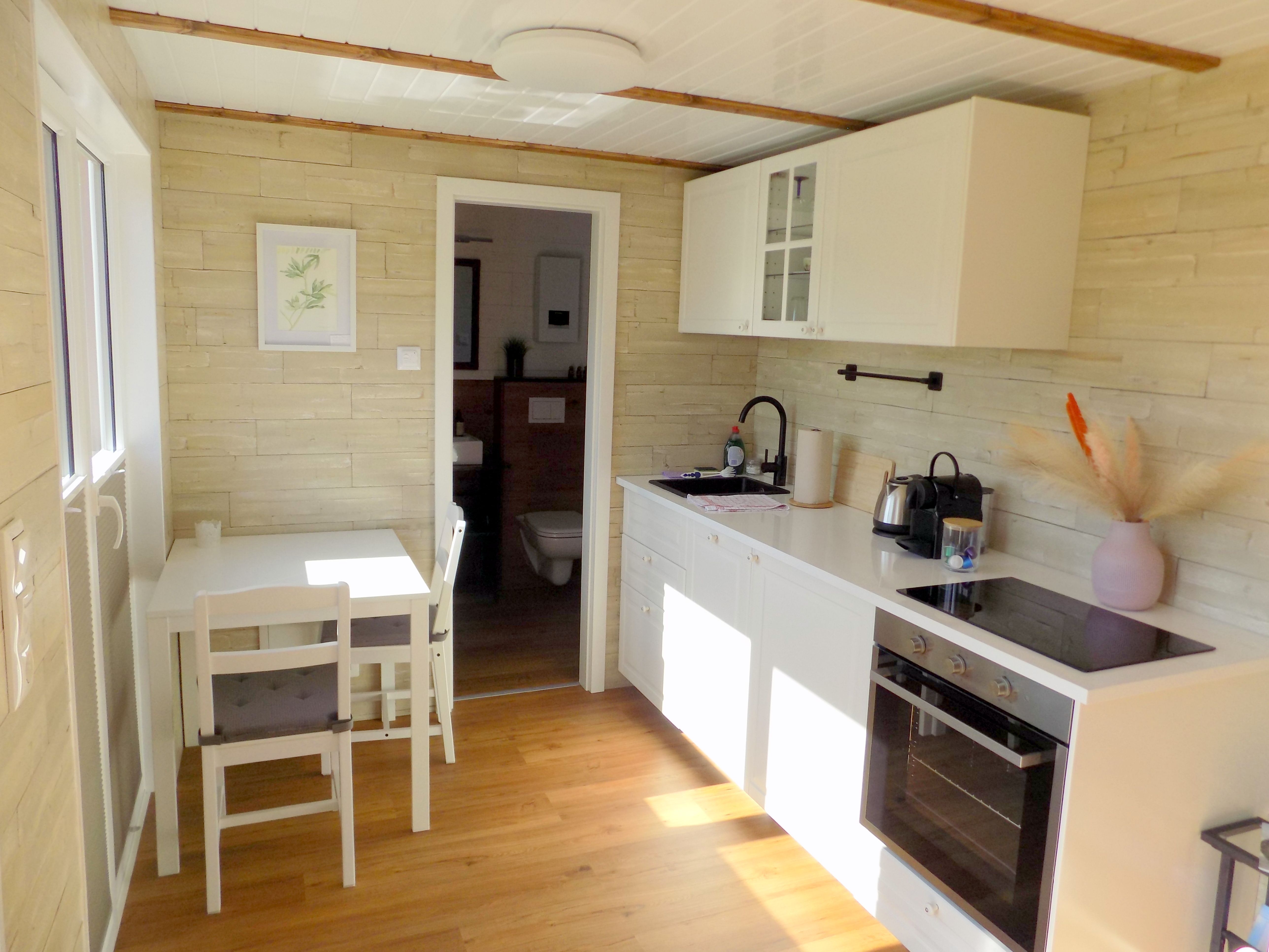 Hier seid Ihr ganz für Euch mit eigenem kleinen Grundstück und zwei benachbarten Tiny Häusern.