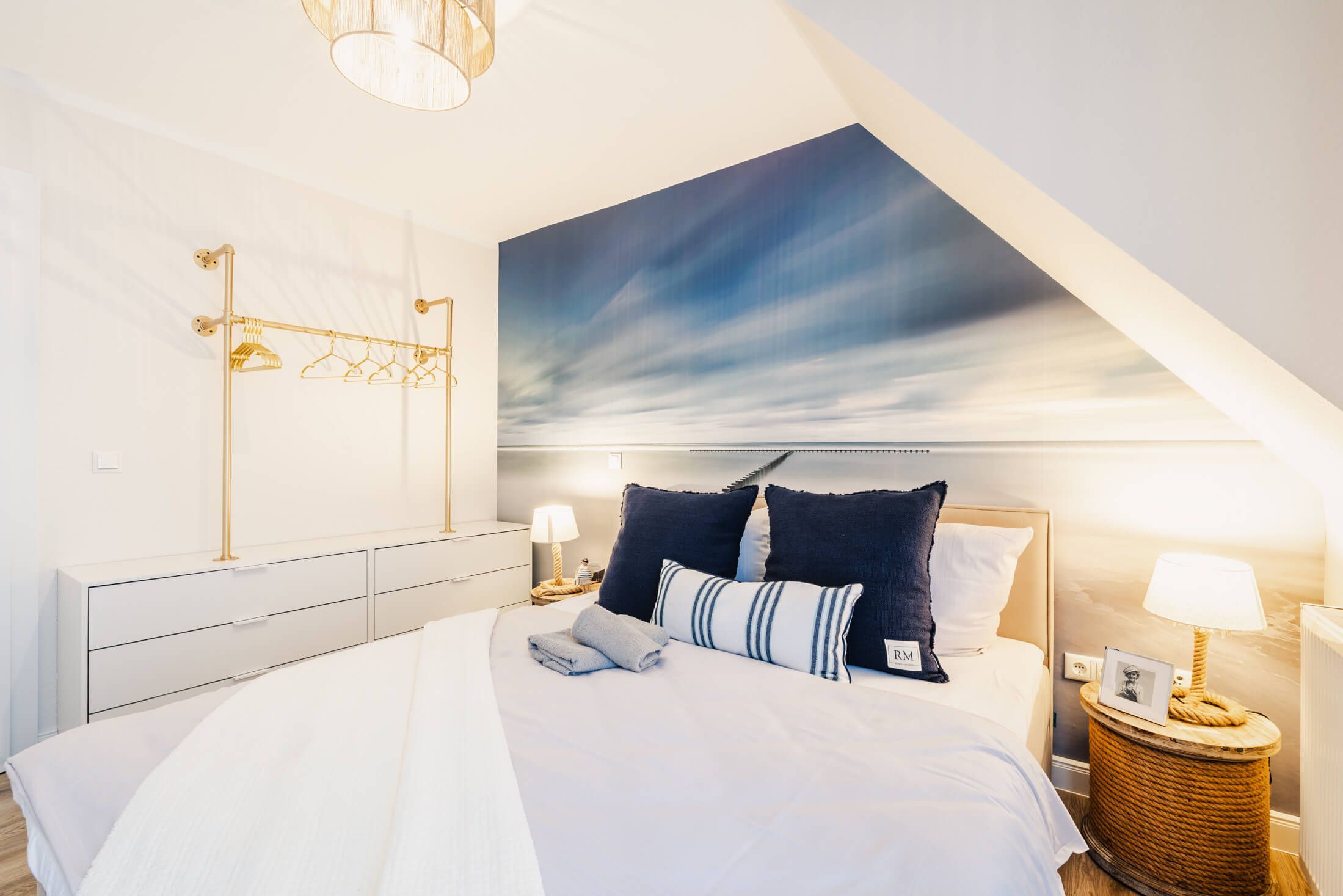 Die Ferienwohnung Lütt Pier bietet Platz für bis zu 6 Personen. Im unteren Bereich der Maisonette finden Sie zwei separate Schlafzimmer, die jeweils mit gemütlichen Doppelbetten ausgestattet sind und Ihnen erholsame Nächte garantieren. Das moderne Badezimmer mit Dusche lässt keine Wünsche offen. Die voll ausgestattete Küche bietet alles, was Sie für die Zubereitung Ihrer Lieblingsmahlzeiten benötigen ? von Kaffeemaschine bis Kochutensilien ist alles vorhanden.