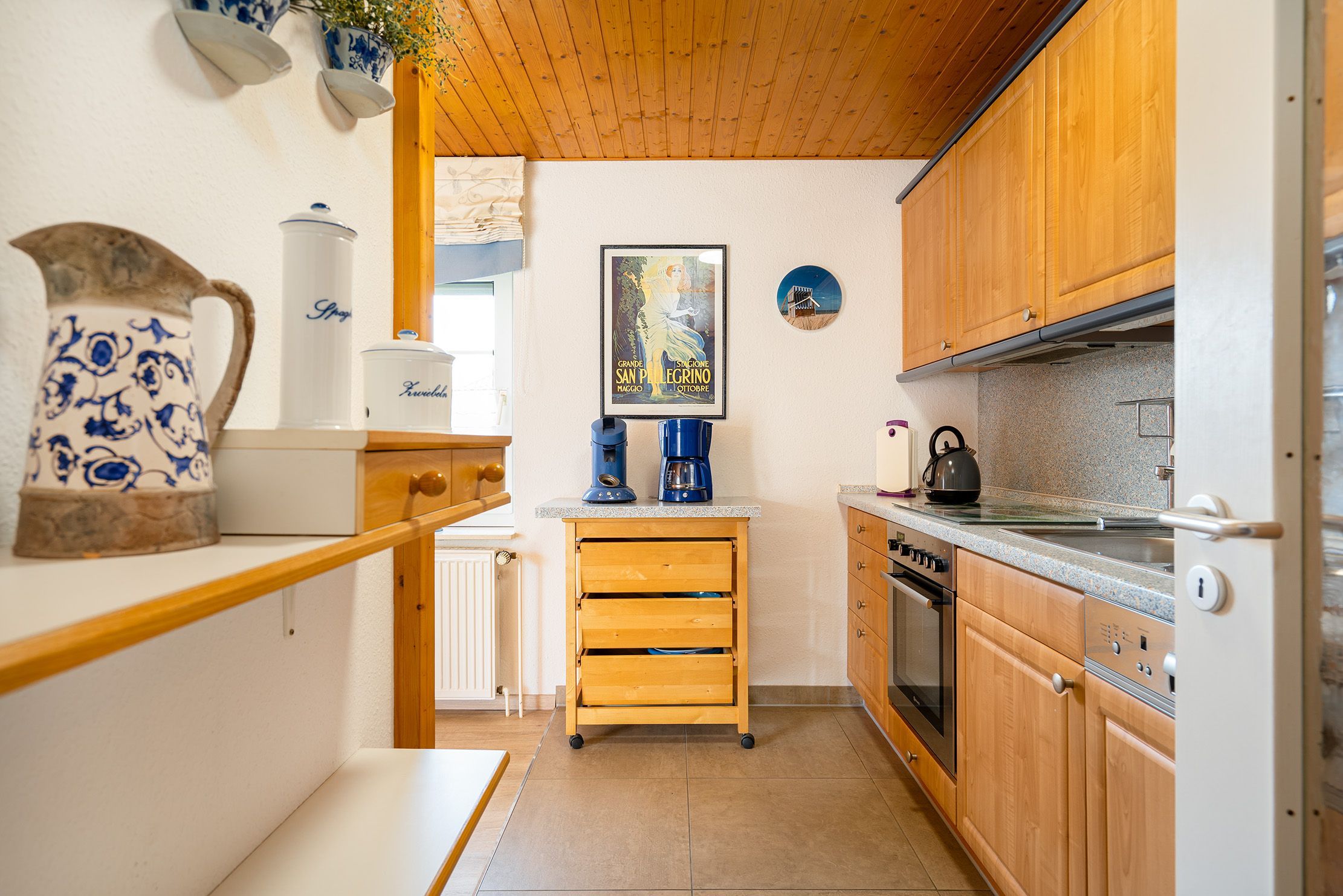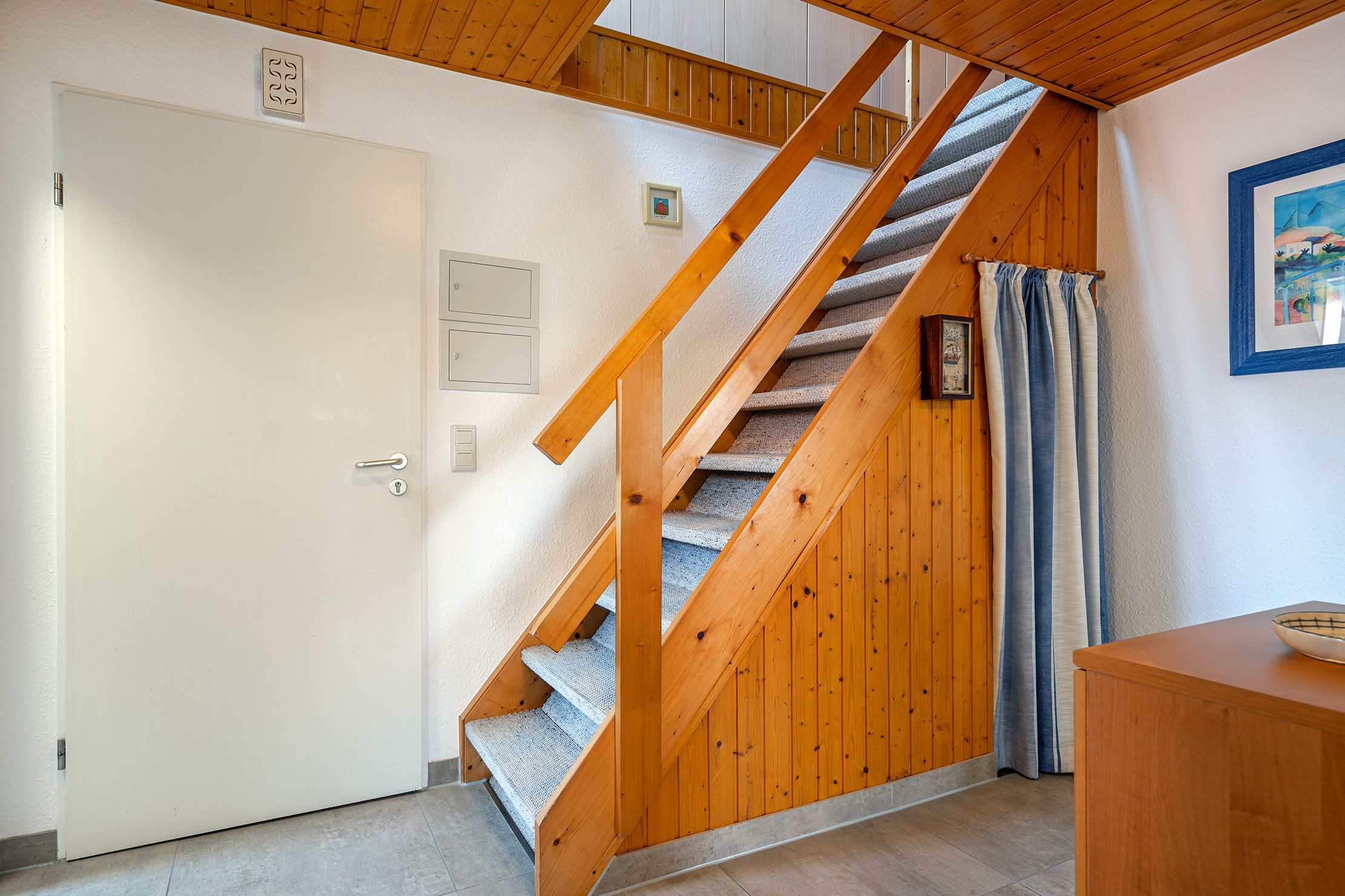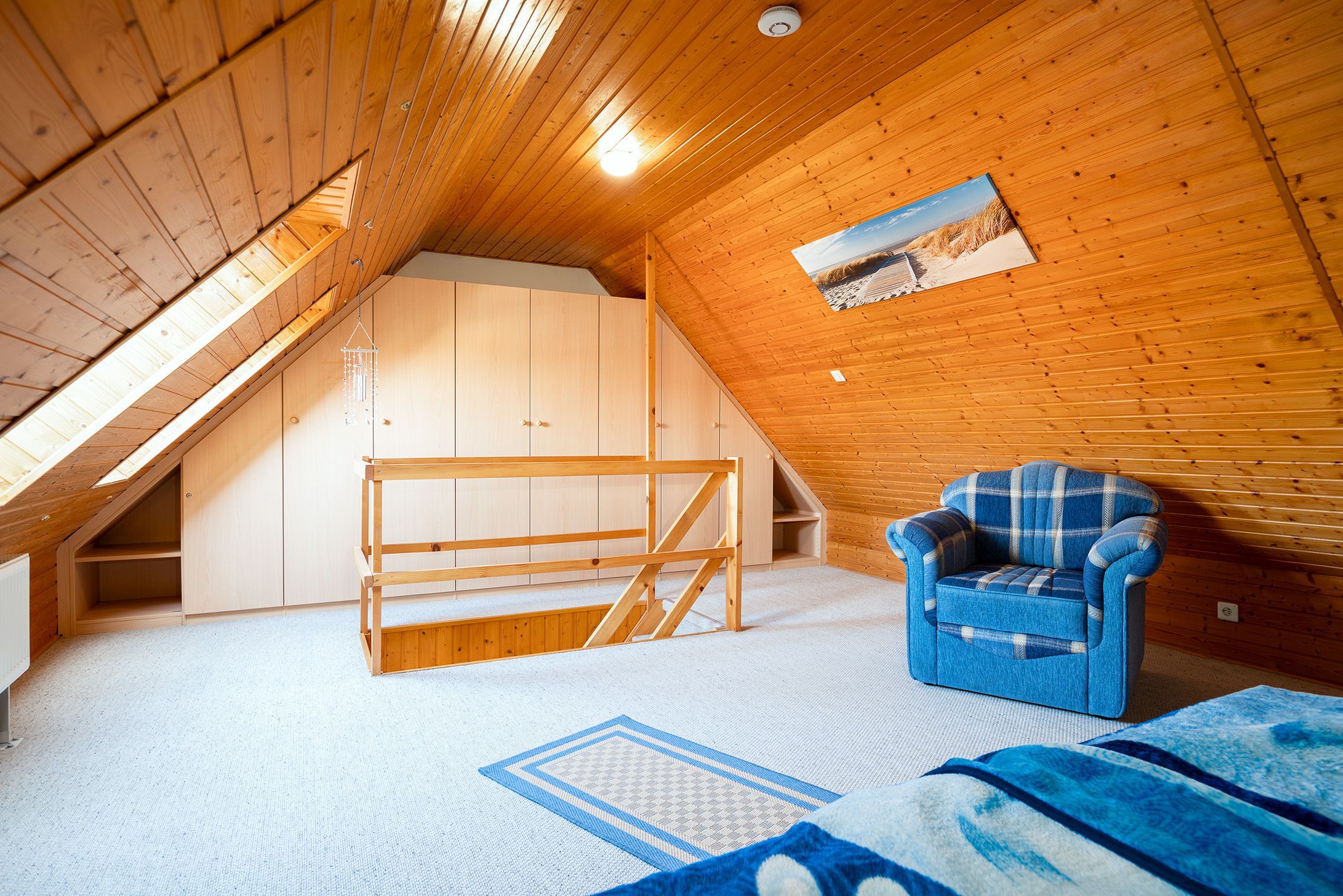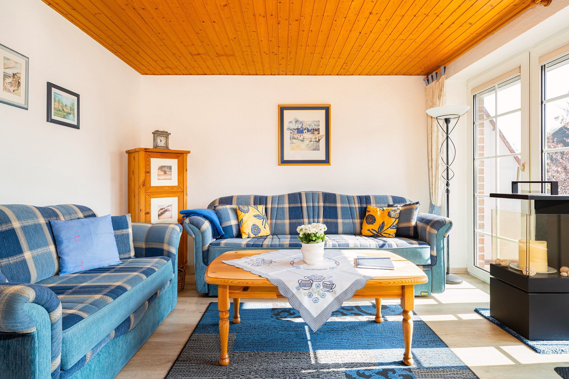 Die Ferienwohnung Friesentraum befindet sich in einem traditionellen Ferienhausgebiet im Obergeschoss eines Hauses mit vier Wohneinheiten. Sie vereint auf charmante Weise ostfriesische Tradition mit modernem Wohnkomfort. Beim Betreten der Wohnung fällt sofort die liebevolle, traditionelle Einrichtung ins Auge: rustikale Holzmöbel, gemütliche Stoffe und typisch friesische Dekorationen schaffen eine warme, heimelige Atmosphäre. Der Wohnbereich und die Küche strahlen den gemütlichen Charakter eines klassischen Landhauses aus ideal, um zur Ruhe zu kommen. Gleichzeitig überzeugt die Wohnung mit modernen Akzenten: Das renovierte Tageslichtbad mit der ebenerdigen Dusche ist zeitgemäß ausgestattet. Auch eines der beiden Schlafzimmer wurde modernisiert und strahlt mit klaren Linien, hochwertigen Materialien und angenehmer Farbgestaltung eine frische, zeitlose Ruhe aus. Das zweite, traditionell gestaltete Schlafzimmer erreichen Sie durch eine Treppe und ist offen als Galerie gestaltet. Es bietet neben einem Schlafbereich auch einen Sessel. Die Wohnung bietet weiterhin einen Balkon, auf dem sich die frische Luft genießen lässt. Neben einem Fahrradabstellraum gibt es außerdem einen reservierten PKW-Stellplatz vor dem Haus.
