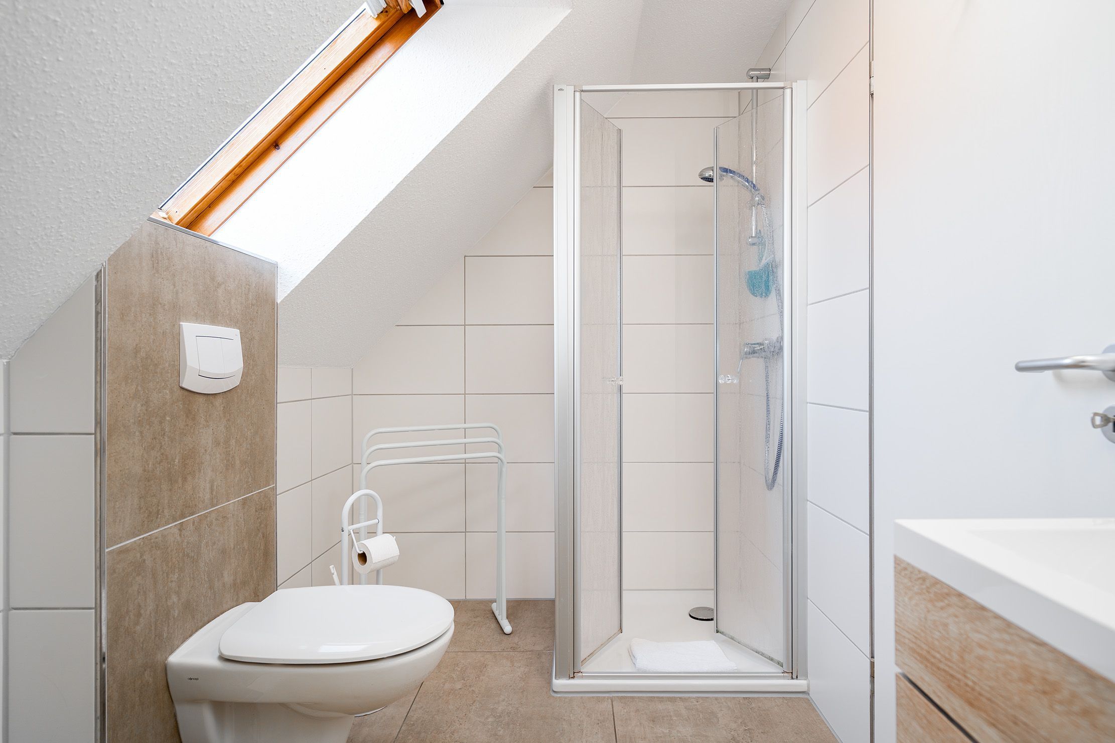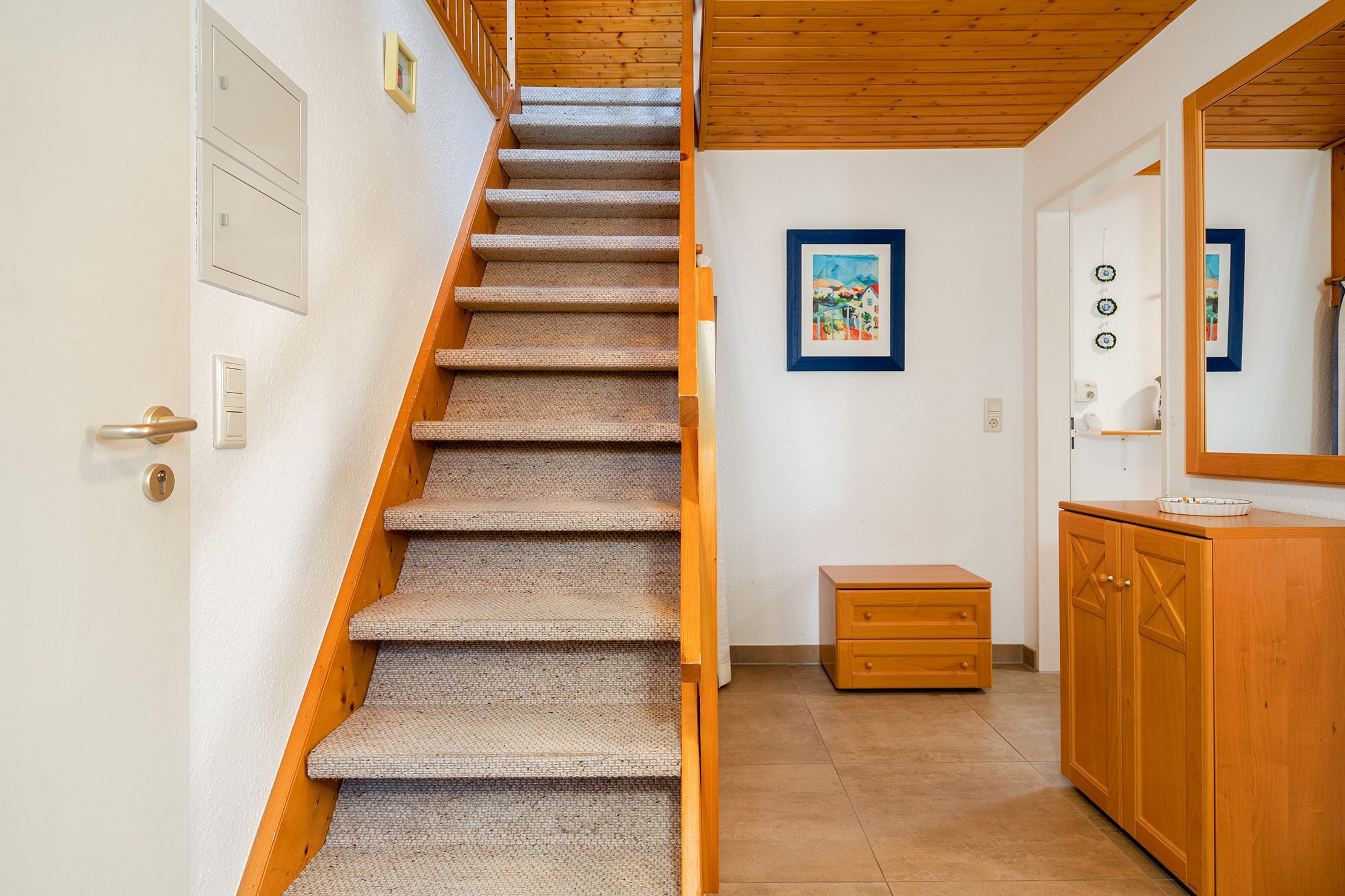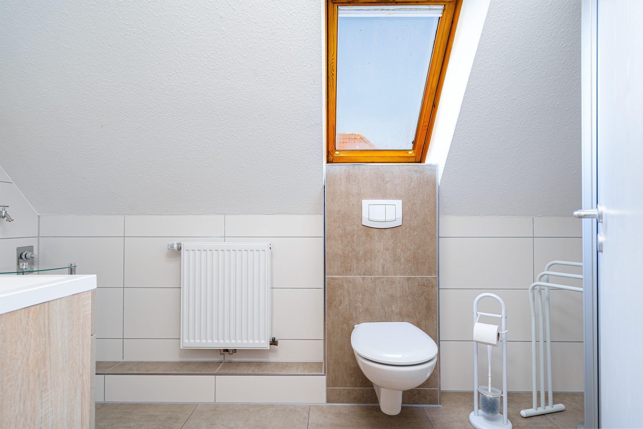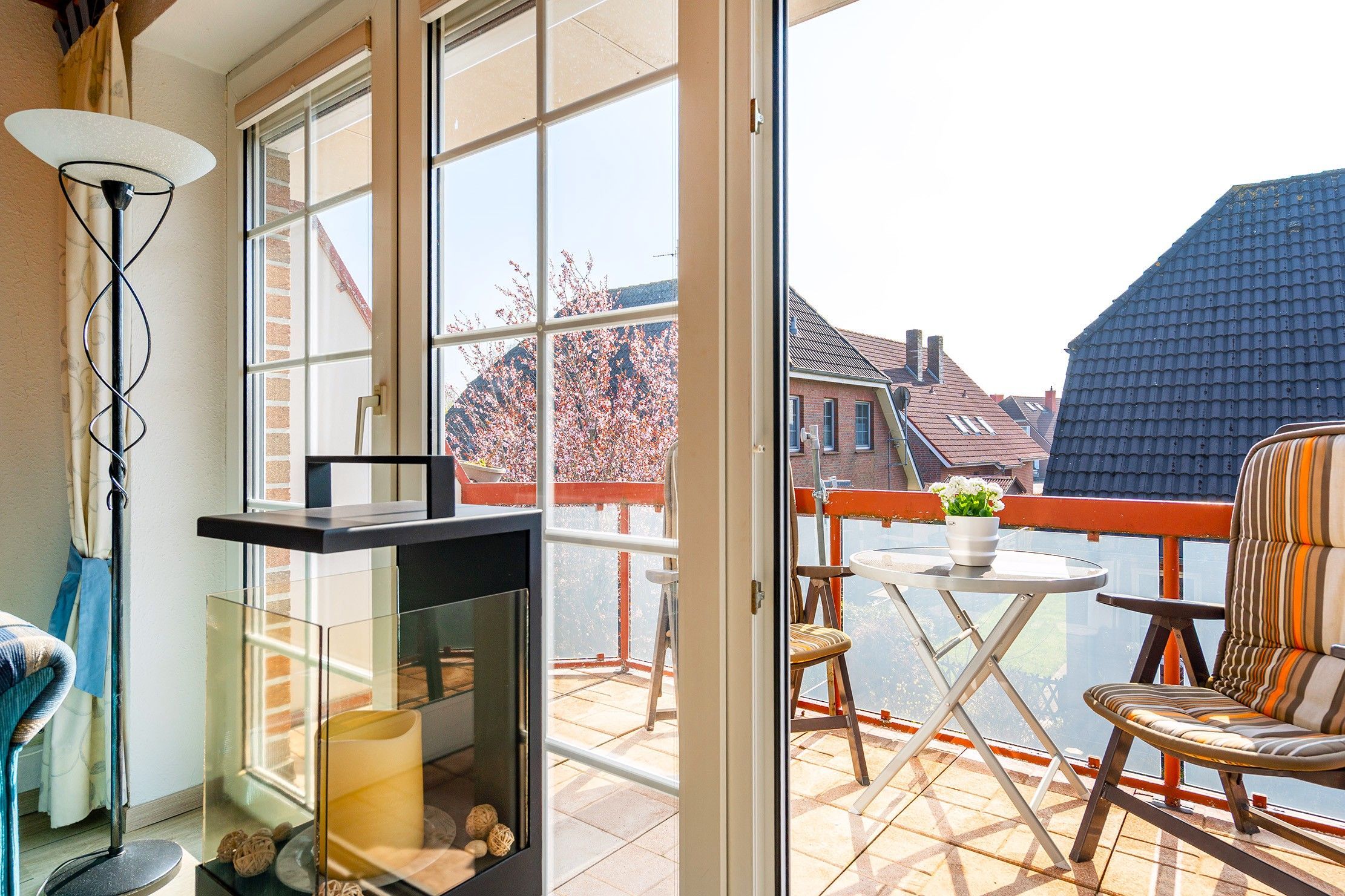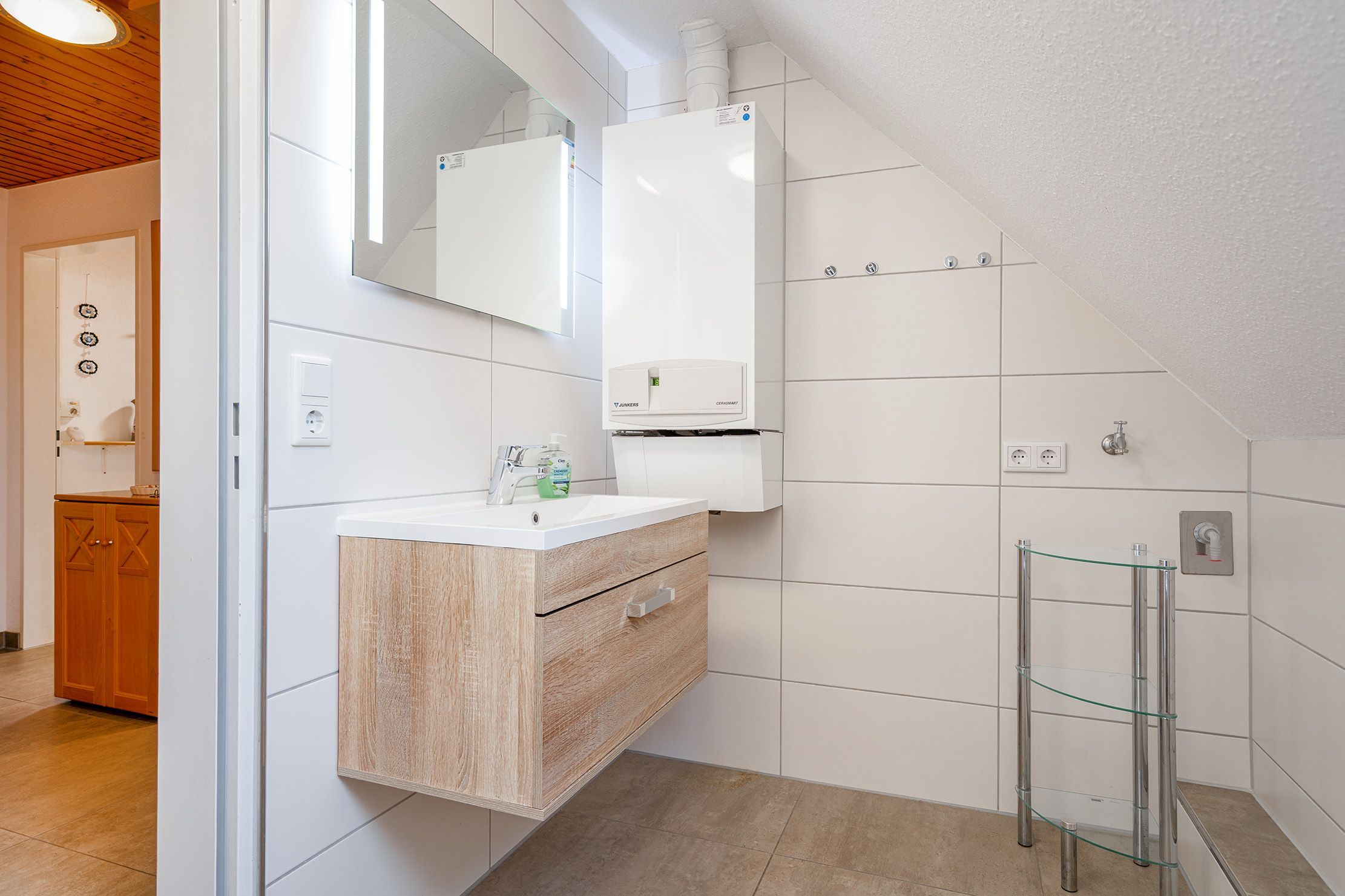 Die Ferienwohnung Friesentraum befindet sich in einem traditionellen Ferienhausgebiet im Obergeschoss eines Hauses mit vier Wohneinheiten. Sie vereint auf charmante Weise ostfriesische Tradition mit modernem Wohnkomfort. Beim Betreten der Wohnung fällt sofort die liebevolle, traditionelle Einrichtung ins Auge: rustikale Holzmöbel, gemütliche Stoffe und typisch friesische Dekorationen schaffen eine warme, heimelige Atmosphäre. Der Wohnbereich und die Küche strahlen den gemütlichen Charakter eines klassischen Landhauses aus ideal, um zur Ruhe zu kommen. Gleichzeitig überzeugt die Wohnung mit modernen Akzenten: Das renovierte Tageslichtbad mit der ebenerdigen Dusche ist zeitgemäß ausgestattet. Auch eines der beiden Schlafzimmer wurde modernisiert und strahlt mit klaren Linien, hochwertigen Materialien und angenehmer Farbgestaltung eine frische, zeitlose Ruhe aus. Das zweite, traditionell gestaltete Schlafzimmer erreichen Sie durch eine Treppe und ist offen als Galerie gestaltet. Es bietet neben einem Schlafbereich auch einen Sessel. Die Wohnung bietet weiterhin einen Balkon, auf dem sich die frische Luft genießen lässt. Neben einem Fahrradabstellraum gibt es außerdem einen reservierten PKW-Stellplatz vor dem Haus.