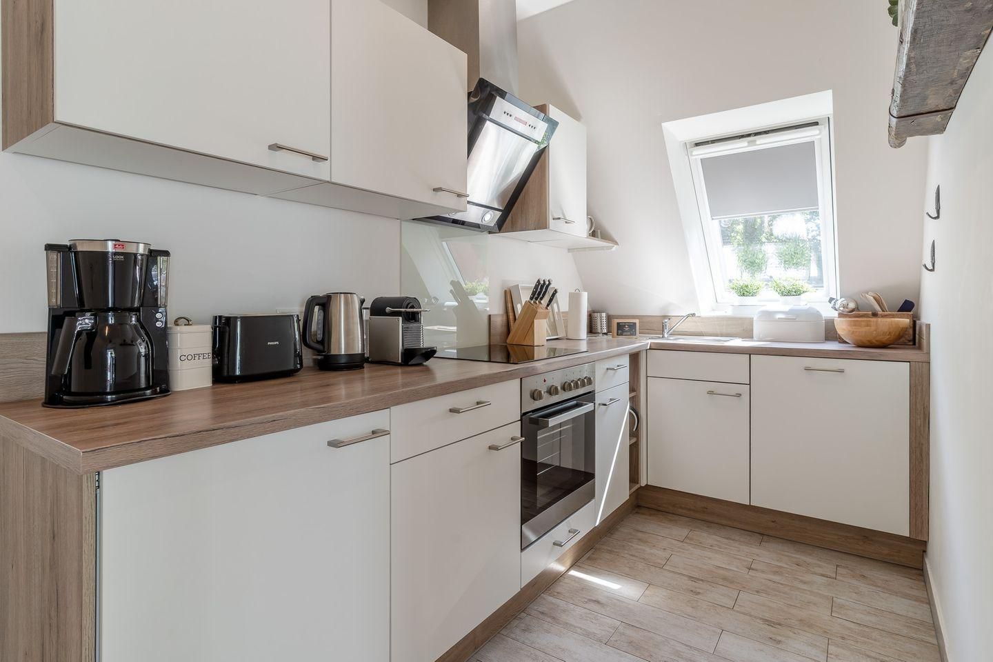 Die Küche ist vollständig ausgestattet und lässt keine Wünsche offen: Ein moderner Herd (Ceran), ein Elektro-Backofen, eine Spülmaschine sowie eine Mikrowelle und Kühlschrank mit Gefrierfach gehören zur Ausstattung. Hier können Sie Ihre Lieblingsgerichte zubereiten. Für zusätzlichen Komfort stehen Ihnen auch Küchenutensilien, Geschirr und Besteck zur Verfügung. Ein Wasserkocher und eine Kaffeemaschine für den perfekten Start in den Tag runden das Angebot ab.