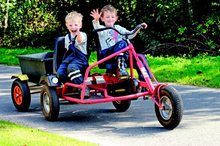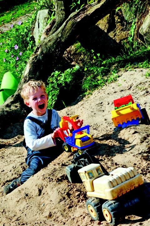Ein grosser Sandspielplatz mit Wasserpumpe, viele verschiedene Dino-cars und Trettrecker, eine Strohecke, eine Spielscheune mit Billard, Tischtennis und Kicker sorgen für einen bunten Tag.