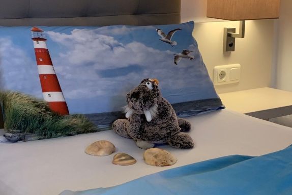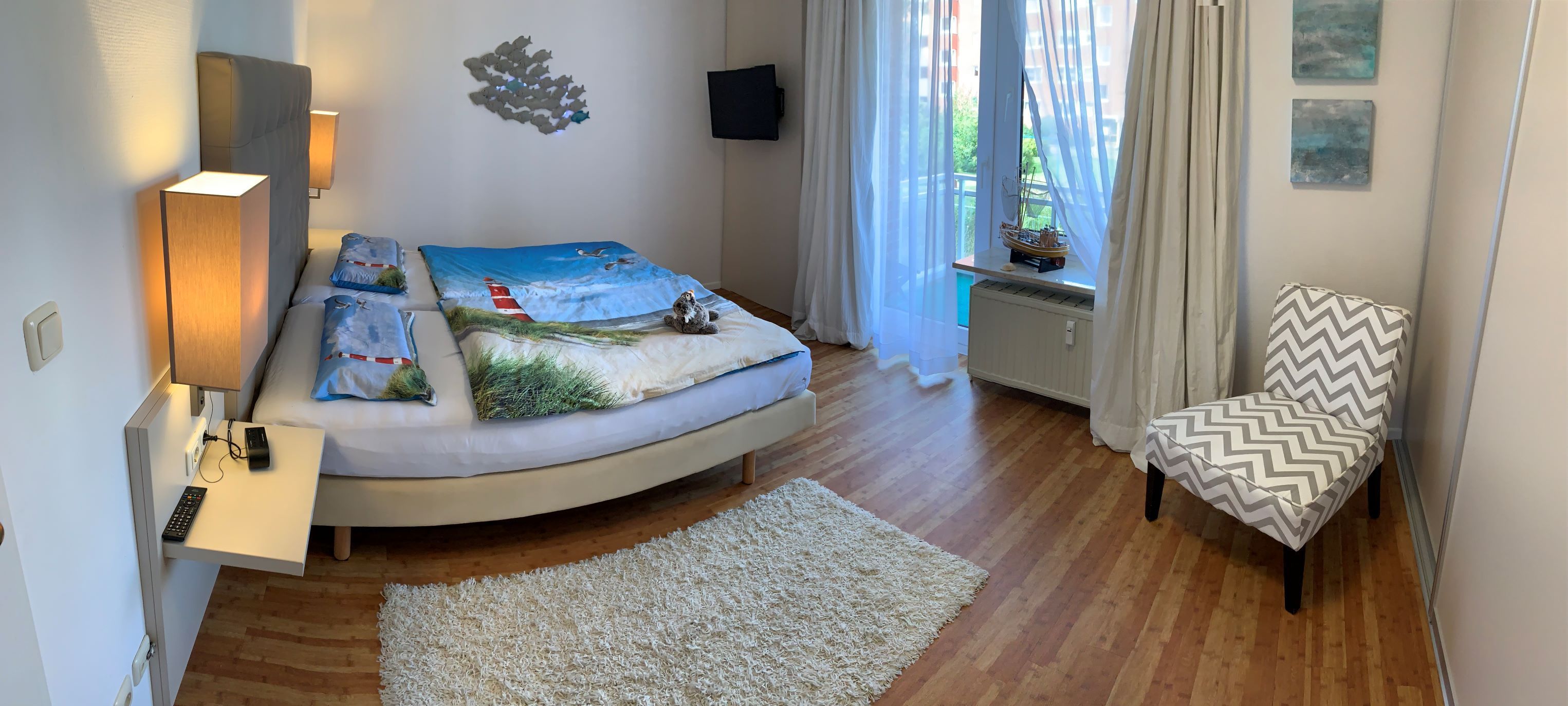 Sie wohnen in einem hochwertigen - maritim gestalteten - groß-zügigen 2-Zimmer-Appartement für bis zu 4 Personen auf 55 m² Wohnfläche im 1. OG mit zwei West-Balkonen.