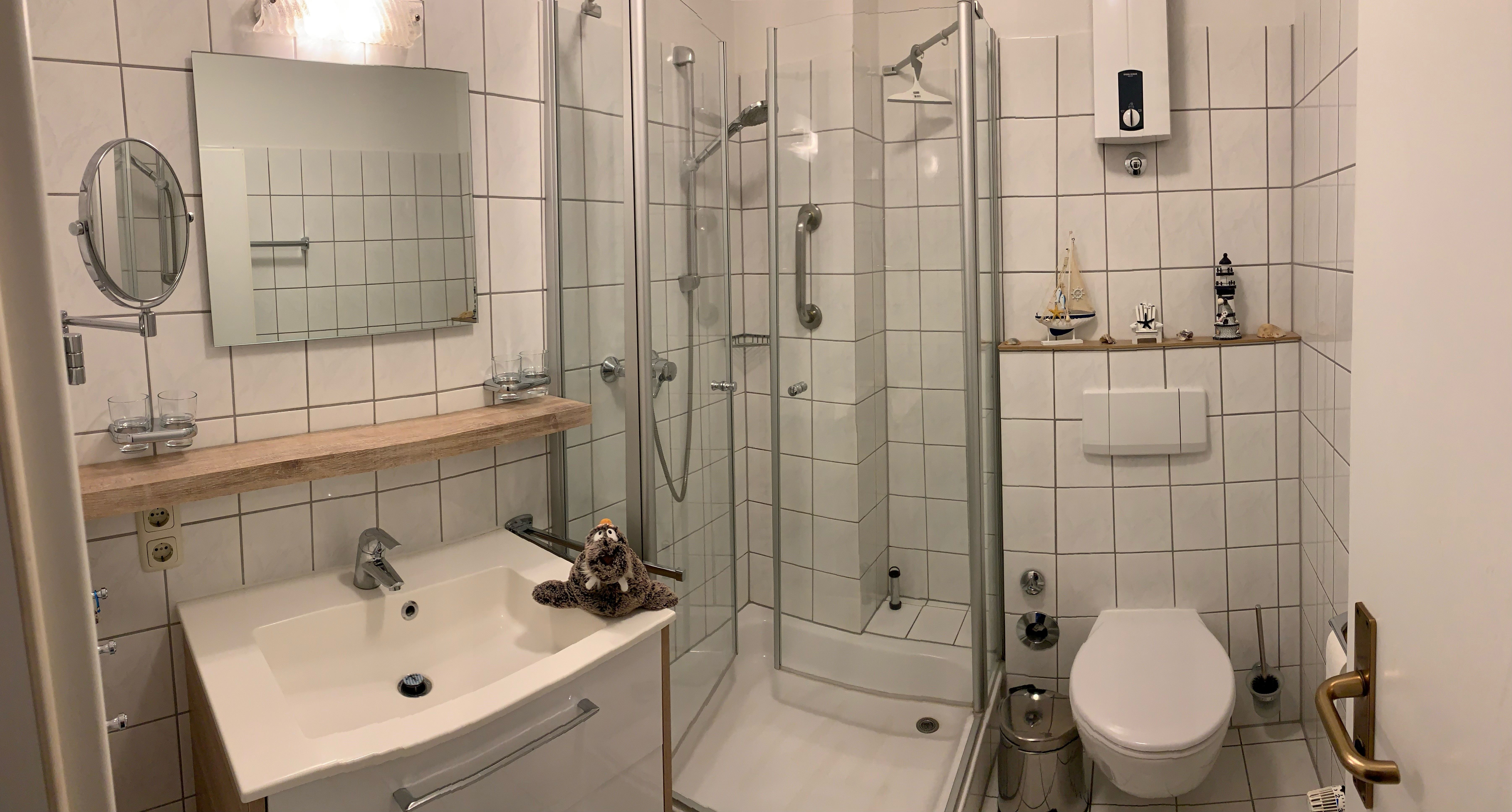 Das Bad ist hochwertig ausgestattet. Ein Föhn ist vorhanden.