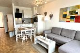 Starten Sie Ihren Tag mit einem Frühstück auf dem bestuhlten Ostbalkon und lassen Sie sich vom Sonnenaufgang und dem sanften Meeresrauschen verzaubern – so beginnt Erholung! Die Wohnung bietet ein gemütliches Wohnzimmer mit moderner, offener Küche und einer komfortablen Sitzecke. Das praktische Schrankbett verwandelt den Wohnbereich bei Bedarf in einen weiteren Schlafraum. Im separaten Schlafzimmer mit zwei Einzelbetten (90x200 cm) finden Sie Ruhe und Entspannung nach einem Tag am Meer.