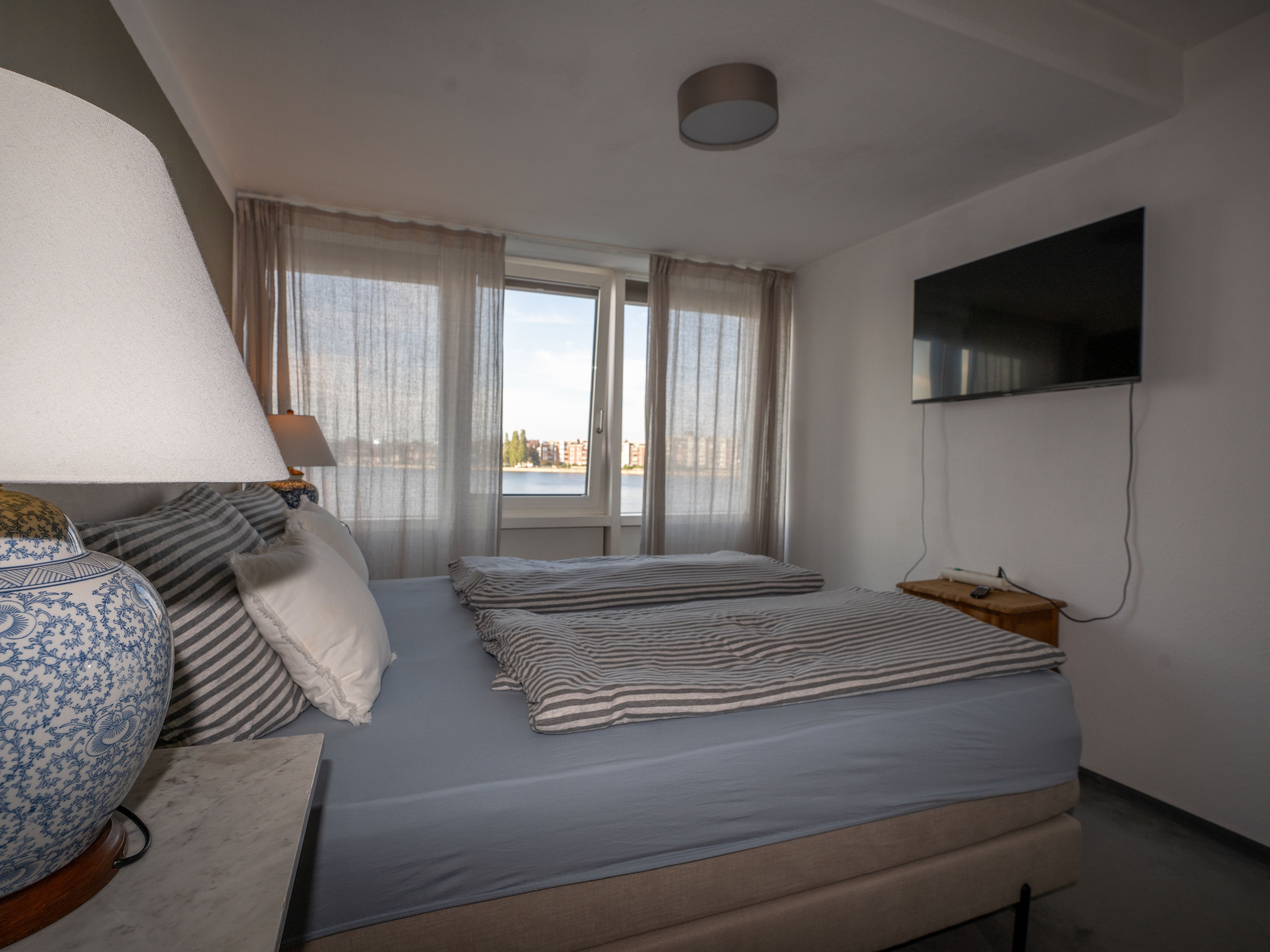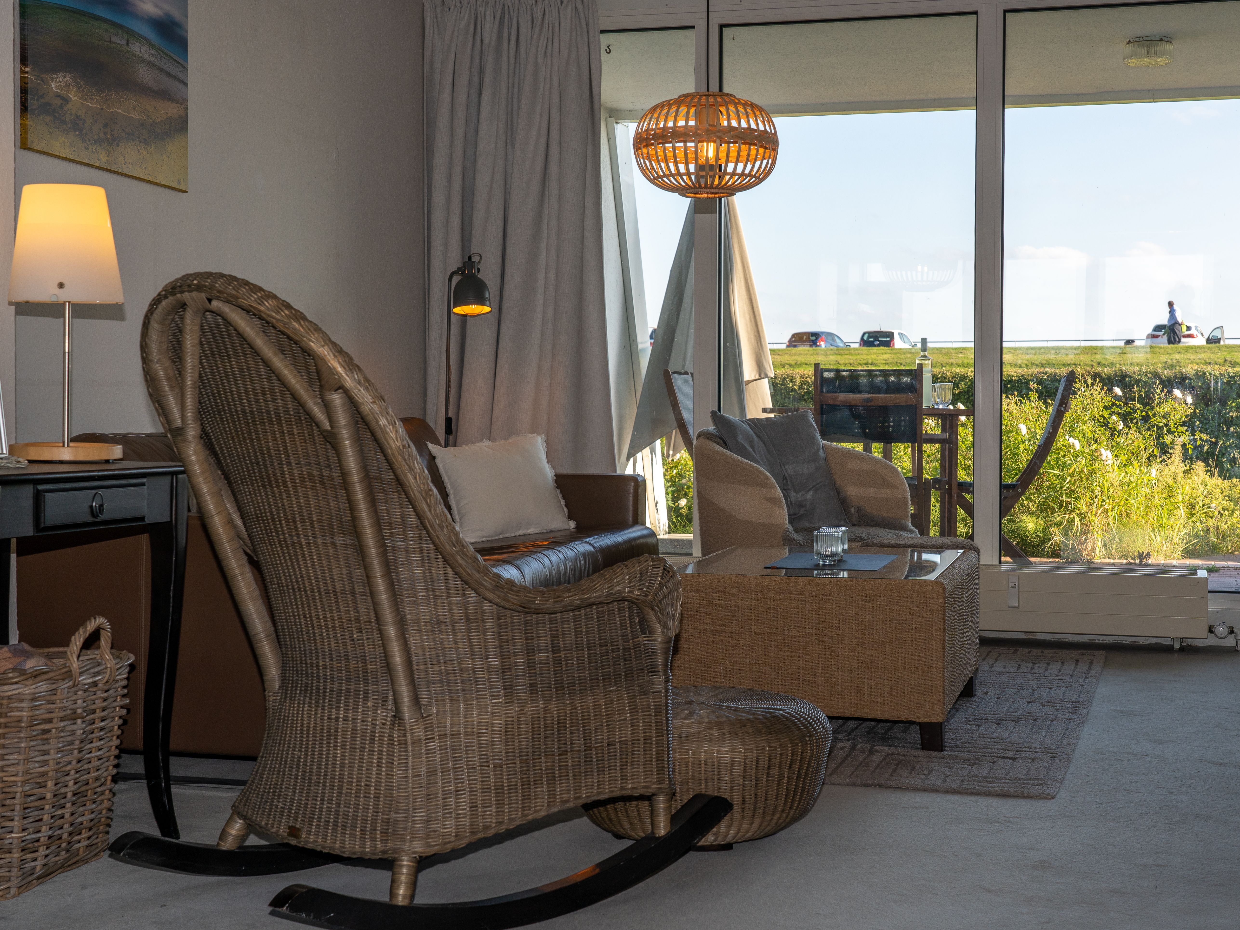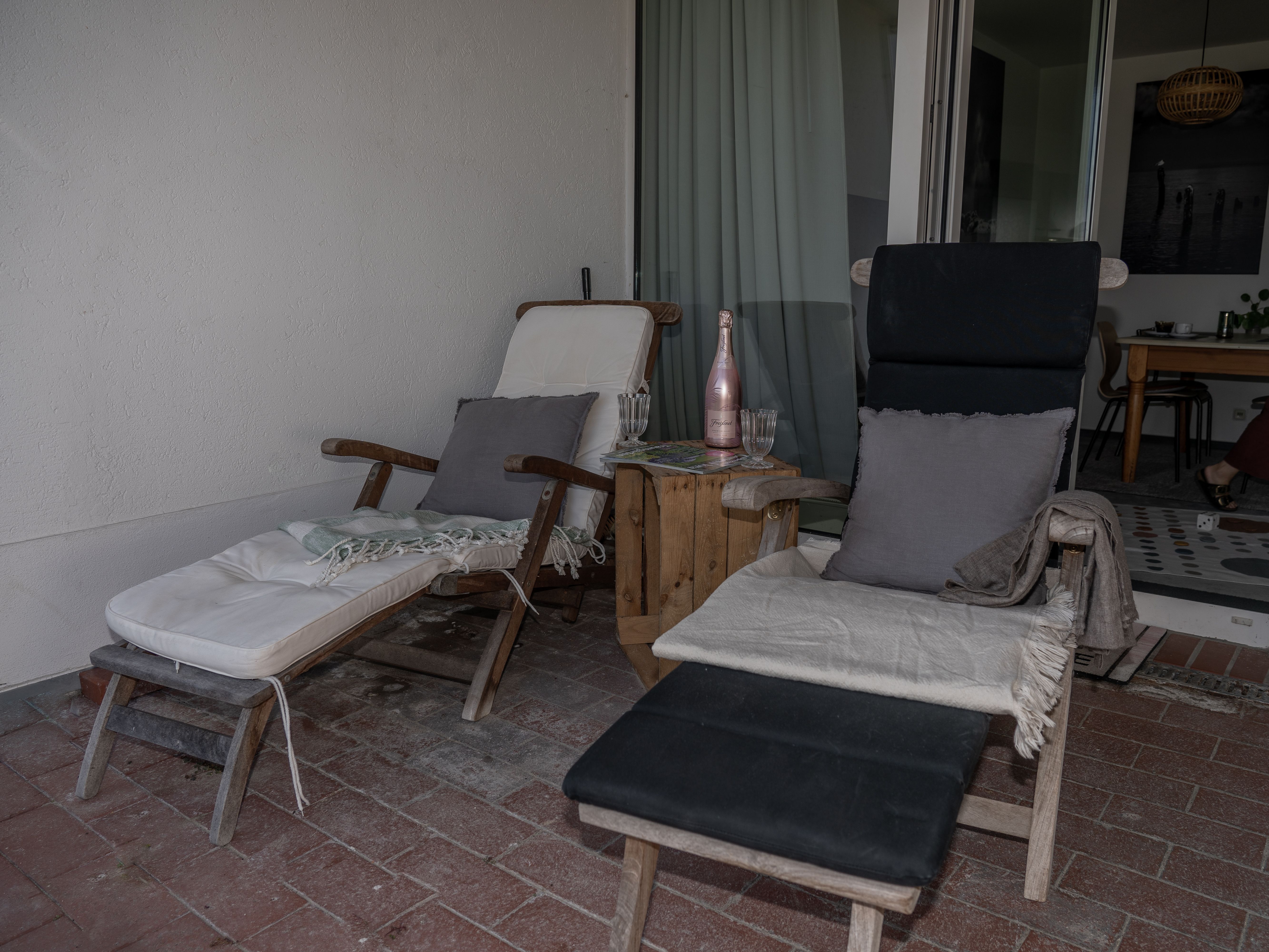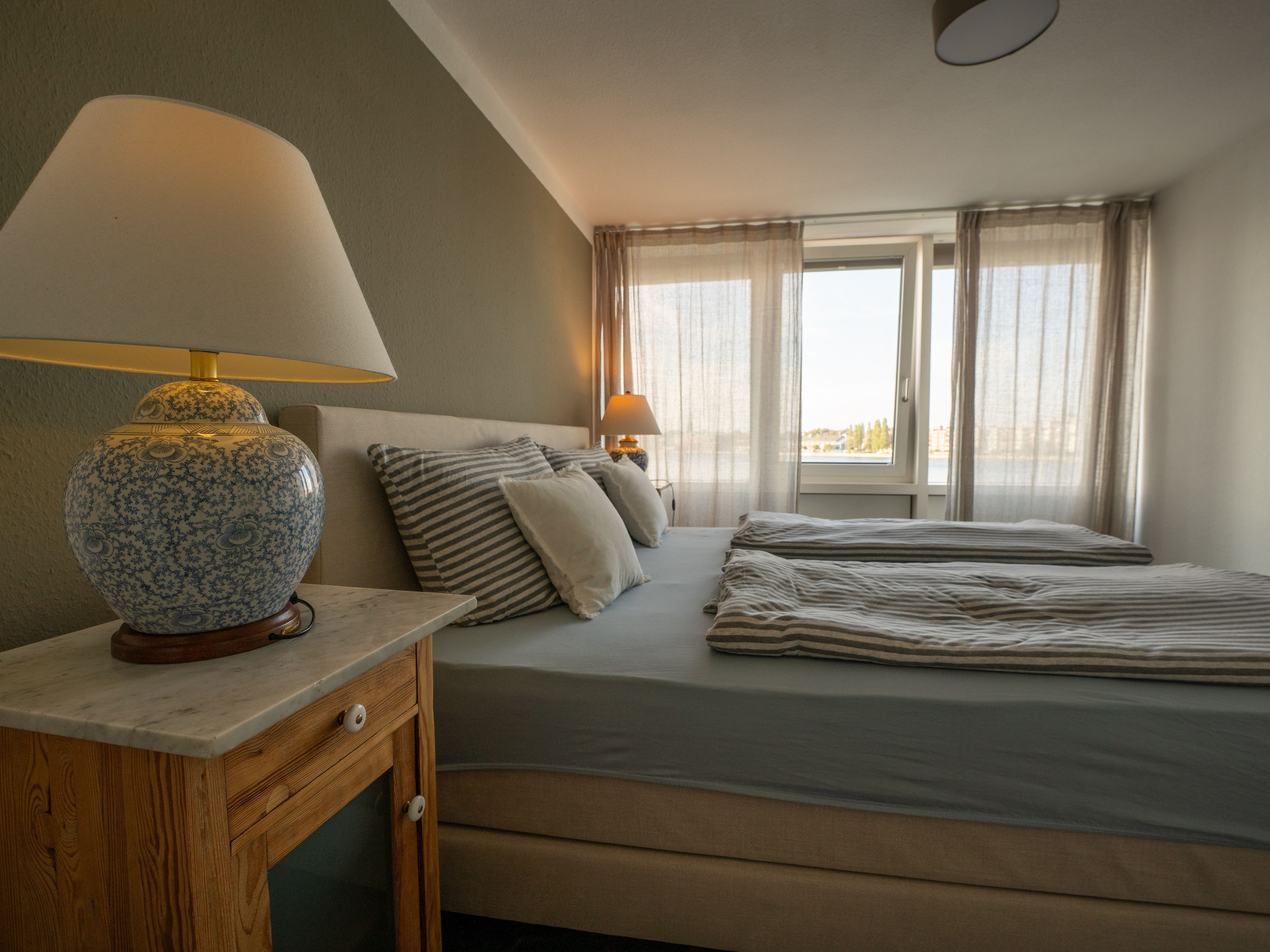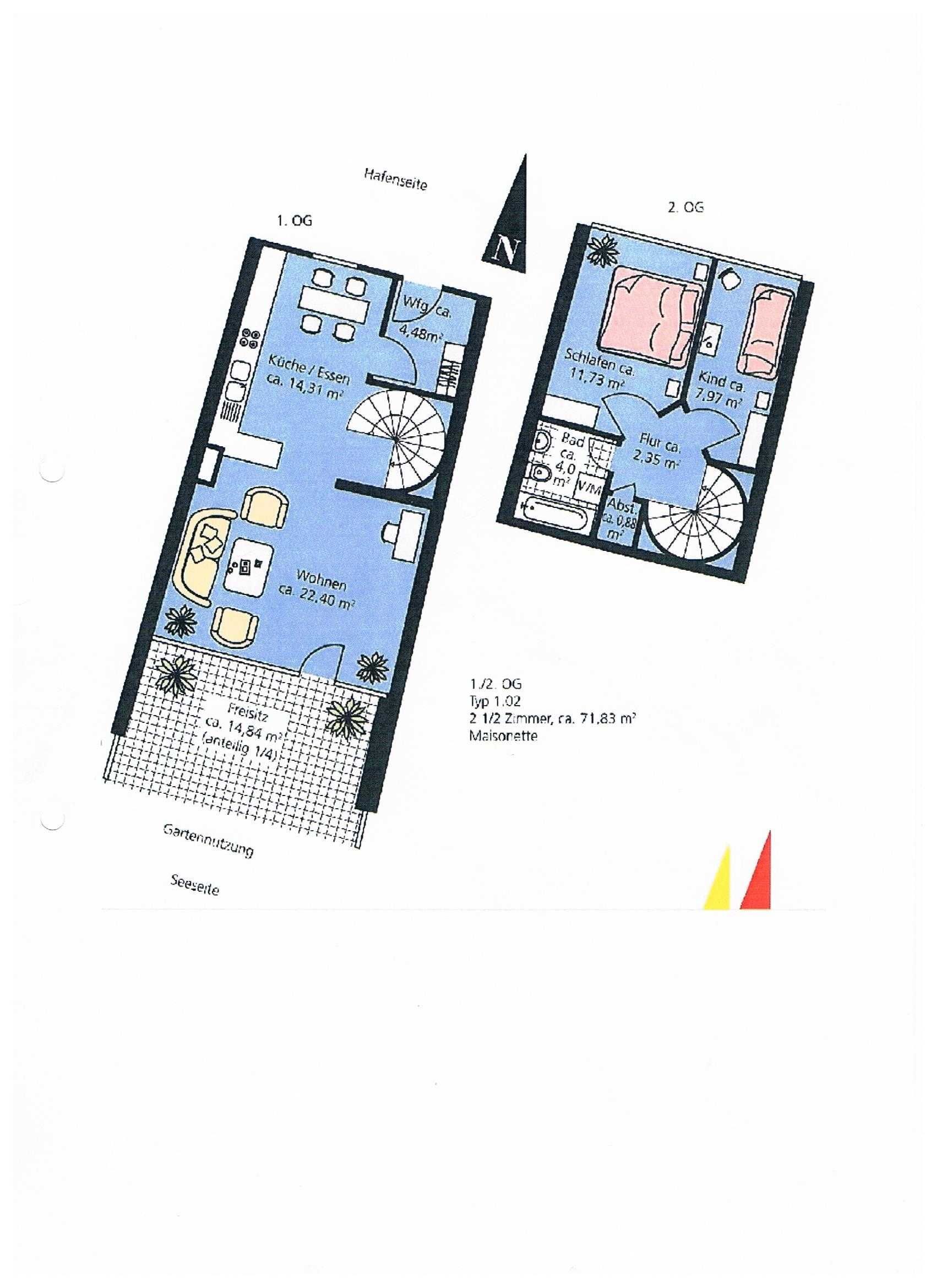 Die Maisonettewohnung befindet sich im Erd- und im 1. Obergeschoß des Helgoland Avantgarde, einer repräsentativen Wohnanlage am Südstrand der Nordseestadt Wilhelmshaven. Im Erdgeschoß befindet sich der offene Wohn-/Eßbereich mit Blick auf den maritimen Yachthafen und direkten Zugang zum Südstrand. Im 1. Obergeschoß befinden sich zwei Schlafzimmer, das größere ist mit einem Doppelbett ausgestattet, das kleinere mit einem Etagenbett. Beide Zimmer mit Blick auf den Binnenhafen. Die Wohnung verfügt über einen eigenen PKW-Stellplatz.