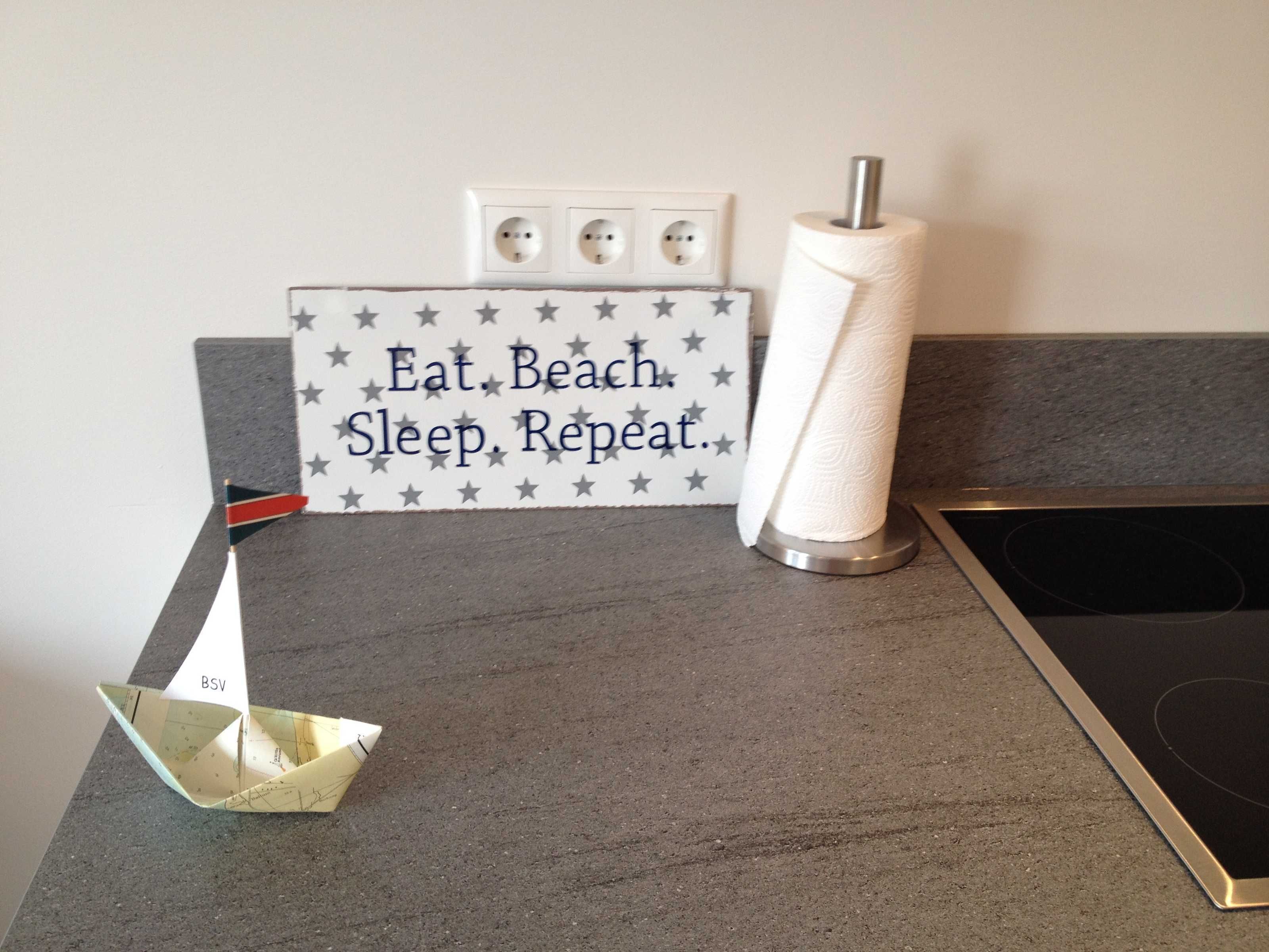 • neue offene Küche mit Ceranfeld und Backofen, Kühlschrank, Geschirrspüler, Dunstabzugshaube, Kaffeemaschine, Wasserkocher, Toaster und Mikrowelle.