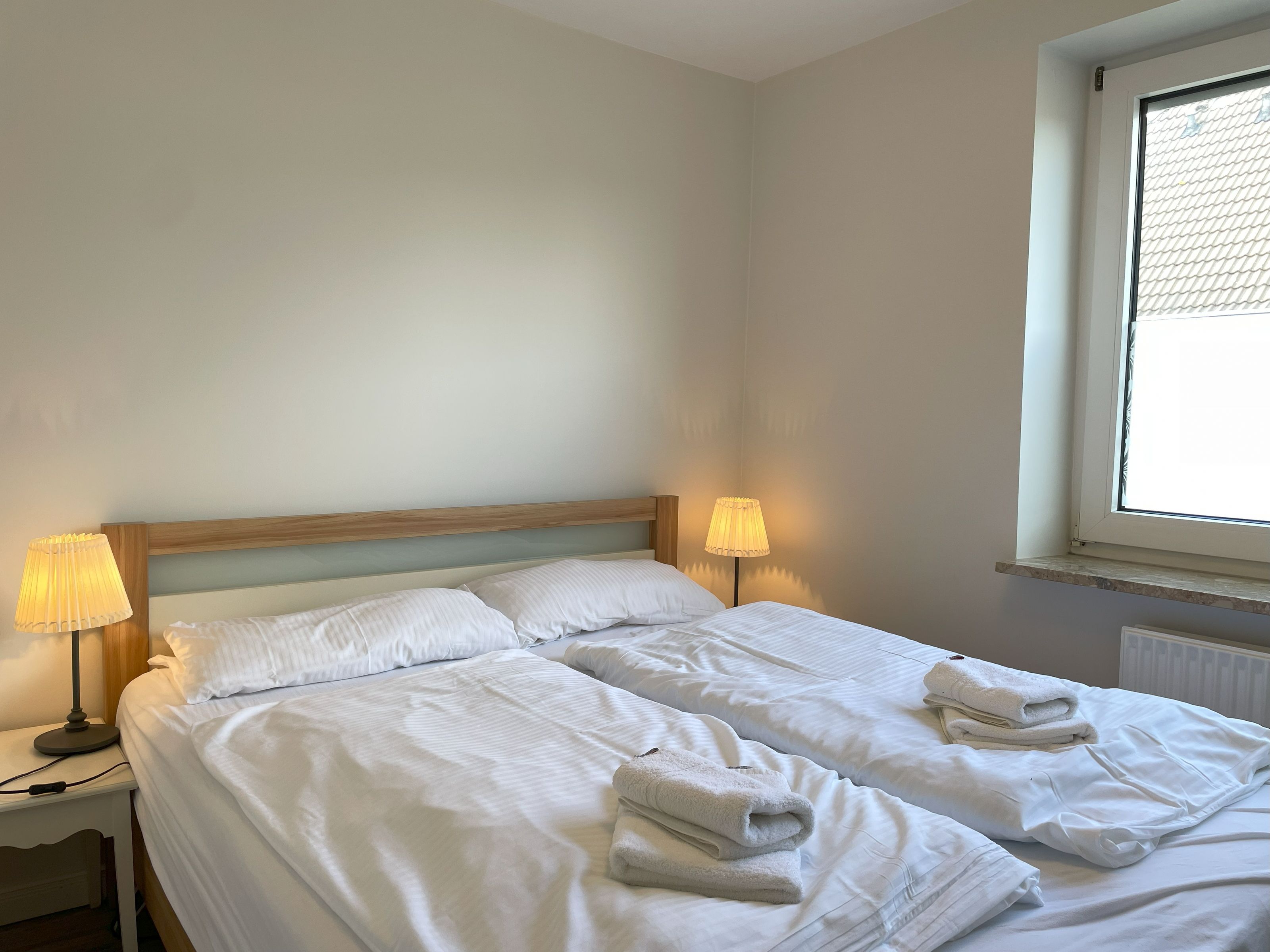 • Unsere größte Wohnung ist eigentlich ein Haus im Haus - für alle, die auch im Urlaub gern großzügig wohnen und mit Freunden, großer Familie oder mehreren Generationen verreisen. Die Wohnung erstreckt sich über 2 Etagen. 4 Schlafzimmer, 1 Dusch-Bad im 1. OG, ein WC im Erdgeschoss, nagelneue Küche mit großem Kühl- und Gefrierschrank, gemütliches Wohnzimmer, große Südwest-Terrasse...