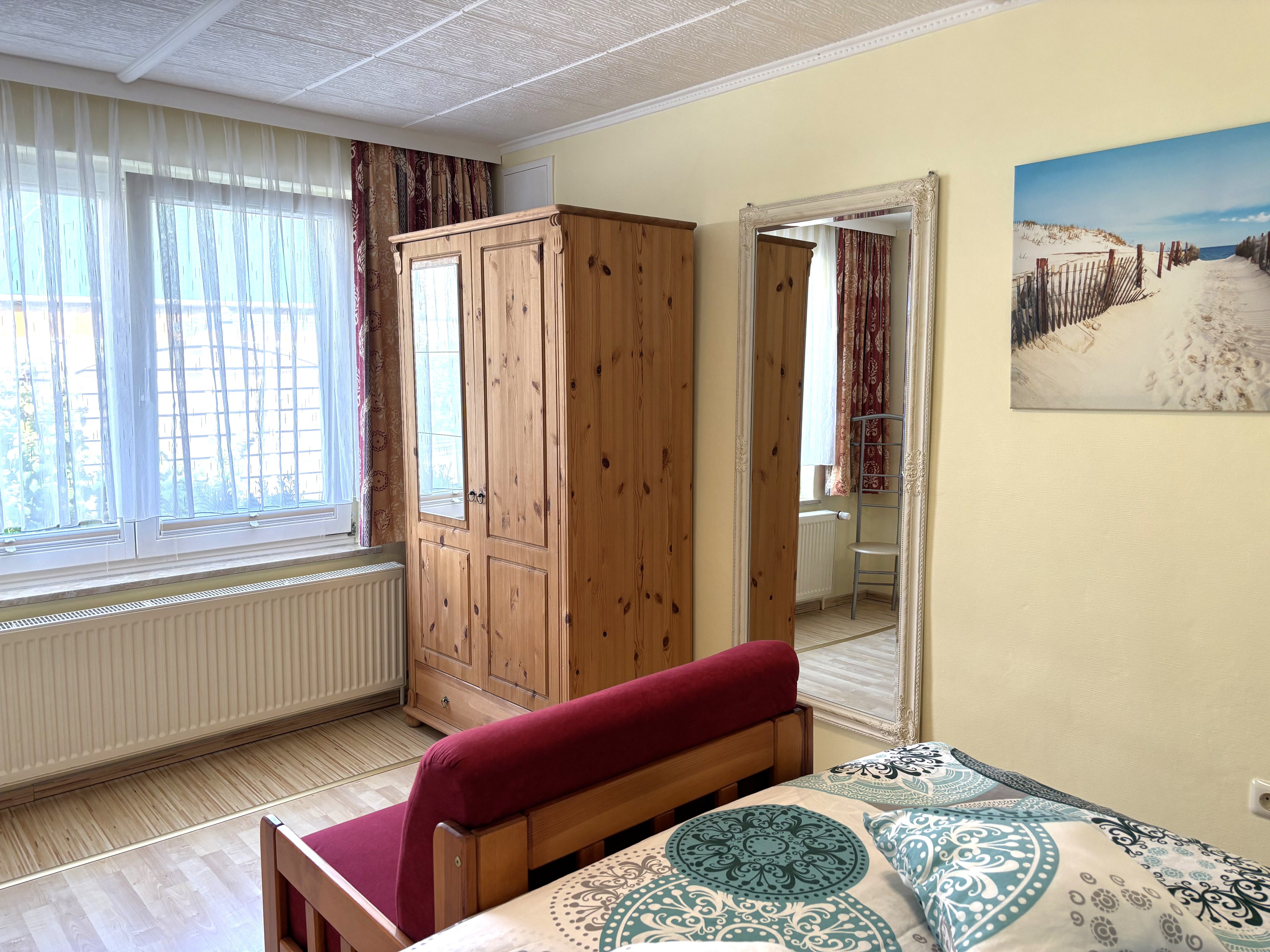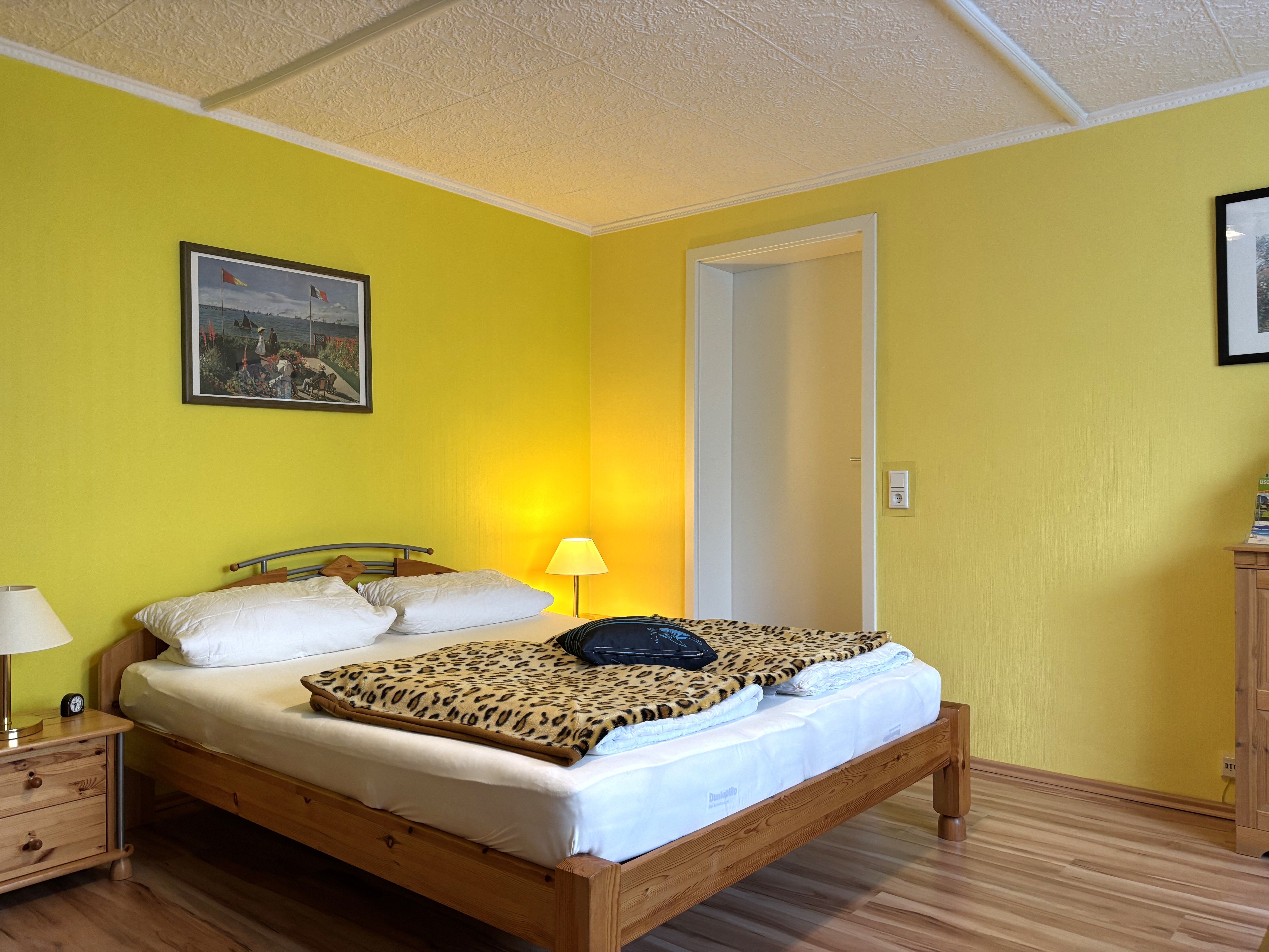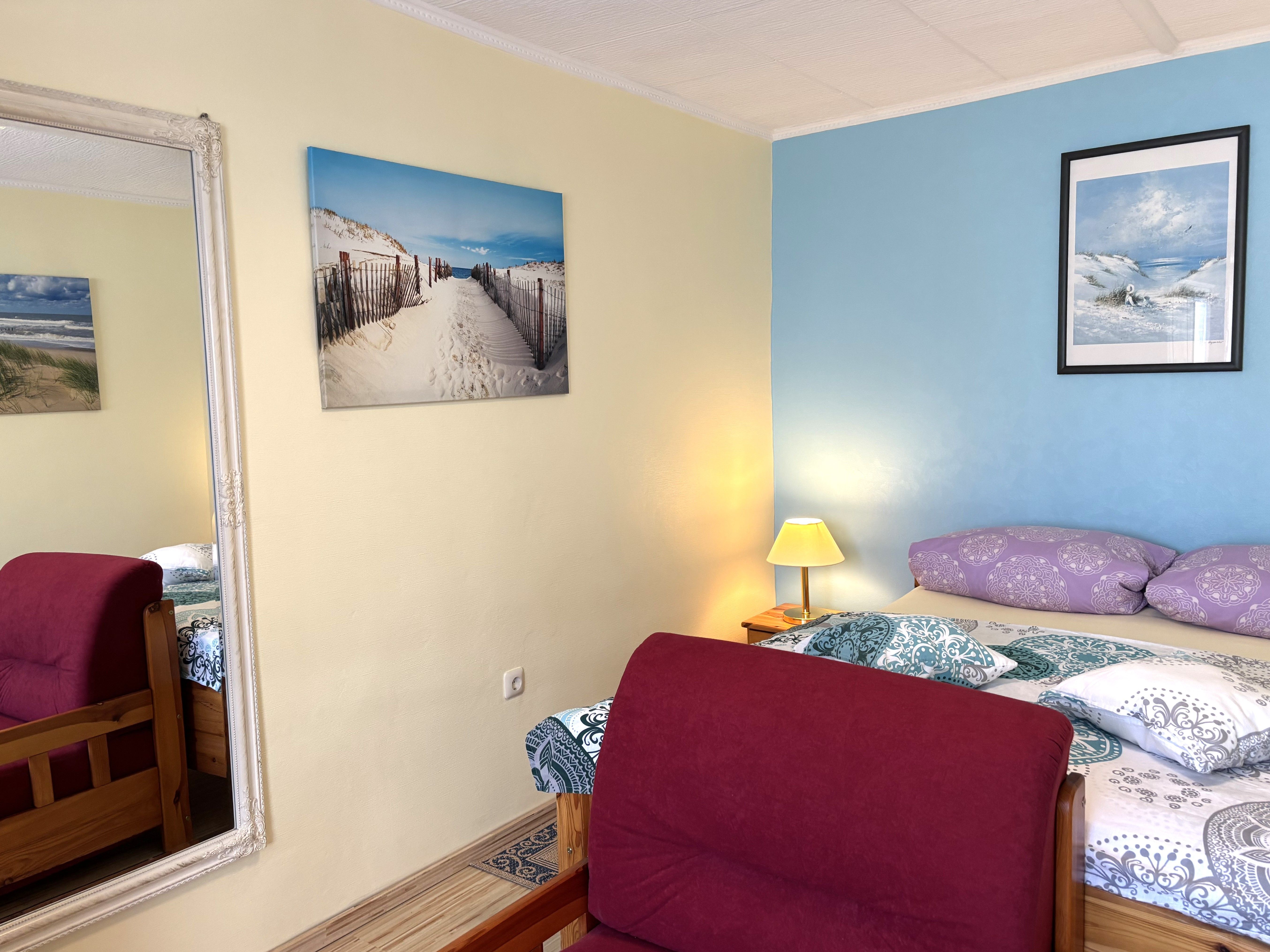Das zweite Schlafzimmer bietet ein französisches Bett (1,60x2,00m) mit durchgehender Matratze und verstellbarem Kopfteil ideal für erholsamen Schlafkomfort.