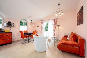 Auf 40 stilvoll gestalteten Quadratmetern im 1. Obergeschoss des Hauses Marina erwartet Sie ein Ort, der nicht nur zum Übernachten, sondern zum Ankommen gemacht ist. Die Wohnung bietet Platz für bis zu drei Personen ideal für Paare, kleine Familien oder Alleinreisende mit Sinn für das Besondere.