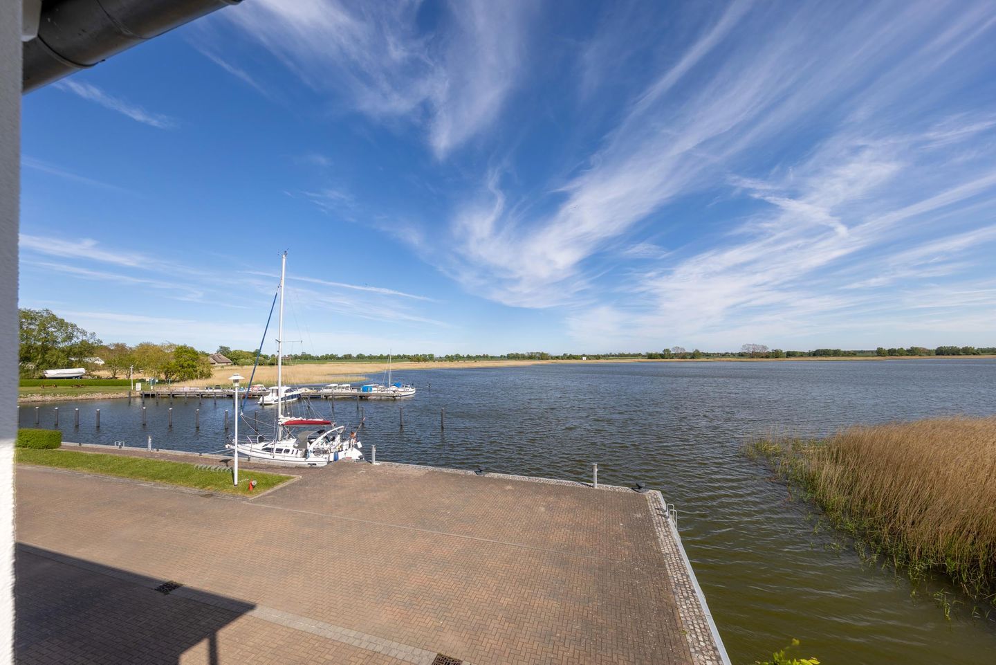 Auf der großzügigen Terrasse lauschen Sie dem Plätschern des Boddenwassers beim Frühstück am Morgen oder einem Glas Wein am Abend.