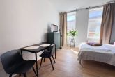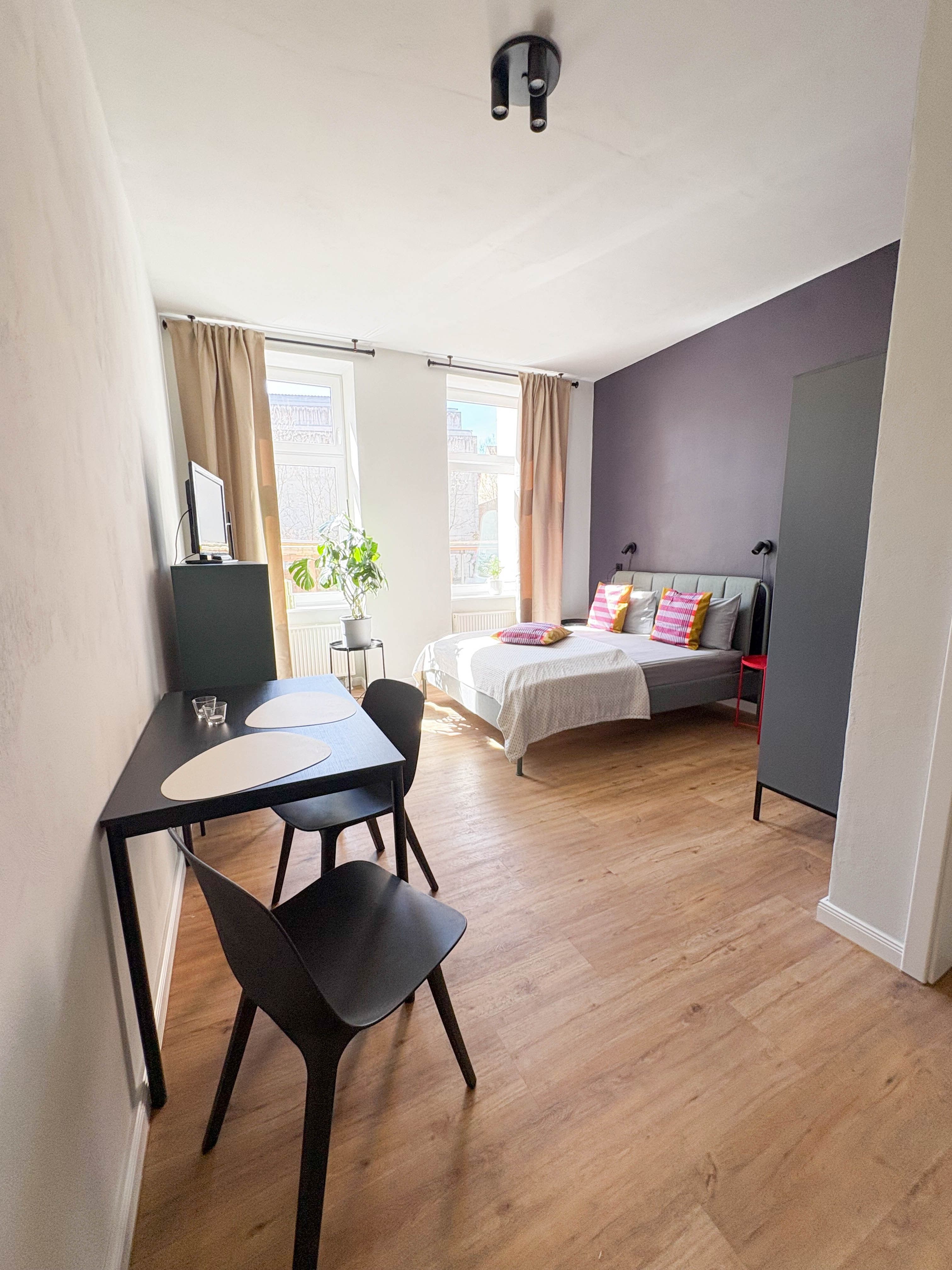 Unser Apartment mit 30 m² ist ideal für Paare. Hier kannst du entspannen in der Loggia mit einem tollen Blick auf den Stralsunder Hafen. Du schaust durch das große Fenster auf Segelboote, Fähren und Möwen. Es sind nur ein paar Schritte zu Restaurants, Kneipen und Bars. Der Stadtstrand ist 15 Minuten zu Fuss entfernt. Die zentrale Lage biete viele Möglichkeiten für Entdeckungen der Stadt Stralsund und der Insel Rügen. Unsere Unterkunft eignet sich perfekt für Paare, aber auch für dich alleine. Im Zimmer befindet sich ein Doppelbett, ein Schrank und Kommode, Schreibtisch mit Stuhl und eine Garderobe. Das Zimmer verfügt über ein Bad mit Dusche. Die Pantry- Küche verfügt über einen Mini-Kühlschrank, Mikrowelle, Wasserkocher und Kaffeemaschine. Die Apartments haben natürlich WLAN.