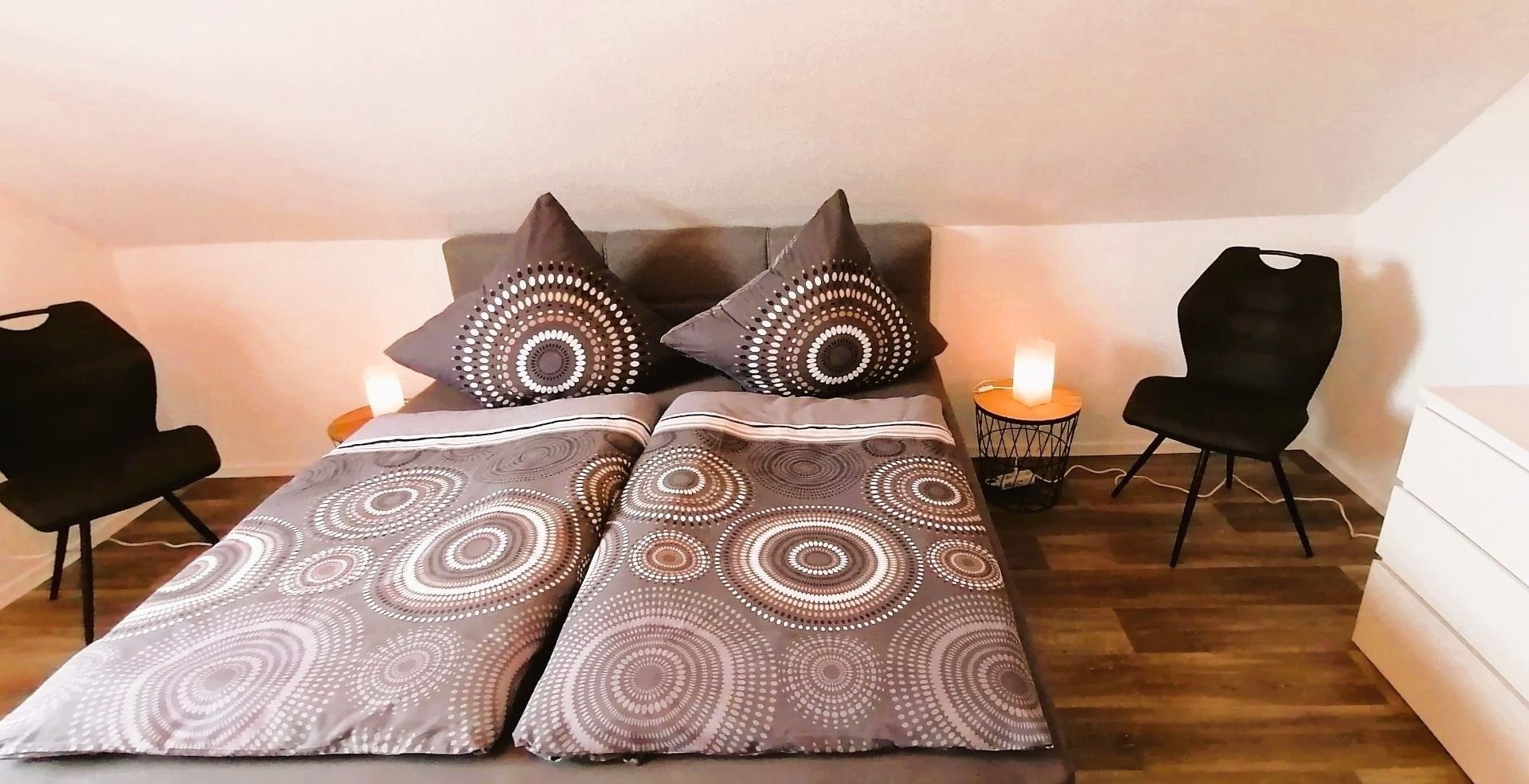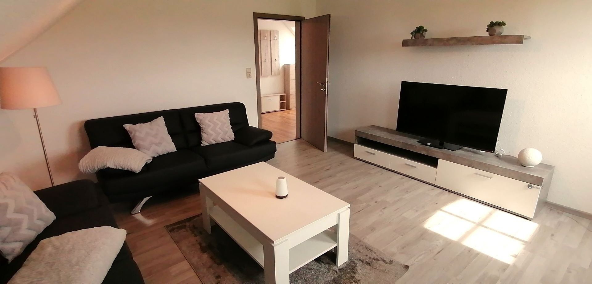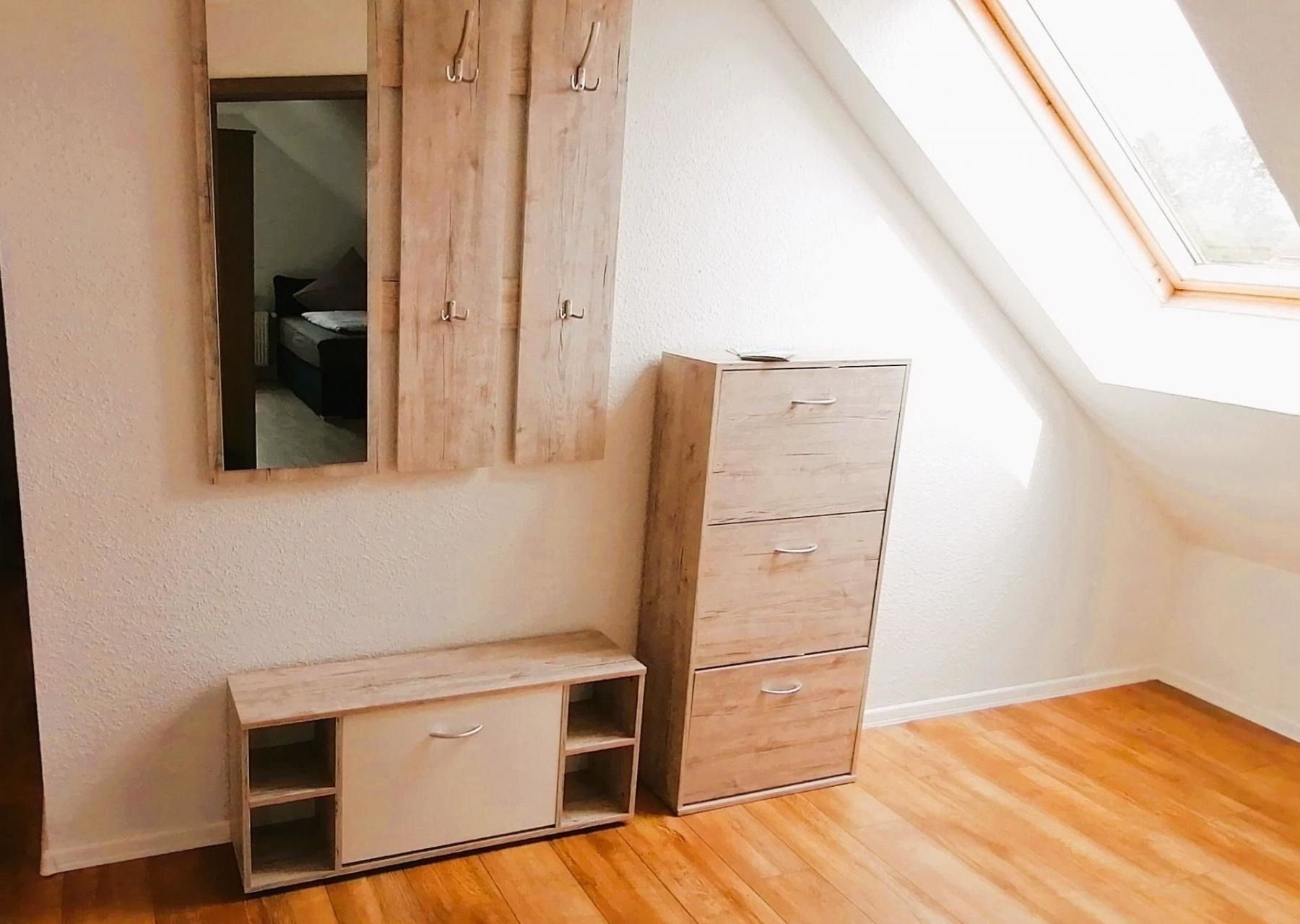 Willkommen in der Ferienwohnung Lütje Moew, gelegen in Leezdorf in Ostfriesland an der Nordseeküste. Unser charmantes Feriendomizil bietet auf 80 Quadratmetern im 1. OG Platz für bis zu vier Gäste. Mit zwei Schlafzimmern, einer Küche, einem Badezimmer und Dachterrasse ist es der perfekte Ort für einen entspannten Urlaub.Die Wohnung besticht durch ihre gemütliche Ausstattung mit Venylboden und komfortablen Möbeln. Das Wohnzimmer lädt mit seinen bequemen Sofas und dem Fernseher zum Entspannen ein. Die Küche ist mit einer Tür schließbar und mit Spülmaschine, Mikrowelle, Wasserkocher, Kaffeemaschine und Backutensilien ausgestattet und bietet alles, was Sie für die Zubereitung von leckeren Mahlzeiten benötigen. Genießen Sie Ihr Frühstück oder einen gemütlichen Abend auf der Dachterrasse mit Blick auf den wunderschönen Garten oder in die Natur. Zwei Parkplätze steht Ihnen auf der Auffahrt zur Verfügung.Ein Schlafzimmer ist mit einem komfortablen Boxspringbett (180x200), Kleiderschrank und Kommode ausgestattet.In dem zweiten Schlafzimmer befindet sich ebenfalls ein Boxspringbett (140x200), einem Schlafsofa (90x180). Das Badezimmer verfügt über eine Dusche, WC, Waschbecken und ist mit einem Haartrockner ausgestattet. Ein Babybett und ein Hochstuhl stehen für unsere kleinen Gäste bereit. Die Wohnung ist für Langzeitmieten geeignet und bietet einen Allergiker freundlichen Wohnraum. Bitte beachten Sie, dass es sich um eine Nichtraucherwohnung handelt. Ein Bügeleisen- und Brett, sowie WLAN sind ebenfalls vorhanden. Die Ferienwohnung Lütje Moew ist ideal für einen Familien oder Romantikurlaub. Aber auch für Handwerker, die eine Unterkunft in der Region suchen. Entdecken Sie die Schönheit Ostfrieslands und genießen Sie die Ruhe und den Komfort unserer Ferienwohnung. Wir freuen uns auf Ihren Besuch!Die Betten sind bei Anreise bezogen und pro Person liegt ein Handtuchpaket für Sie bereit.