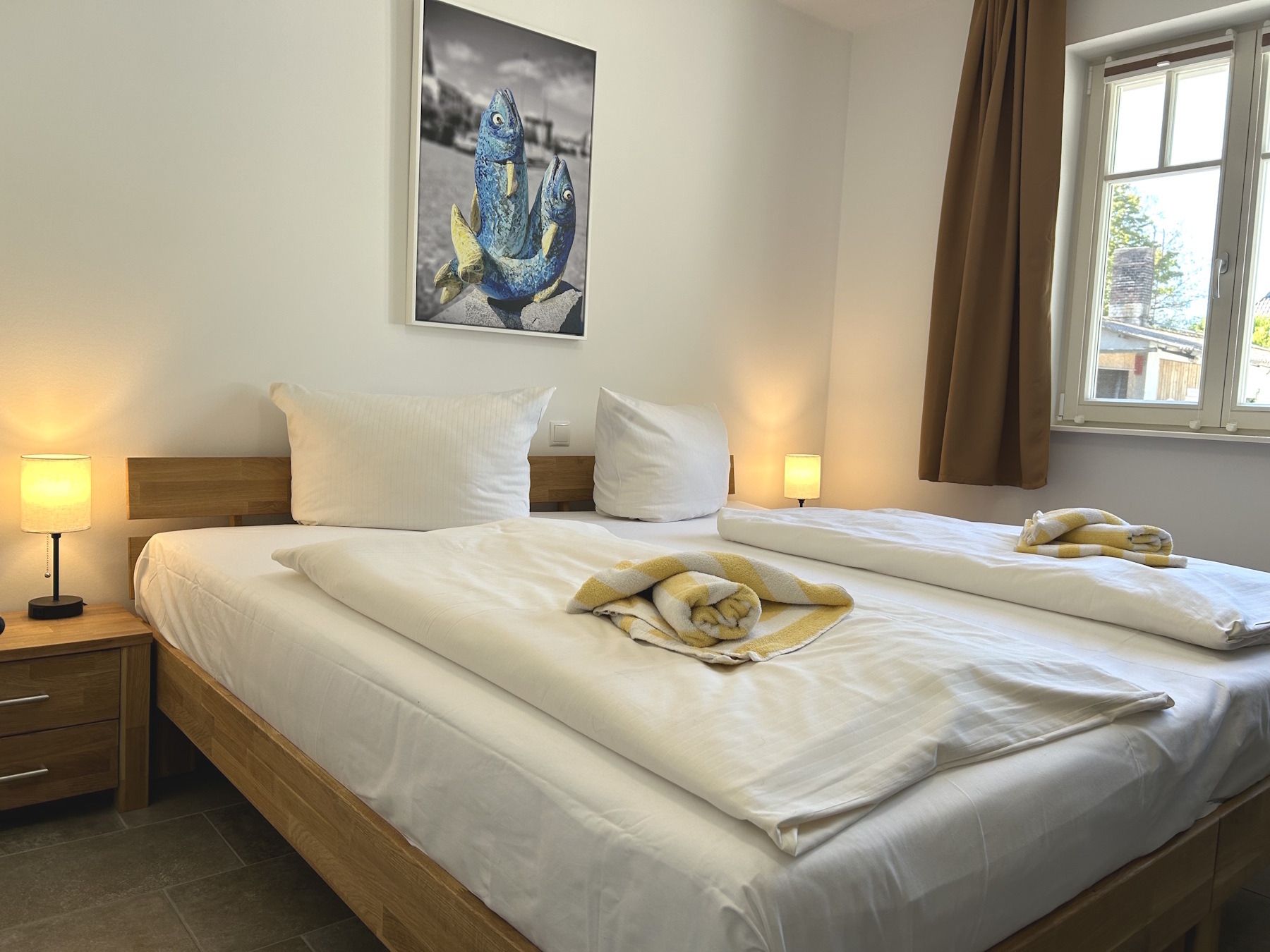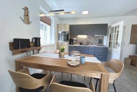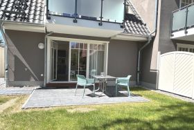 Neue, moderne 3-Zimmer-Ferienwohnung für 2-4 Personen im Erdgeschoss. Ostseebad Prerow, Waldstraße 64. Direkt am Darßwald, ca. 800 m zum Nordstrand, 5 min zum Zentrum, ruhig gelegen. 68 qm im Erdgeschoss. Terrasse und Garten, abschließbarer Fahrradraum, 2 Parkplätze. Modern und hochwertig eingerichtet, großzügiges Wohnzimmer mit großer Couch, Sessel, TV, Stereoanlage, Kamin, Esstisch, voll ausgestattete, Küchenzeile mit Spülmaschine, Backofen, Ceranfeld. Duschbad/WC und Gäste-WC. Waschmaschine.