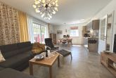 Die großeTerrasse geht in den kleinen Garten über. Esgibt 2 Parkplätze und einen abschließbaren Fahrradschuppem direkt am Haus.