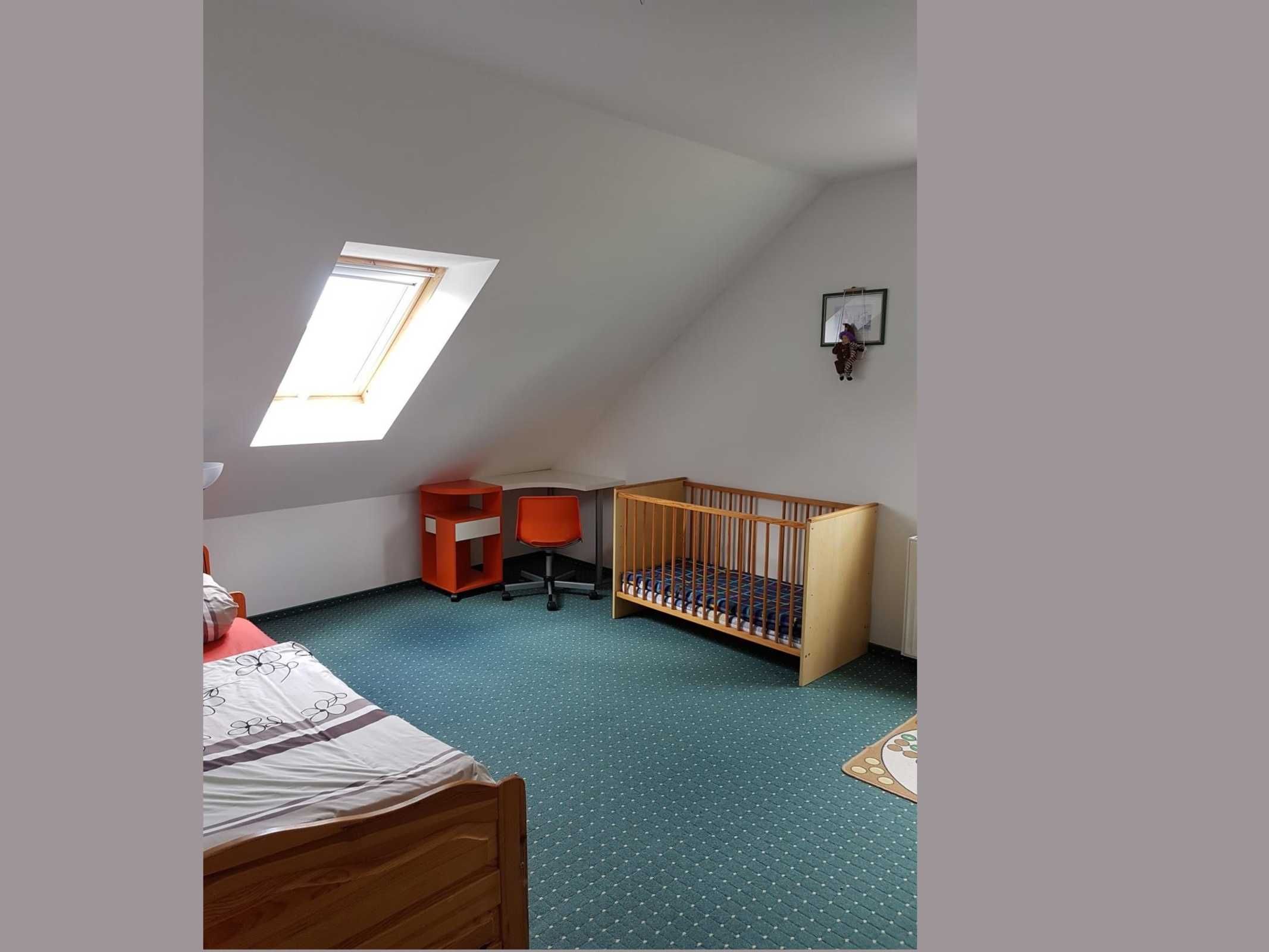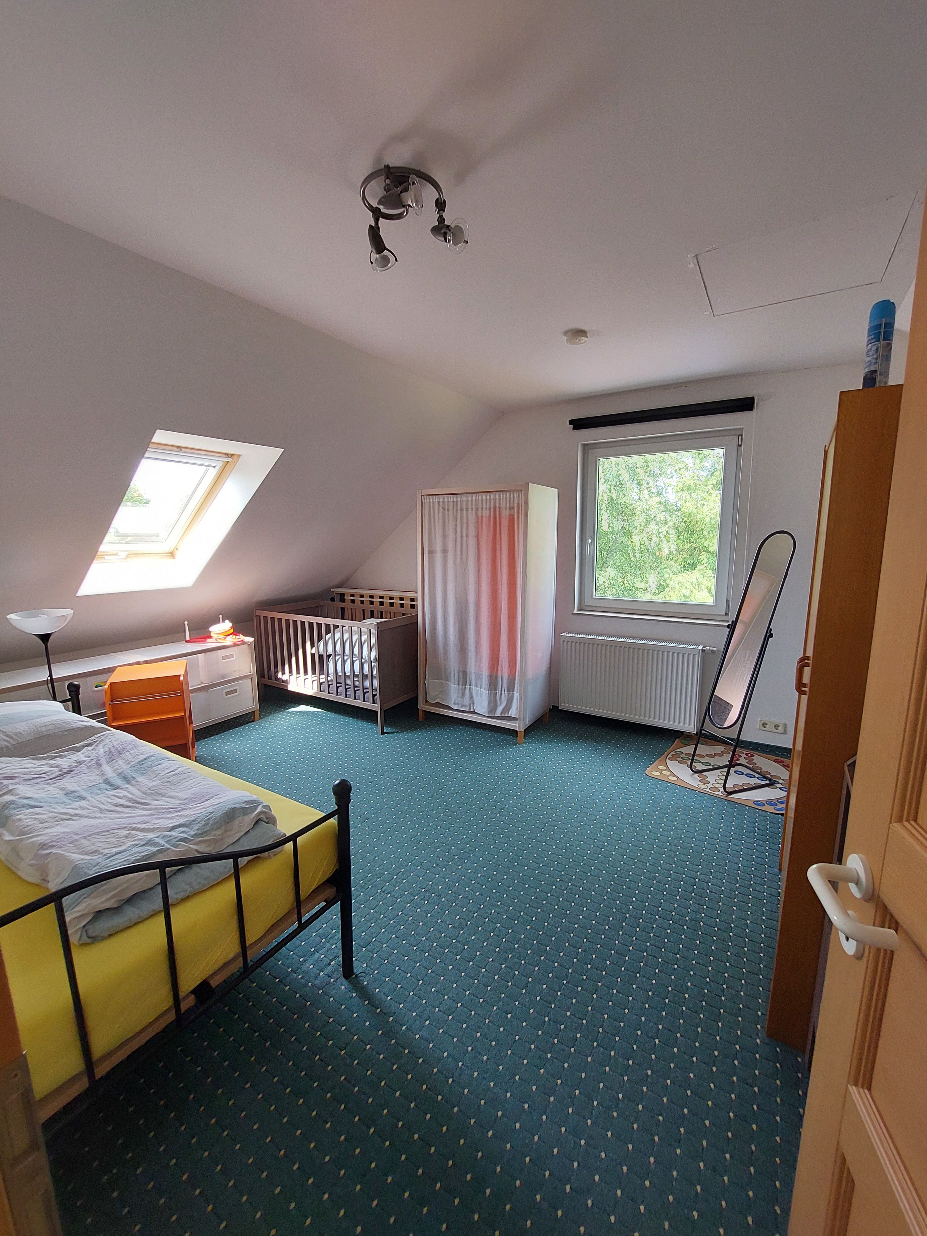 * 1 Kinderzimmer ca. 25 qm mit Bett zum Ausziehen.