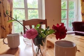 Die idyllische Lage garantiert einen erholsamen Urlaub. DasHerrenhaus wurde noch bis 1994 bewirtschaftet.