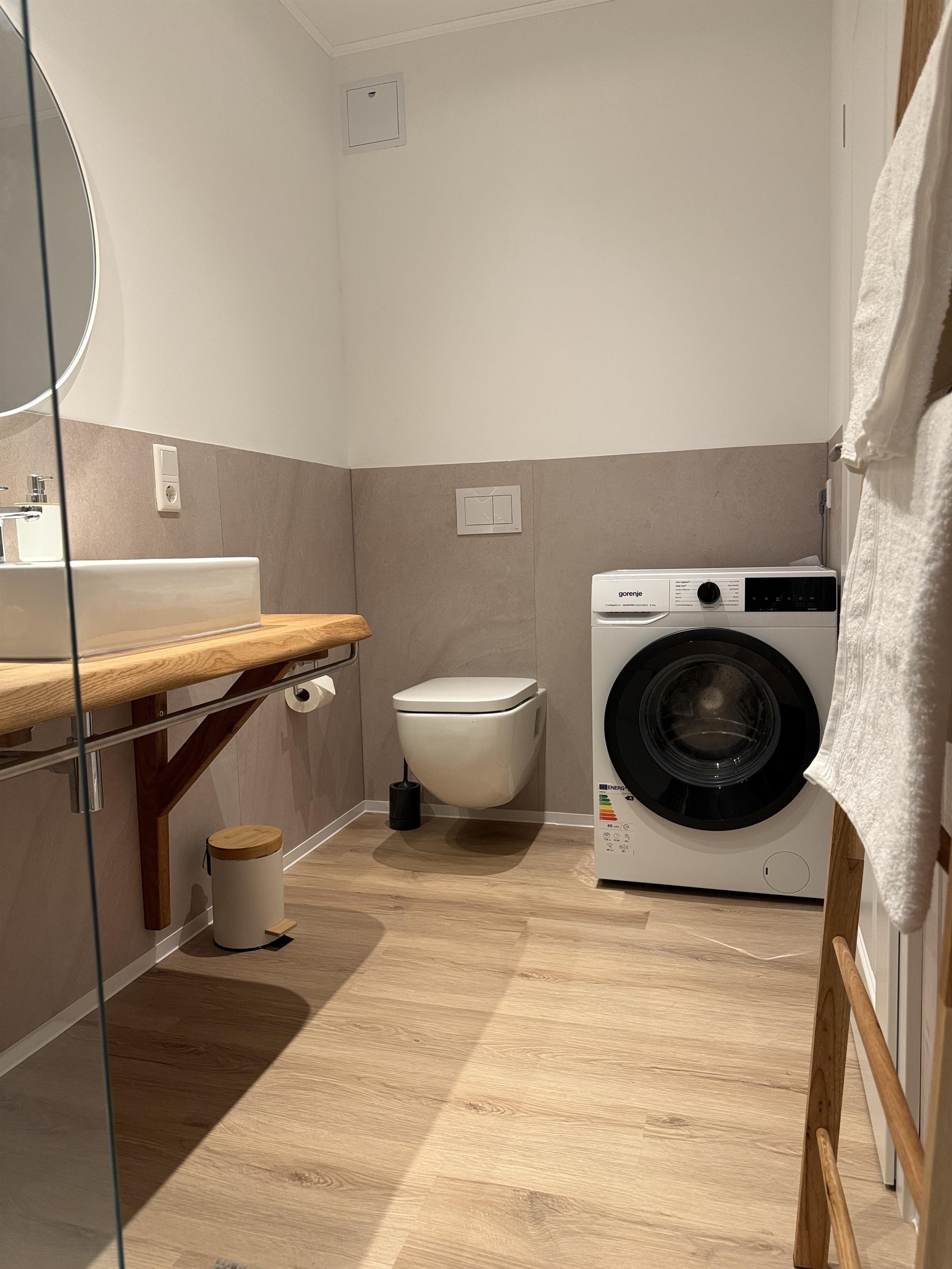 • Inklusive: Handtücher, Bettwäsche, Föhn, Bügeleisen, Bügelbrett, Waschmaschine