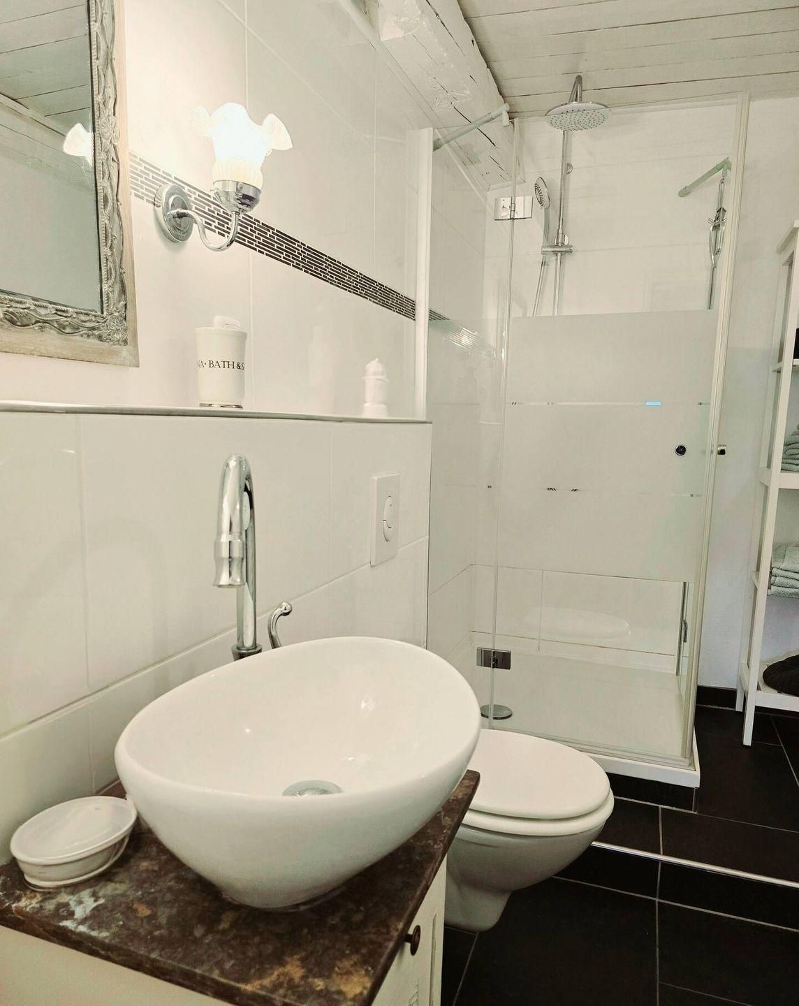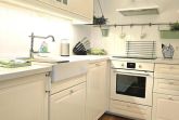Sowohl Flur, Wohn- und Esszimmer als auch Schlafzimmer sind mit exquisiten Stilmöbeln auf Echtholzparkett bestückt. Die Küche ist modern, dennoch dem Landhausstil angepasst und bietet Ihnen beste Qualität. So auch das Badezimmer.