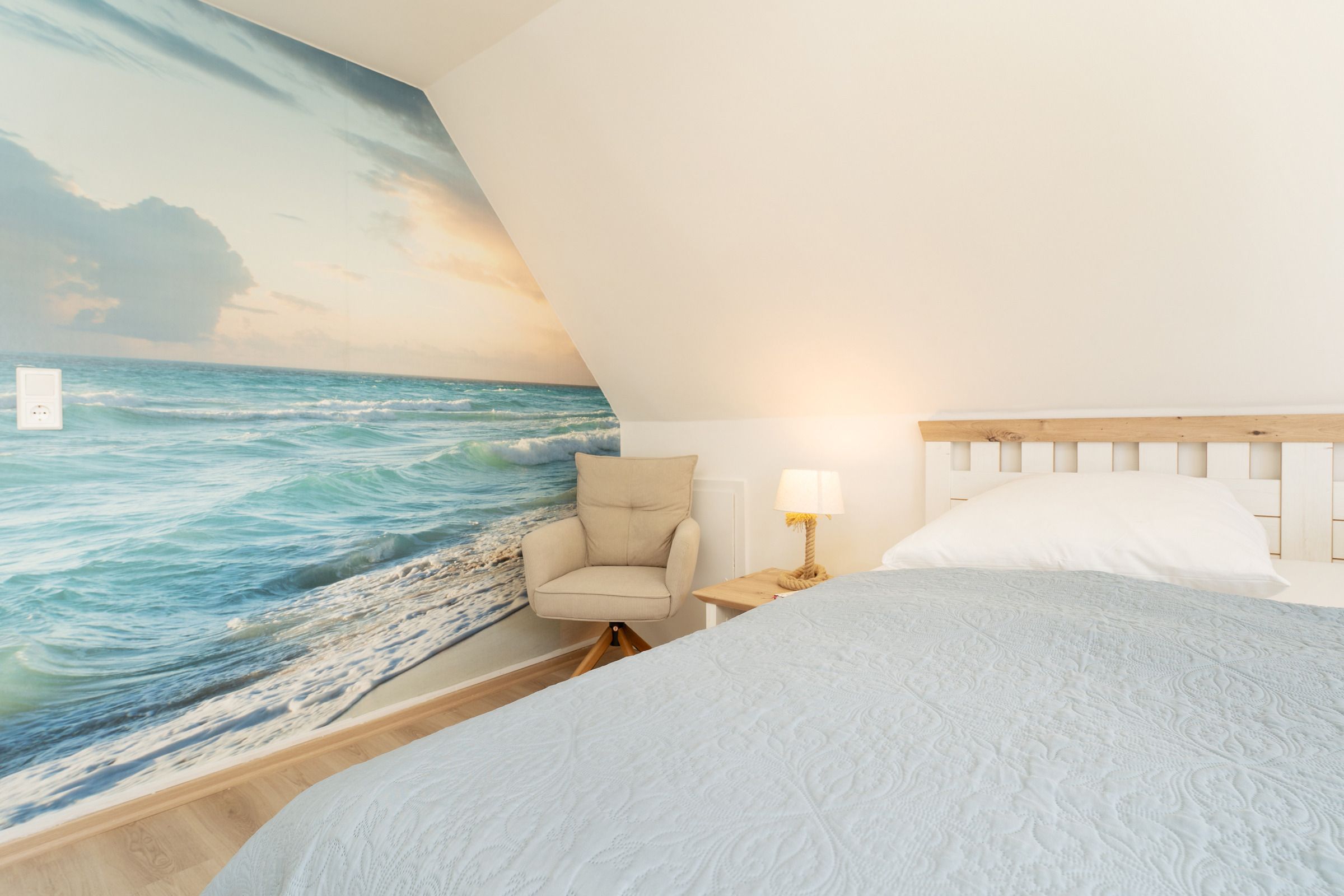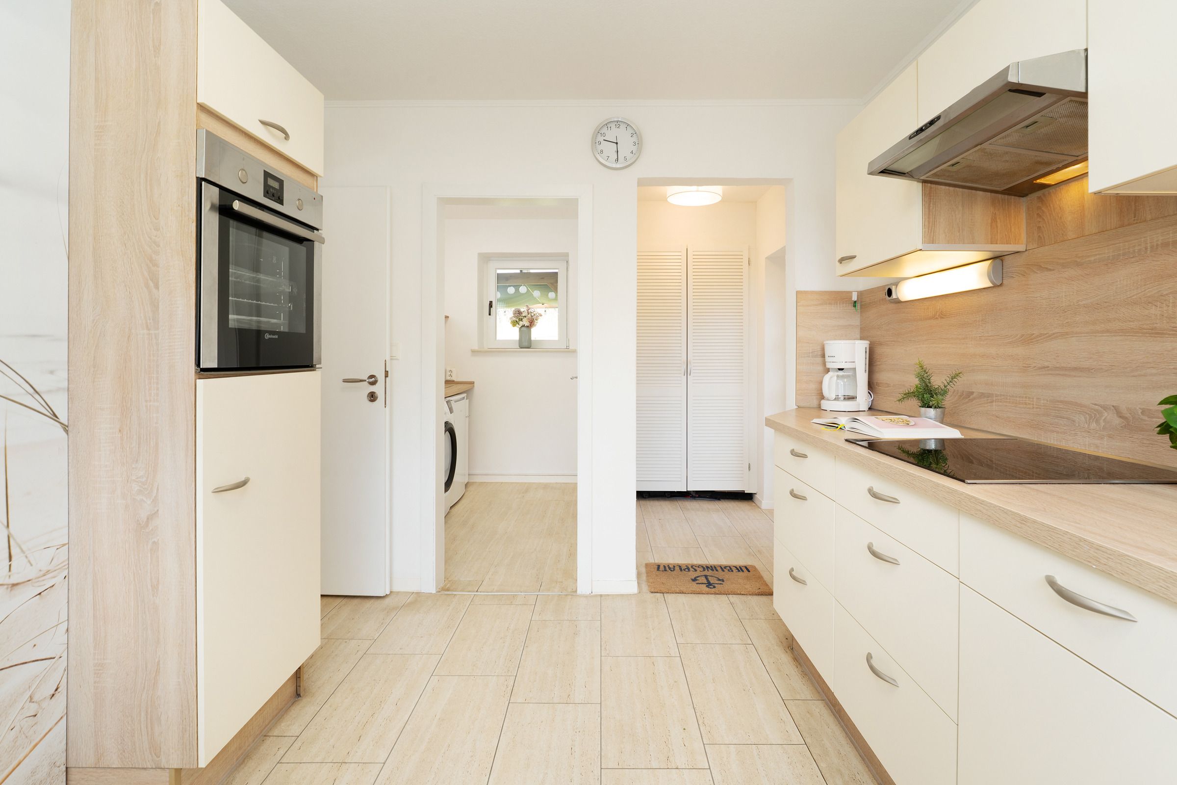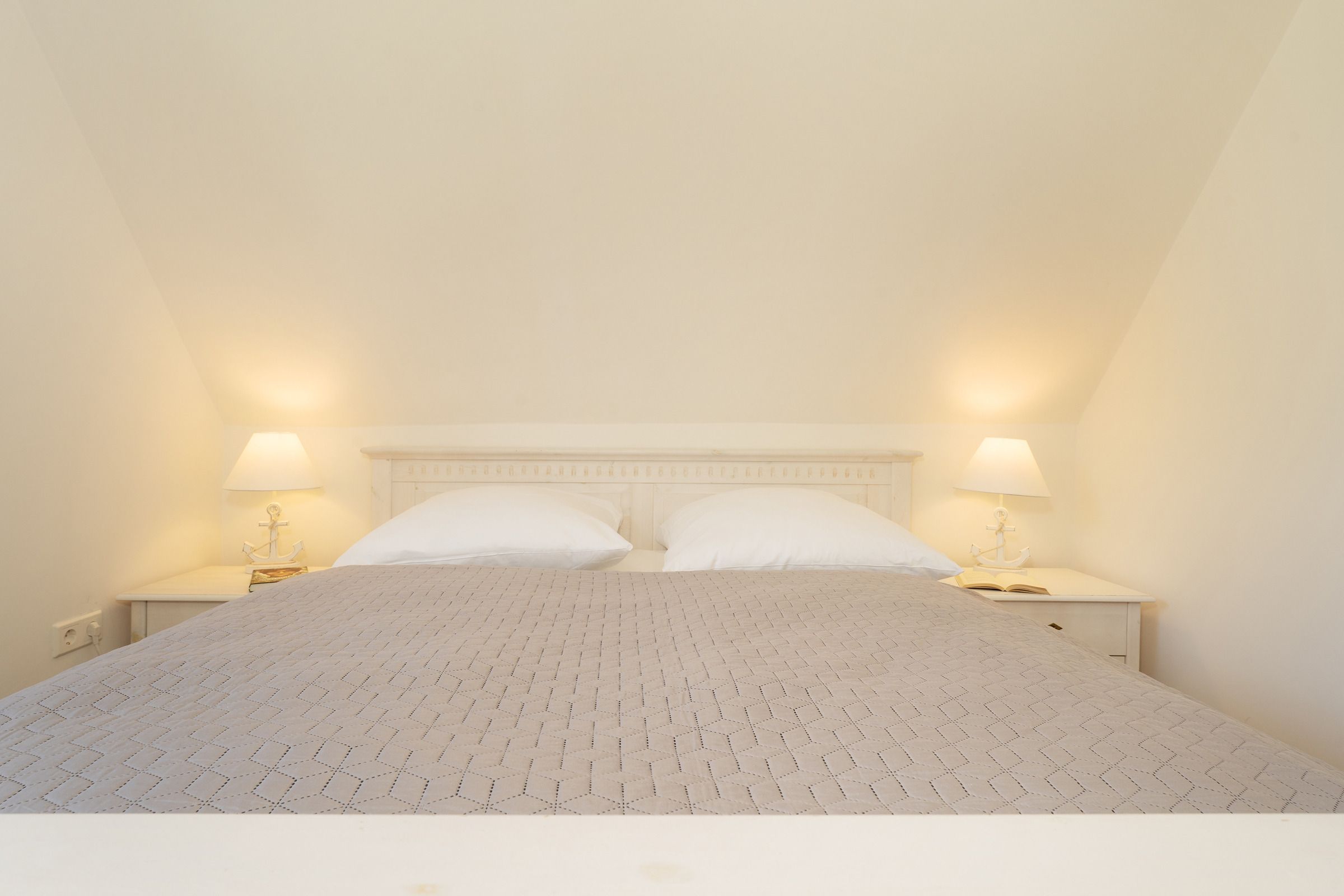Die Küche bietet alles, was Sie zum Kochen benötigen: Backofen, Ceran-Kochfeld, Kaffeemaschine (auch eine Senseo-Kapselmaschine), Toaster, Wasserkocher, Mikrowelle und Geschirrspüler. Der angrenzende Essbereich ist praktisch und gemütlich gestaltet. Die beiden Schlafzimmer sind mit gemütlichen Doppelbetten ausgestattet. Das Bad im Erdgeschoss verfügt über eine bodengleiche Dusche, Badewanne, WC und Bidet. Das Badezimmer im Obergeschoss bietet eine weitere Duschmöglichkeit. Für unsere kleinen Gäste stehen ein Kinderreisebett und ein Hochstuhl bereit.