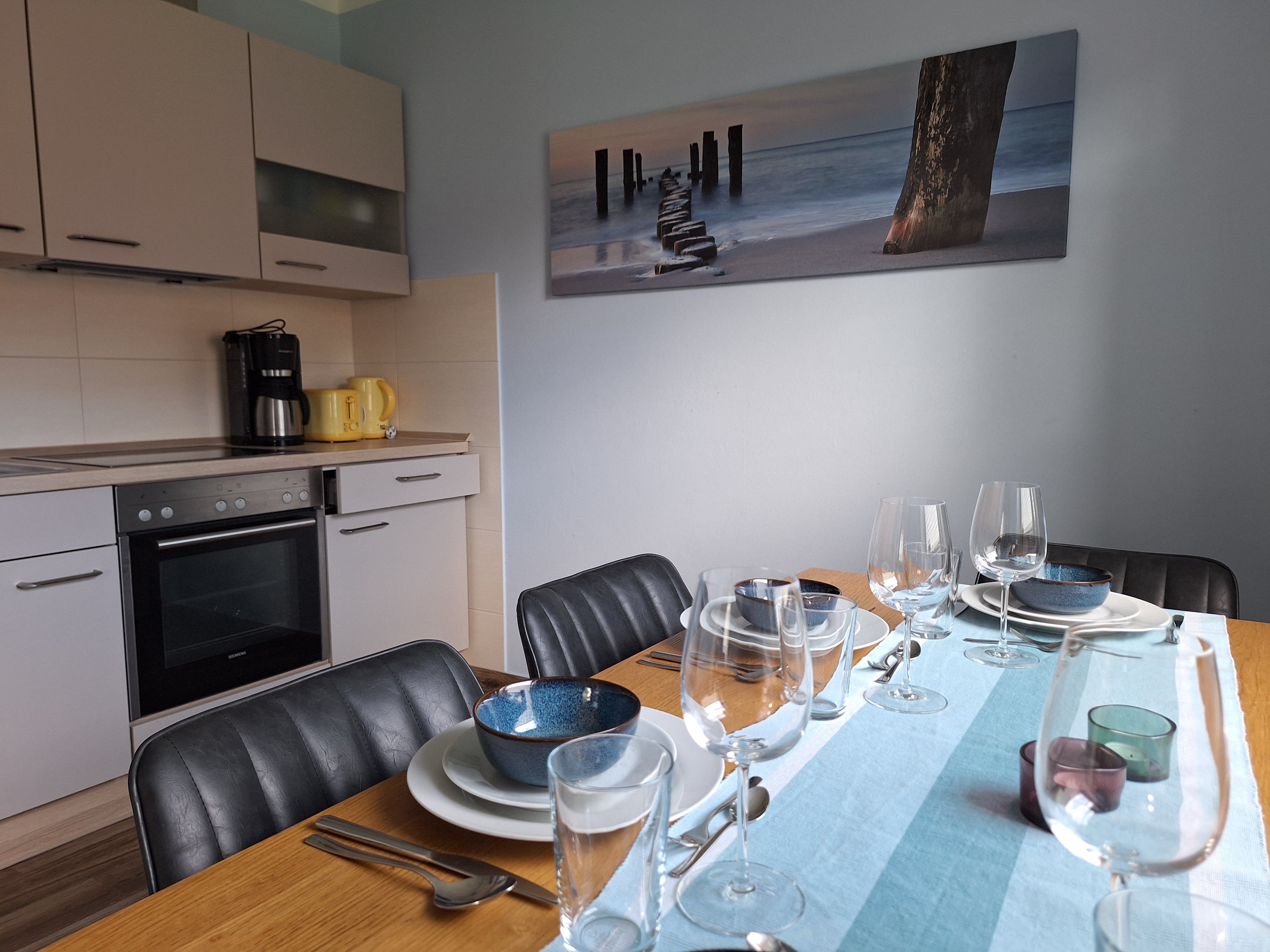 Die gemütliche Ausstattung des Hauses ist geeignet für 4-5 Personen und beinhaltet: Küche mit 4 Sitzplätzen, Elektro-Herd, Backofen, Mikrowelle, Spülmaschine, Kühl-Gefrier-Kombination, Kaffeemaschine und Toaster. Alle gängigen Küchenutensilien stehen selbstverständlich zur Verfügung.