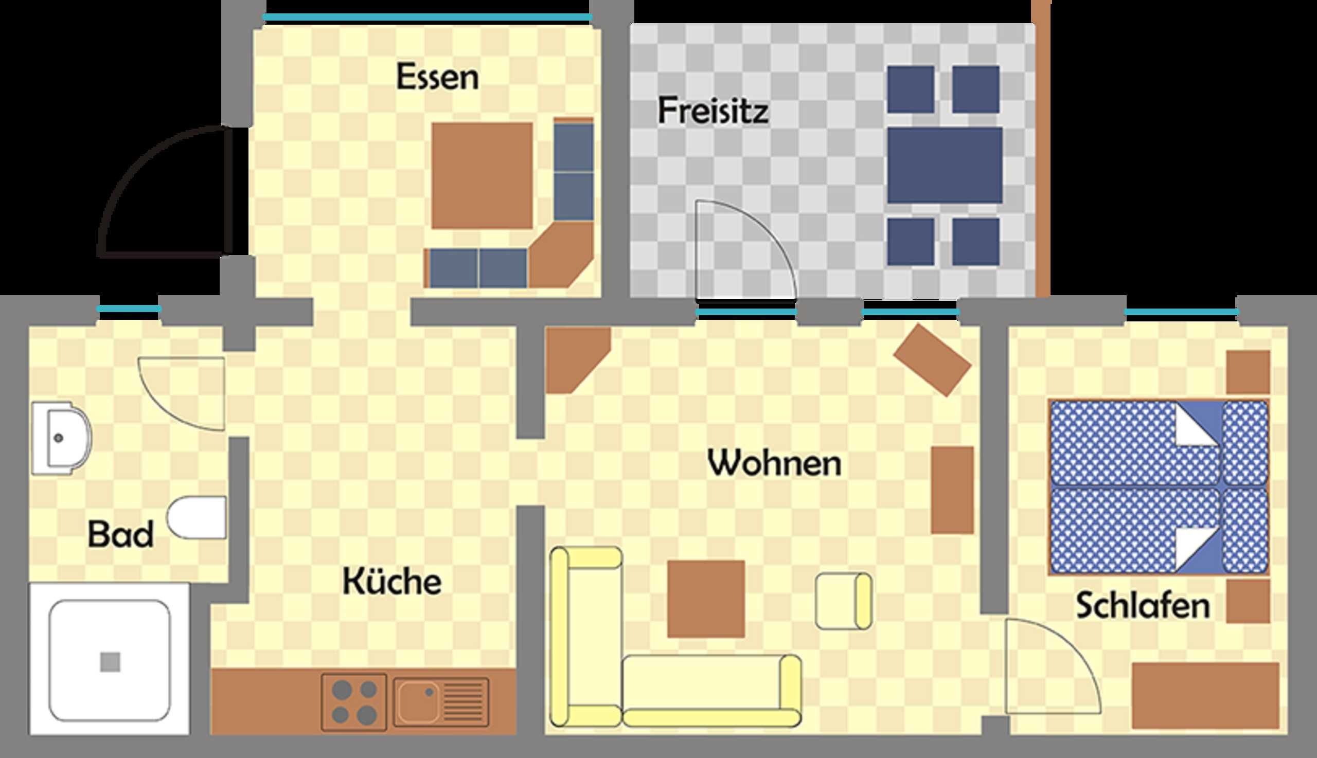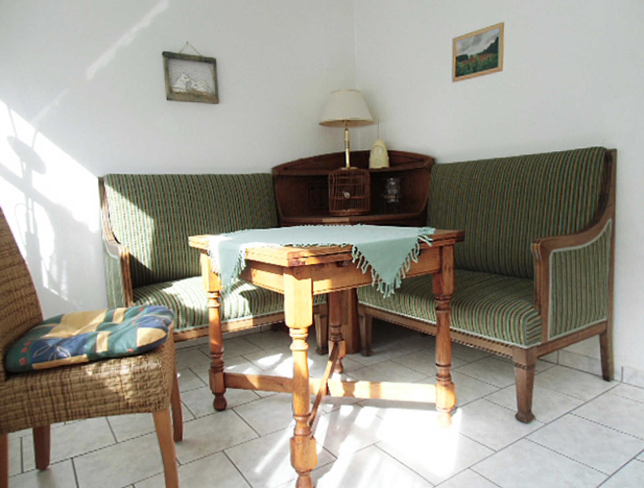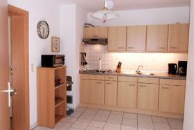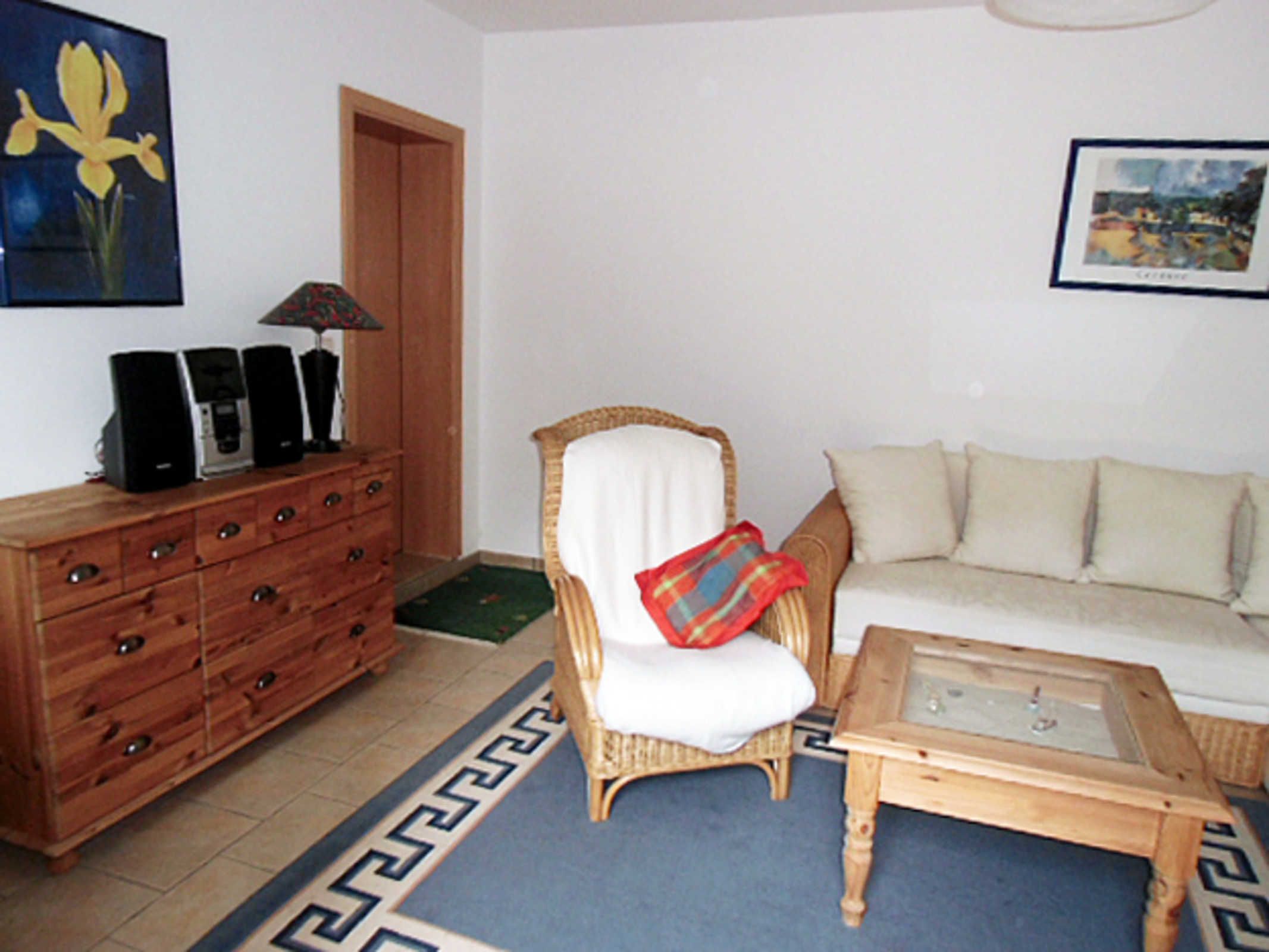 Die Fewo befindet sich im EG in einem Ferienhaus mit insgesamt 3 Fewo. Sie ist ganzjährig zu mieten und für bis zu 4 Personen geeignet. Sie verfügt über ein Wohnzimmer, eine sep. Küche mit einer Einbauküche, einem Schlafzimmer mit Ehebett, ein sep. Esszimmer, Dusche/WC, Terrasse, TV und Radio. Die Aufbettung für 2 Personen ist im Wohnzimmer möglich. Ein Kinderbett und ein Hochstuhl können auf Anfrage bereitgestellt werden. Eine Waschmaschine und ein Trockner können gegen Gebühr genutzt werden. Sitzecke im Garten und Grillmöglichkeiten vorhanden. Auf dem Grundstück befindet sich ein kostenloser PKW-Stellplatz. Handtücher und Bettwäsche sind nicht im Preis enthalten. Entweder bitte selbst mitbringen oder vor Ort für 8,00 Euro/Person mietbar. Haustiere nach Absprache, pro Haustier 7,00 Euro.
