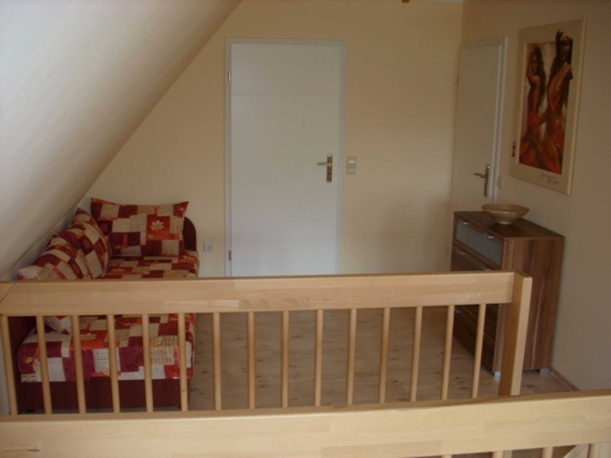 Wohnraum mit gemütlicher Eckcouch sowie ein SAT-TV. Eine zusätzliche Aufbettung ist im Wohnraum auf der Schlafcouch möglich. Die Erstausstattung Handtücher können Sie bei Bedarf mieten (5 EURO pro Pers.) oder selbst mitbringen. Weitere Nutzungsmöglichkeiten: Terrasse mit Gartenmöbeln, Grill und Sonnenschirm direkt am Haus, großer Garten, Parkplatz. Räucherofen zum Räuchern von frischem Fisch. Waschmaschine und Wäscheplatz sind ebenfalls vorhanden