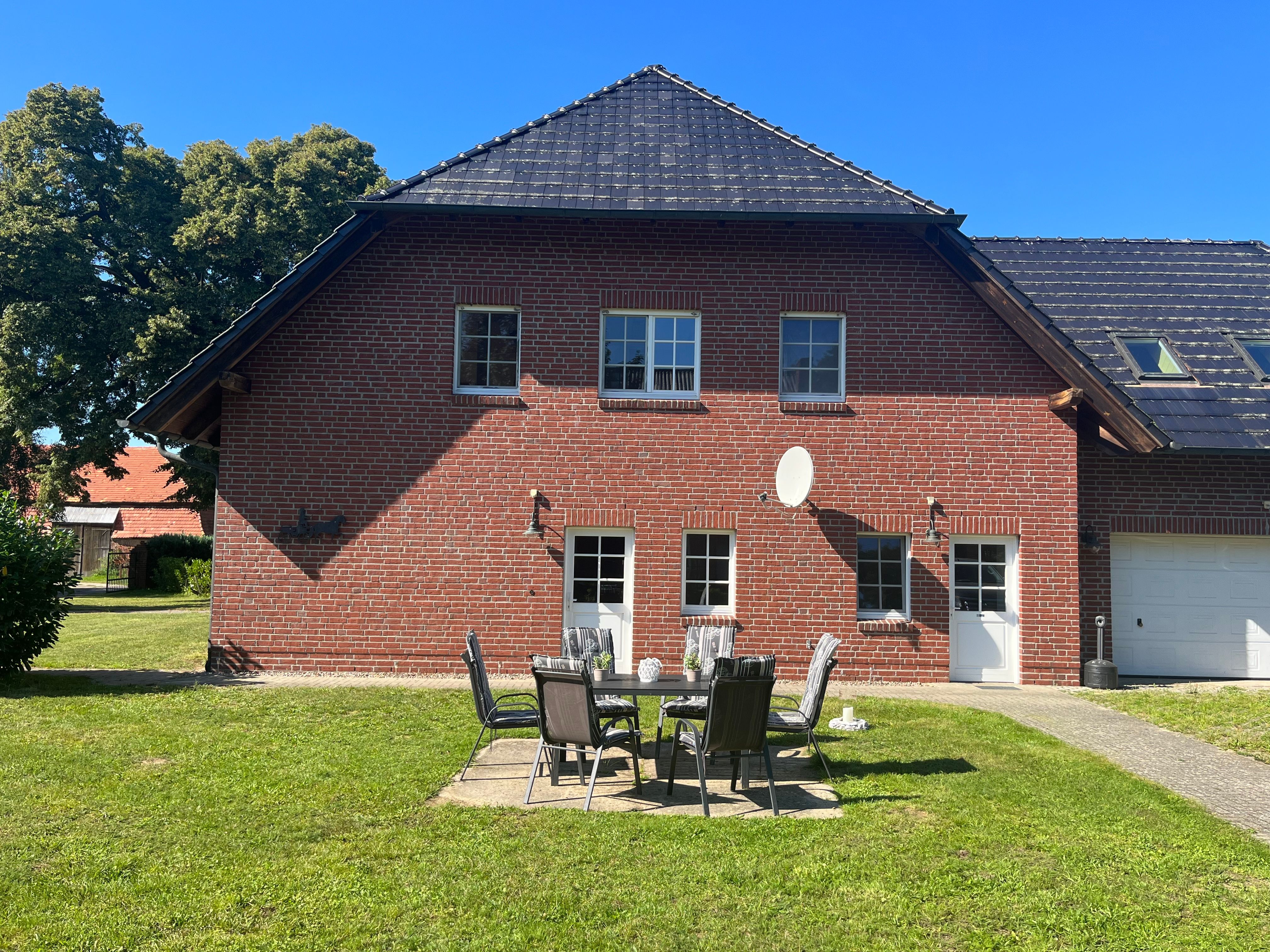 Vor dem Haus befindet sich eine Grünfläche mit Gartenmöbeln für jede Wohnung und Grillplatz.