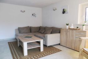 Unsere gemütliche Ferienwohnung Seestern bietet ausreichend Platz für 2 4 Personen, ist ca. 85 qm groß und befindet sich auf einem Privatgrundstück im Souterrain eines Einfamilienhauses. Die Wohnung hat einen direkten Zugang zum abgeschlossenen Garten, der gemeinschaftlich mit anderen Mietern und Ferienwohnungsgästen genutzt werden kann. Hier kann man im Sommer grillen und den Tag gemeinsam ausklingen lassen. Die große neue Küche ist komplett ausgestattet mit einer Küchenzeile (Backofen, Kühlschrank, Ceranfeld mit 4 Kochfeldern, Geschirrspüler, Mikrowelle) und einer Essgruppe. Im Wohnzimmer finden Sie eine gemütliche Couchecke (mit Bettfunktion) mit einem Couchtisch, eine kleine Anbauwand mit Flachbild-TV und einem Sideboard. Von hier aus kommen Sie auch direkt in den Garten.