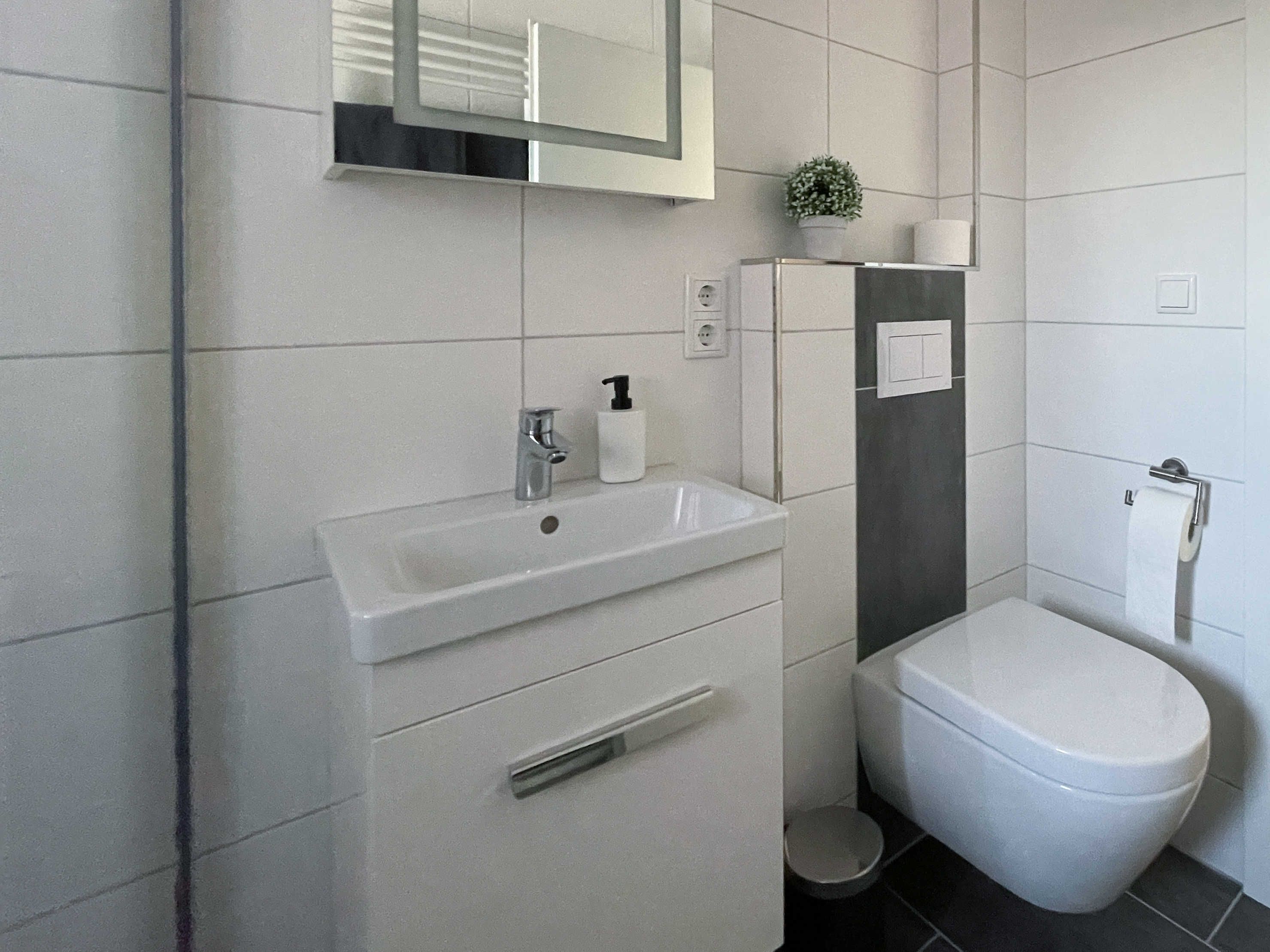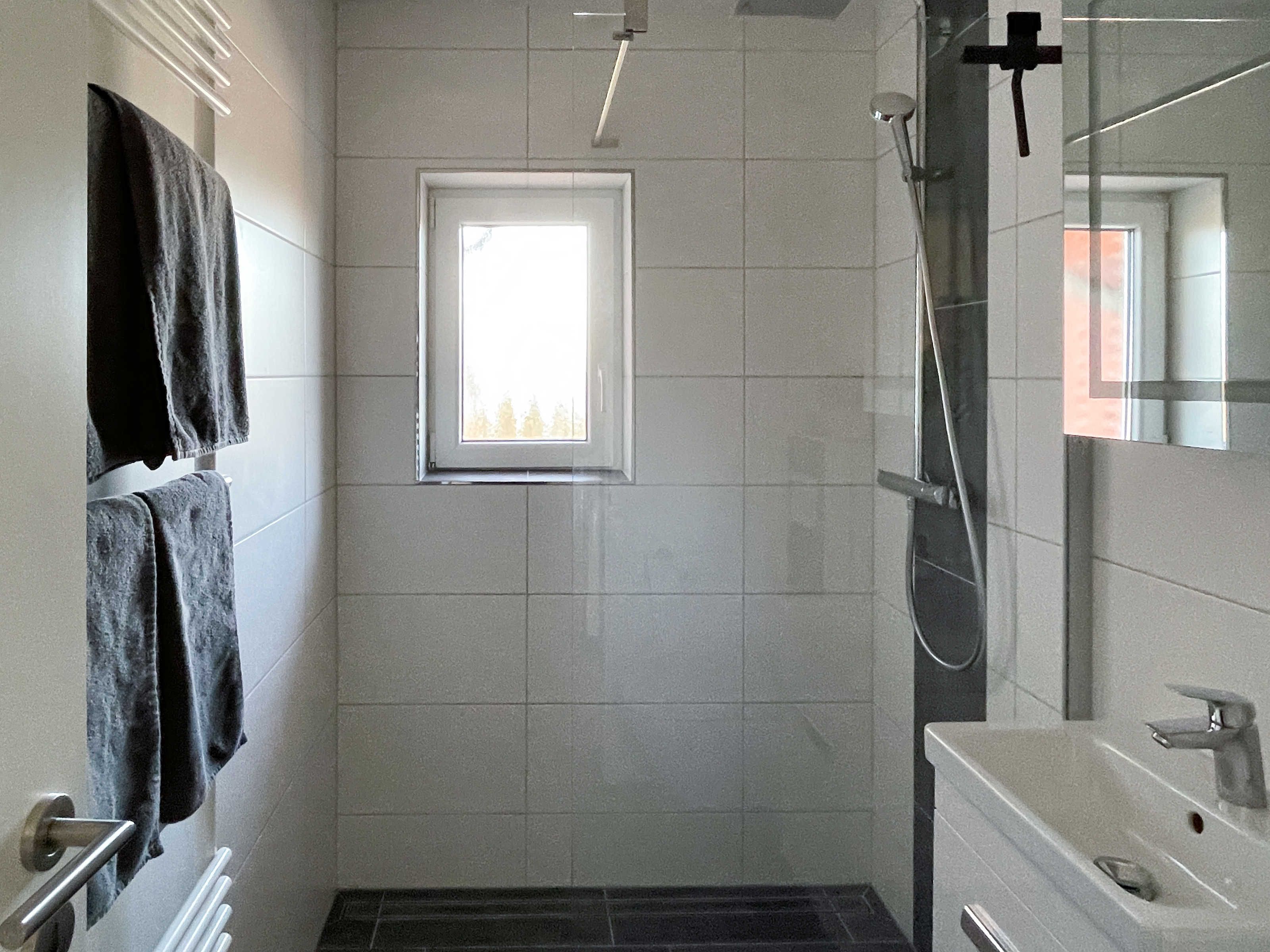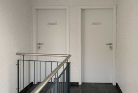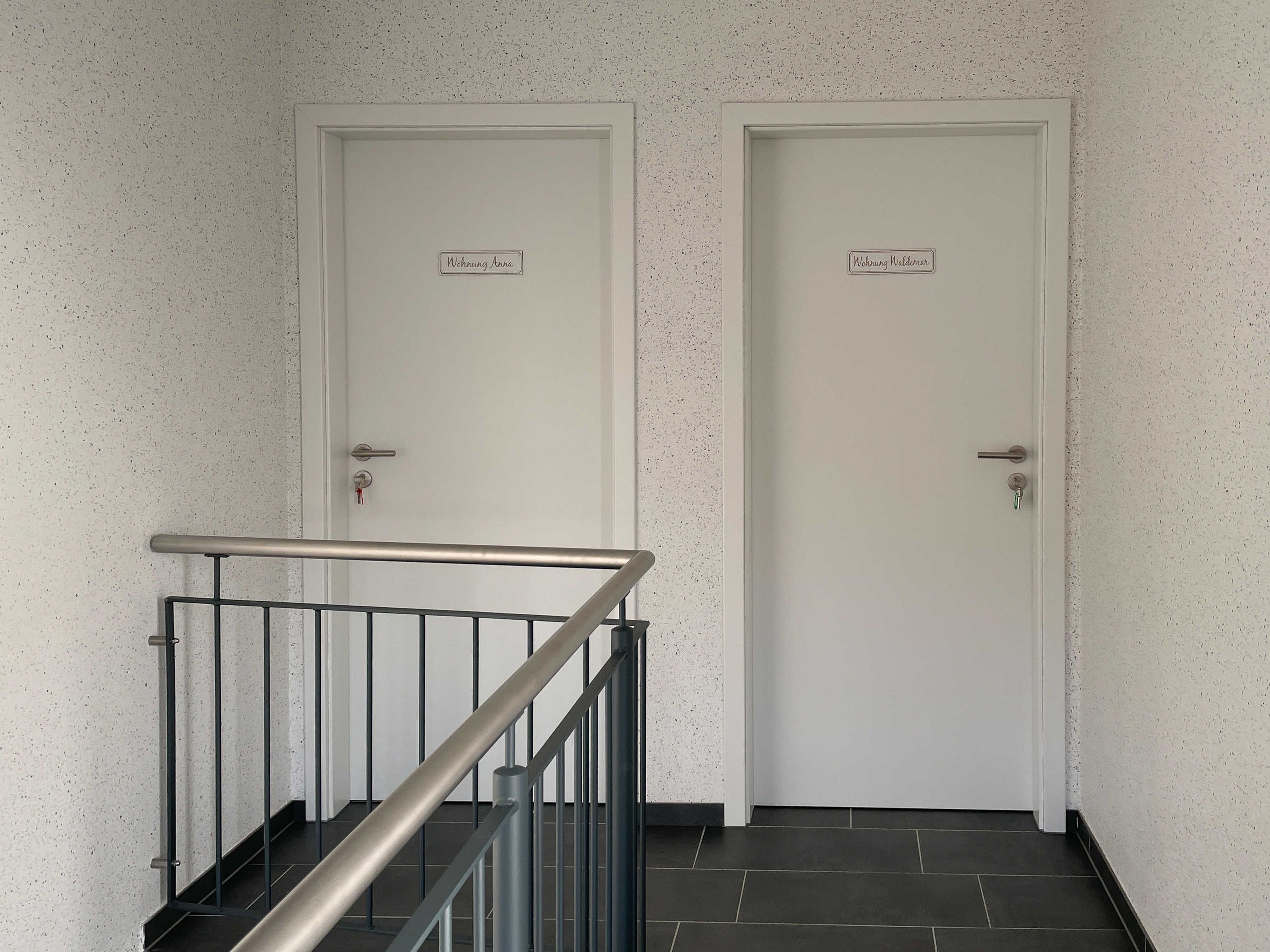Der Eingang zu den Wohnungen befindet sich auf der rückwärtigen Seite des Hauses. Der Weg dorthin ist mit Bewegungsmeldern ausgestattet, sodass Sie auch im Dunkeln sicheren Fußes in die Wohnungen gelangen.