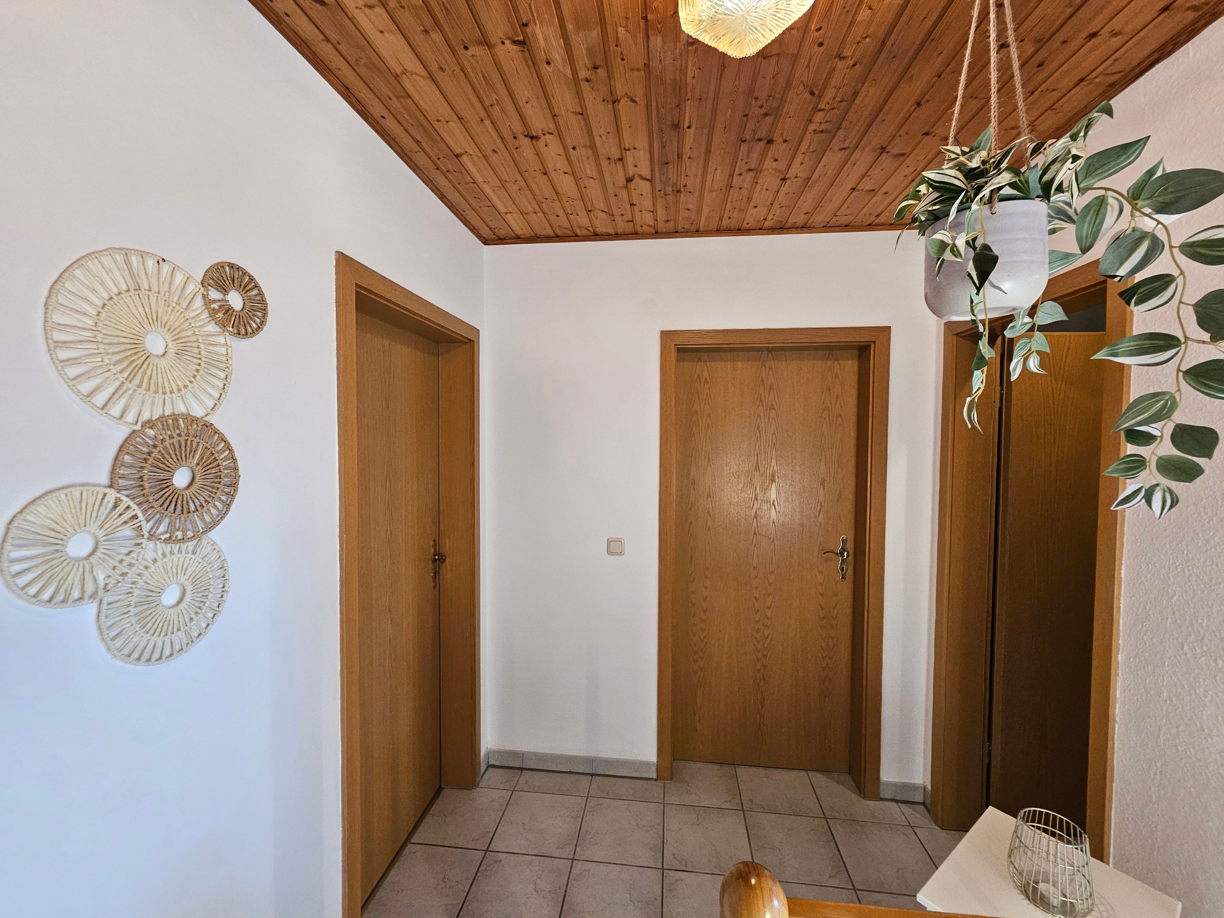Die Ferienwohnung wurde 2025 frisch renoviert und befindet sich im Obergeschoss eines privaten Wohnhauses. Sie ist besonders für Paare oder Einzelreisende geeignet, aber auch eine dritte Person findet bequem Platz. Gäste profitieren vom kontaktlosen Check-in über Schlüsseltresor, kostenlosem Parkplatz direkt am Haus und einer abschließbaren Unterstellmöglichkeit für Fahrräder.