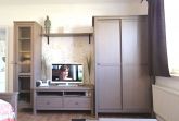renoviertes 1 Zimmer Appartement mit ca. 32 m² im Hochparterre unweit des Hörnumer Golfplatzes; Wohn-/Schlafraum mit Doppelbett, eine gemütliche 2-Sitzer-Couch, Tisch, Vitrinenschrank, Kleiderschrank, Sat-Flat-TV; separate Küche mit Cerankochfeld, Geschirrspüler, Kühlschrank mit kleinem Gefrierfach, Mikrowelle mit Grill und Backofen, Esstisch und Stühle für 2 Personen, Einbauschrank; Wannenbad/WC; Flur mit Garderobe und Schuhschrank. Das ganze Appartement ist mit Venyl-PVC ausgestattet.