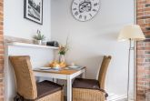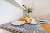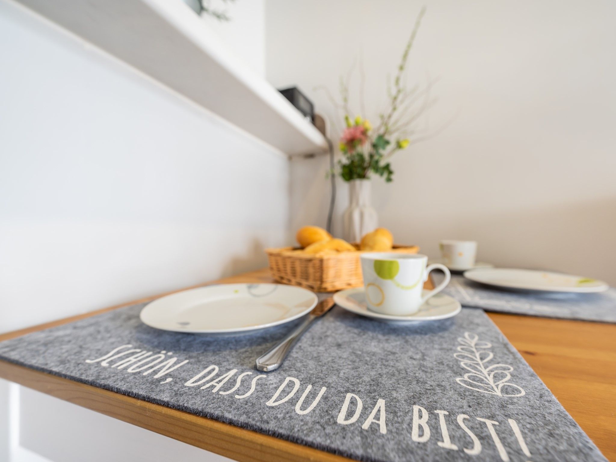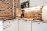 • komplett eingerichtete Miniküche mit Mikrowelle und Essplatz