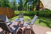 • Terrasse: Südausrichtung mit Gartenstück, Tisch, 4 Stühle, Sonnenschirm