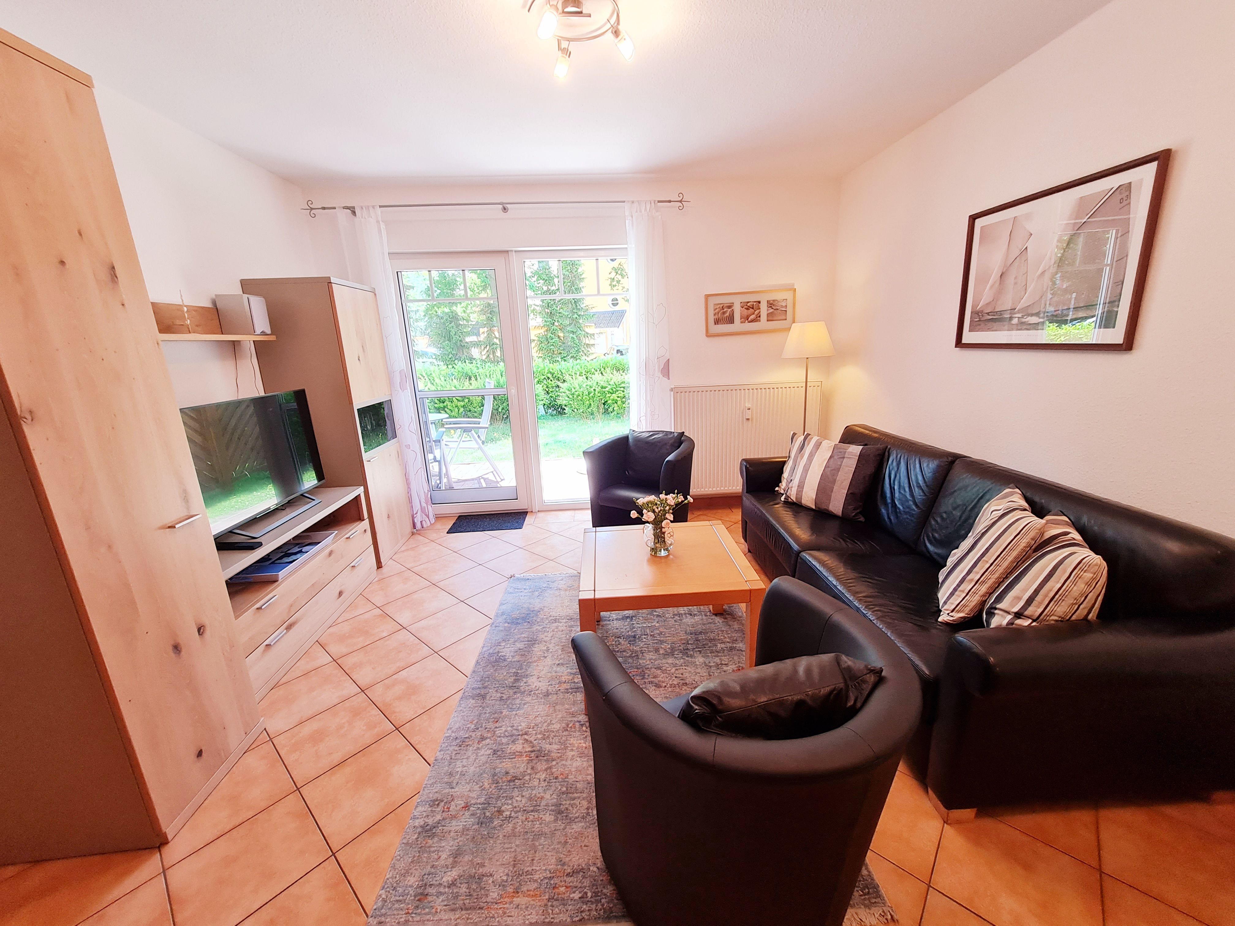 Nur 350m vom Strand entfernt liegt diese gemütlich und modern eingerichtete 2-Raum-Wohnung im Erdgeschoss mit ca. 48 m² Wohnfläche und einer sonnigen Südterrasse. Die sehr hunde- und familienfreundliche Wohnung kann mit bis zu 2 Personen genutzt werden. Praktisch erreichbar befindet sich vor dem Objekt ein abschließbarer Außenabstellraum, der bis zu 2 Fahrräder Platz o.ä. bietet. Der Wohnung ist ein kostenloser Stellplatz Nr. 11 zugeordnet. Eine Waschmaschine steht Ihnen auch zu Verfügung. In dieser Ferienwohnung ist ihr Hund herzlich willkommen. Ebenso steht Ihnen hier kostenloses WLAN zur Verfügung.