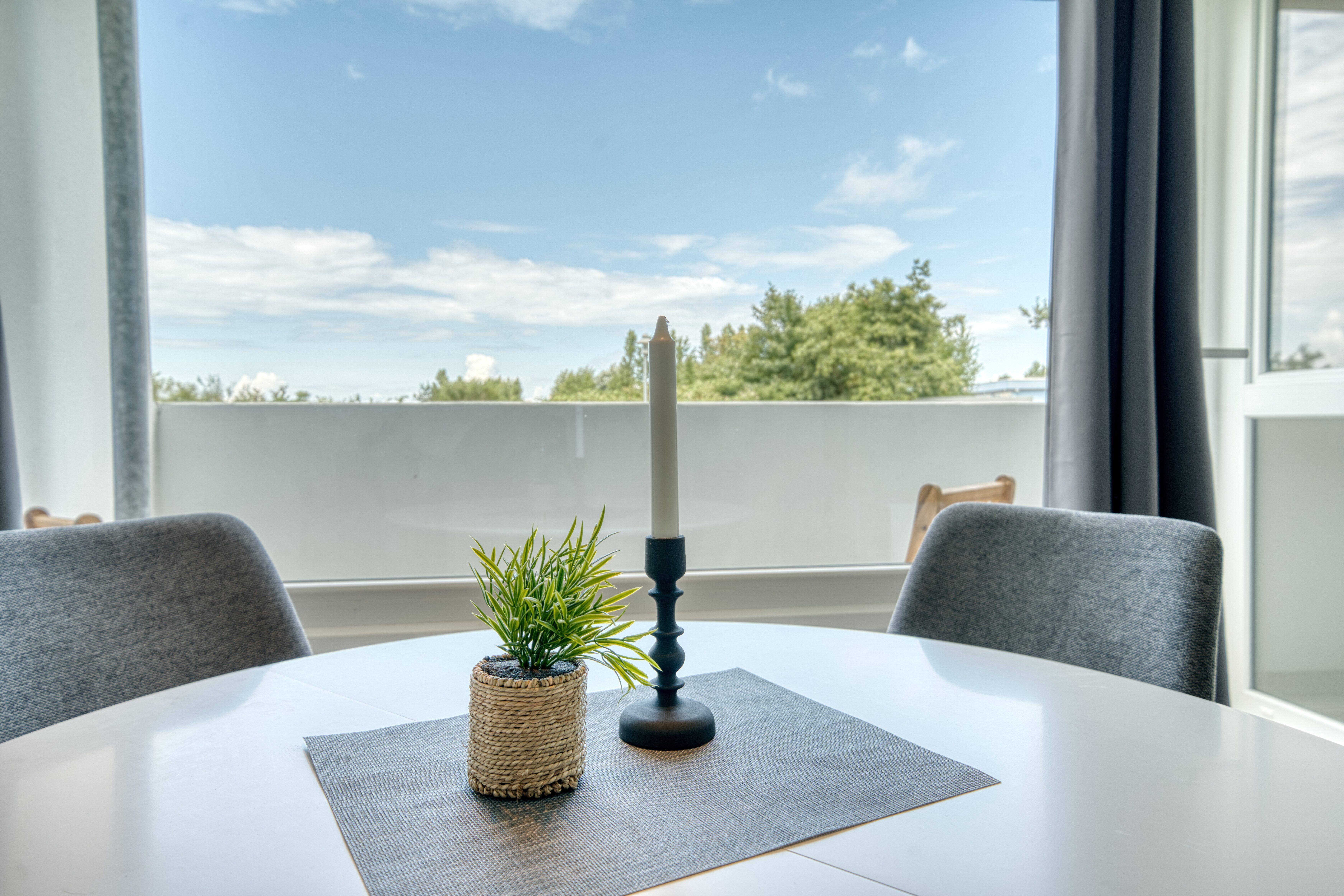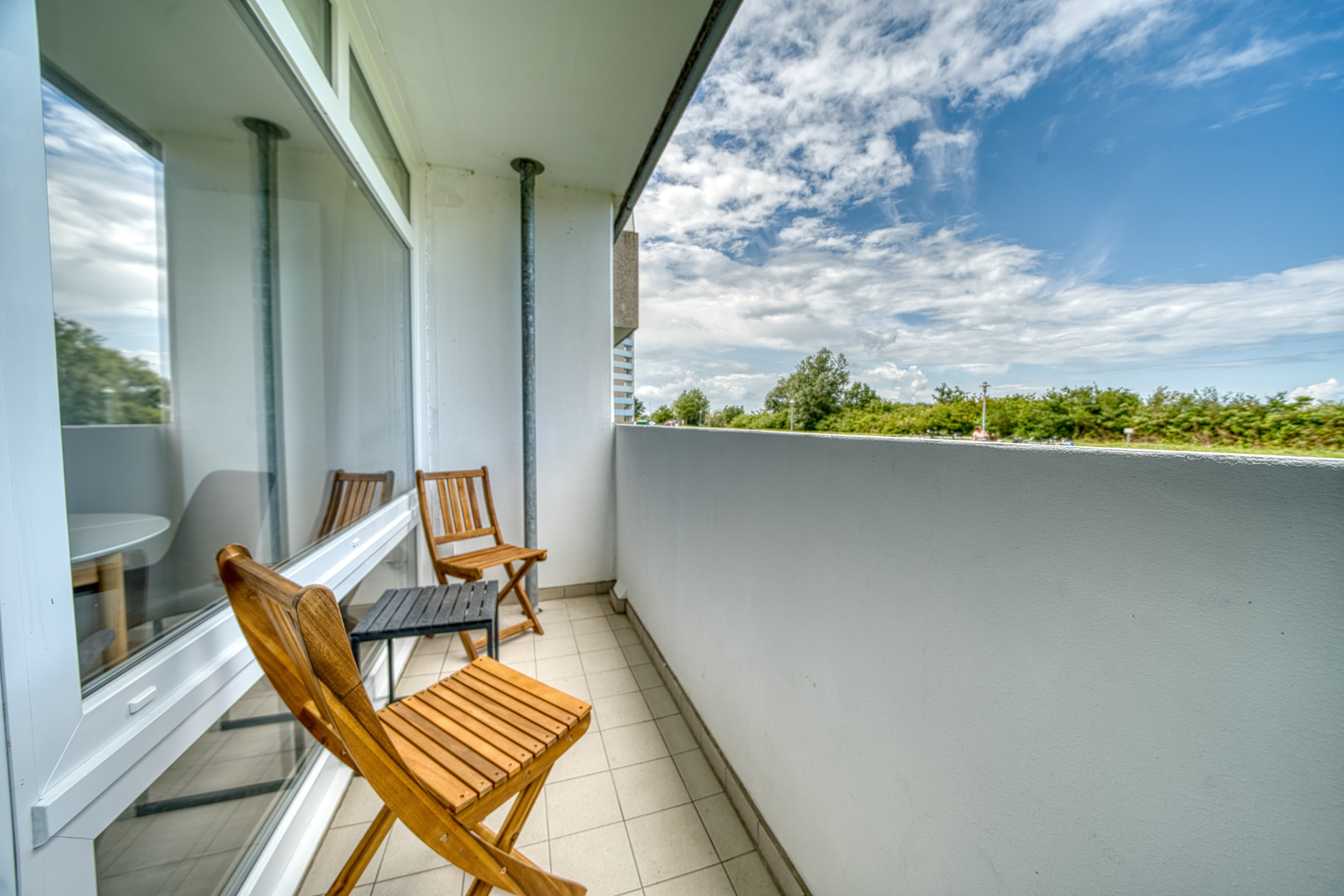 Genießen Sie die Ruhe auf dem nordseitig ausgerichteten Balkon mit Blick ins Grüne ideal für ein entspanntes Frühstück oder ein gutes Buch.