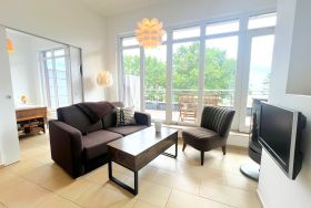 Die Wohnung ist ideal für 2 Personen, bietet aber durch ein bequemes Schlafsofa im Wohnbereich Platz für eine weitere Person. Das separate Schlafzimmer ist mit einem gemütlichen Doppelbett ausgestattet und bietet ausreichend Stauraum.