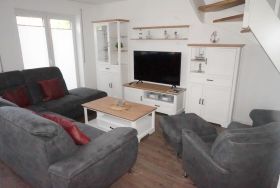 Das Ferienhaus ist für bis zu 6 Personen und zwei Kleinkinder eingerichtet. Neben dem Haus befinden sich zwei PKW-Stellplätze und hinter dem Haus ist ein abschließbarer Fahrradschuppen mit 6 Steckdosen zum Aufladen von E-Bikes.