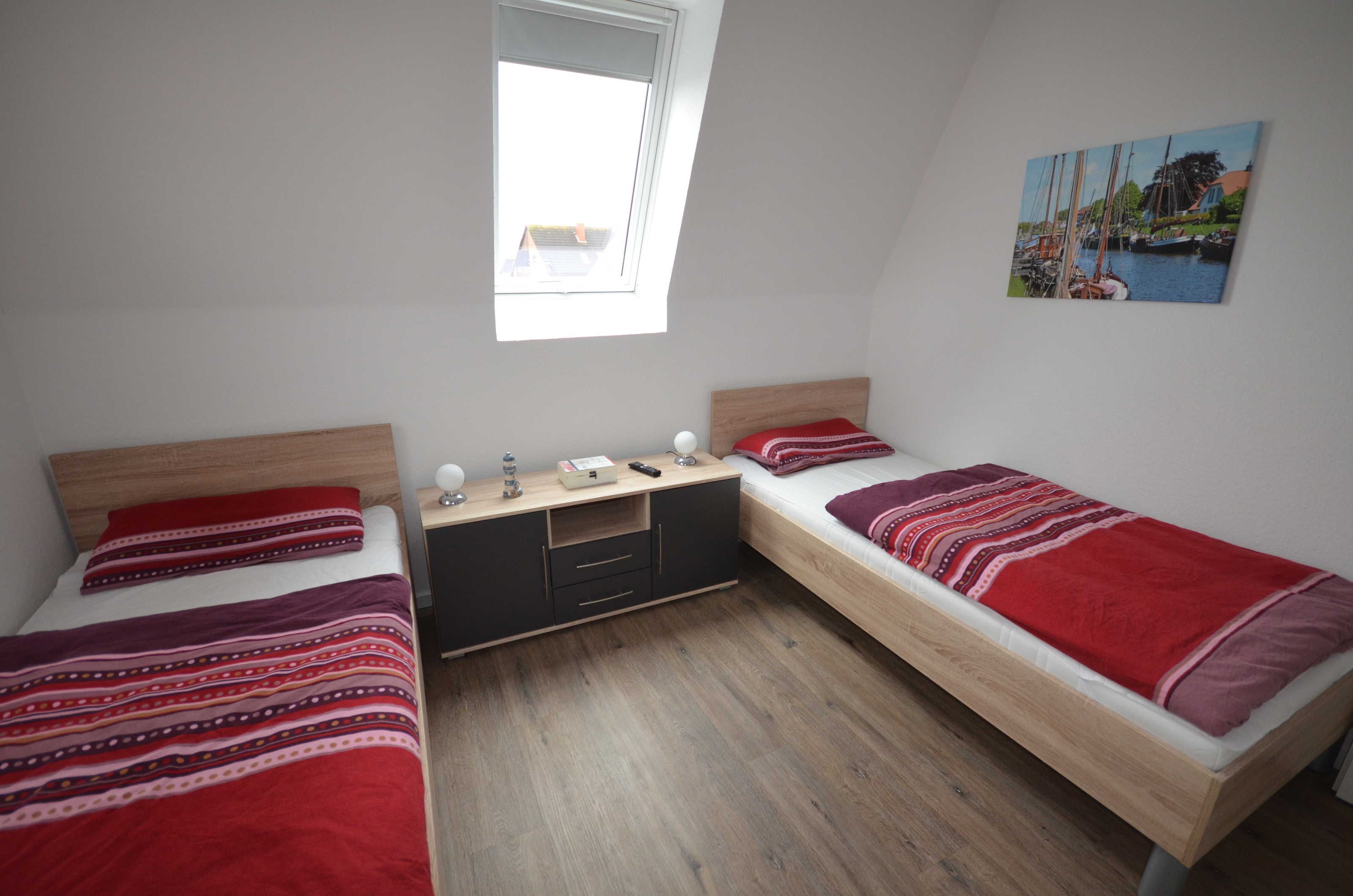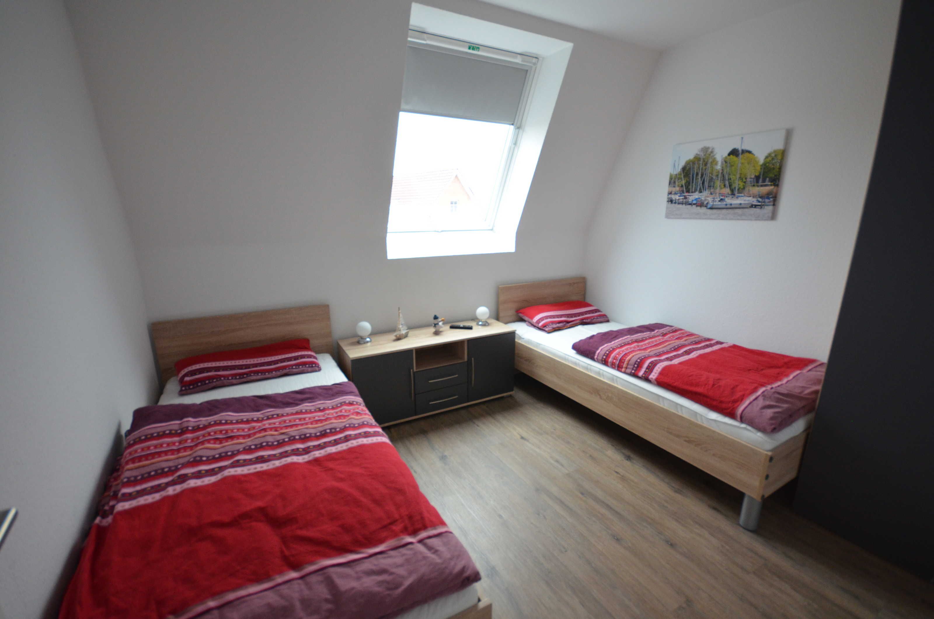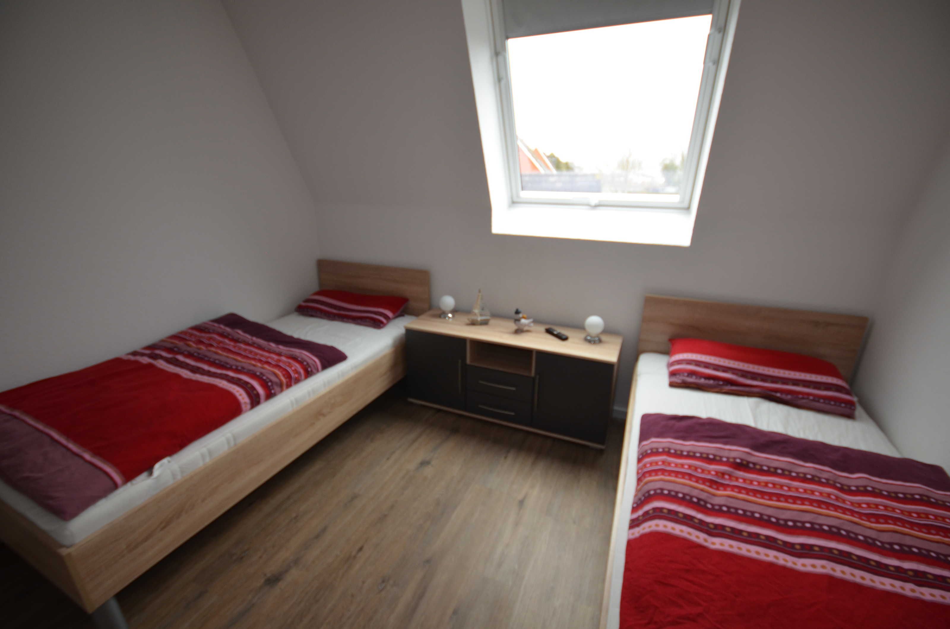 • Schlafzimmer 2 und 3 verfügen jeweils über 2 Einzelbetten (Maße: 0,90 x 2,00 Meter), Siedeboard und Schrank.