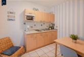 Die moderne Küchenzeile bietet alles, was Sie für die Selbstversorgung benötigen: Kühlschrank mit Gefrierfach, Herd, Backofen, Kaffeemaschine, Toaster, Mikrowelle und Wasserkocher sowie Geschirr und Besteck. Ein Essbereich ist ebenfalls vorhanden. Für Unterhaltung sorgt ein Flachbild-TV mit Anschluss, WLAN ist kostenlos nutzbar. Auch an Details wie Haartrockner, Spiegel und Rauchmelder wurde gedacht – ideal für einen sorgenfreien Aufenthalt.