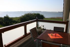 Große Balkonterrasse (10qm) mit Blick über den Breetzer Bodden.