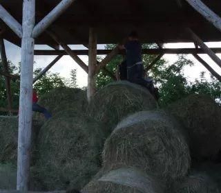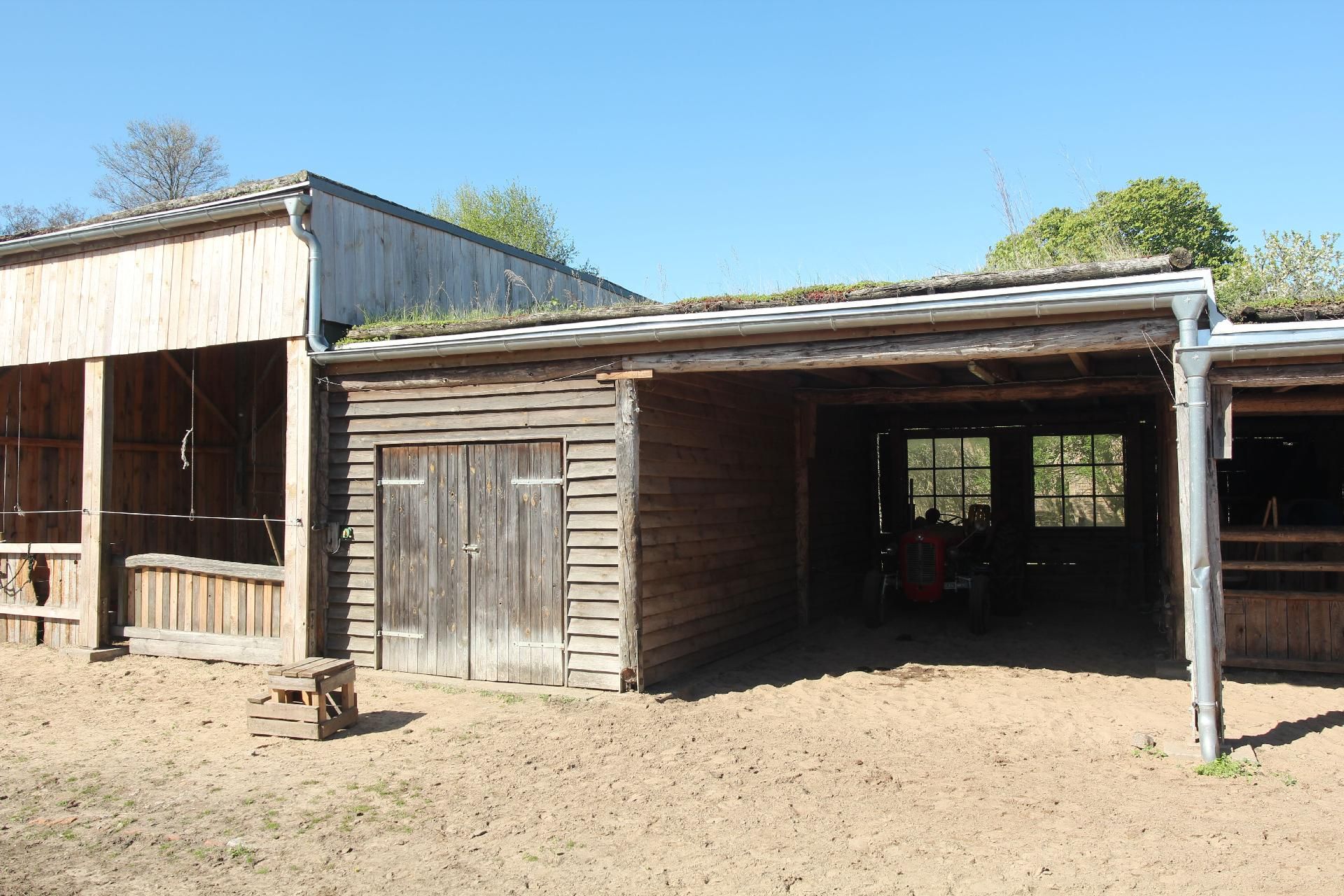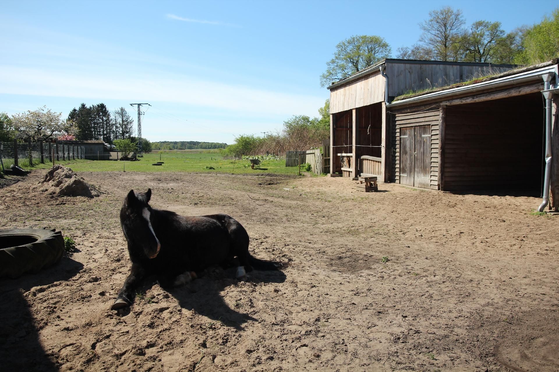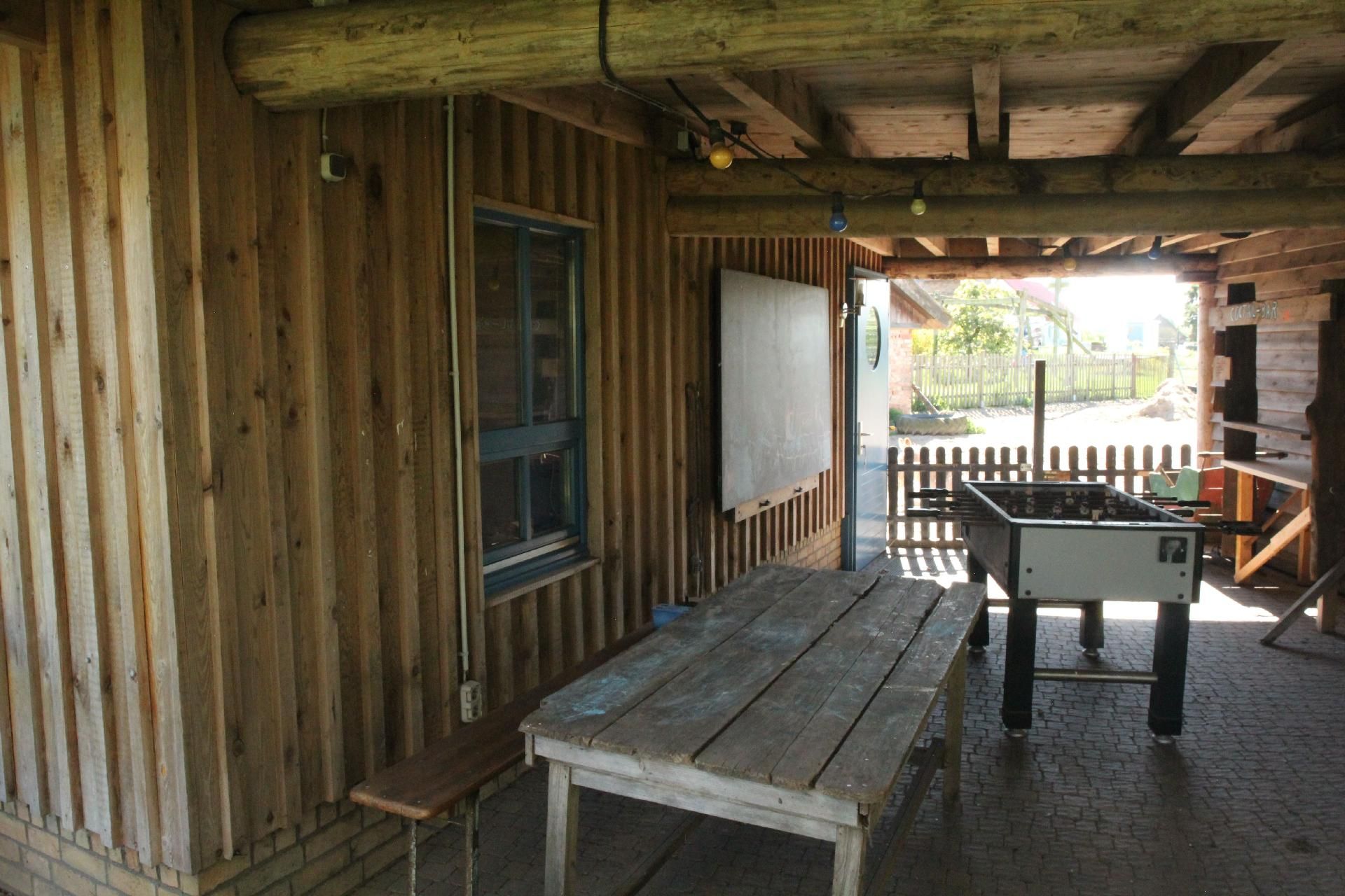 Der große Garten rund um das Haus lädt zum Spielen, Grillen und Entspannen ein. Die Streuobstwiese, der Holunderwald und der Spielplatz mit Heuballen vermitteln echtes Bauernhof-Feeling. Ein besonderes Highlight ist die halboffene Scheune, die bei jedem Wetter einen geschützten Platz im Freien bietet. Auf dem angrenzenden Hof gibt es Ponys und Esel, die gestreichelt, gekuschelt und nach Absprache auch geritten werden dürfen.