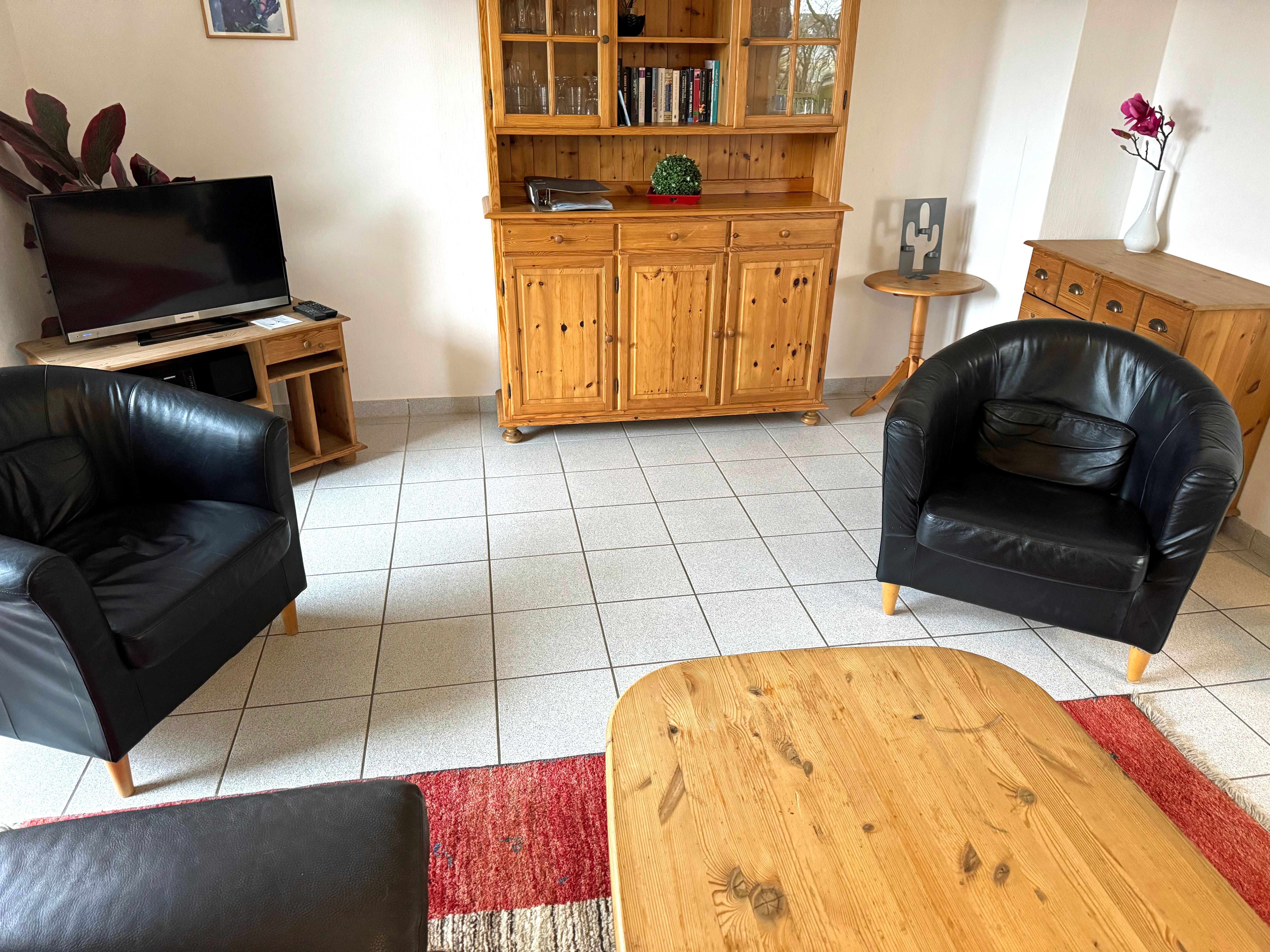 Im Erdgeschoss erwartet Sie ein großzügiges Wohnzimmer mit einem gemütlichen Wohn- und Essbereich. Die angrenzende Küche ist komplett ausgestattet inklusive Geschirrspülmaschine, Mikrowelle und weiteren Annehmlichkeiten. Vom Flur aus gelangen Sie zu einem zusätzlichen Bad mit Dusche und WC. Ein weiterer Pluspunkt ist die möblierte Außenterrasse inkl. Strandkorb, die direkt vom Wohnzimmer aus zugänglich ist. Im Abstellraum ist die Waschmaschine zu finden.