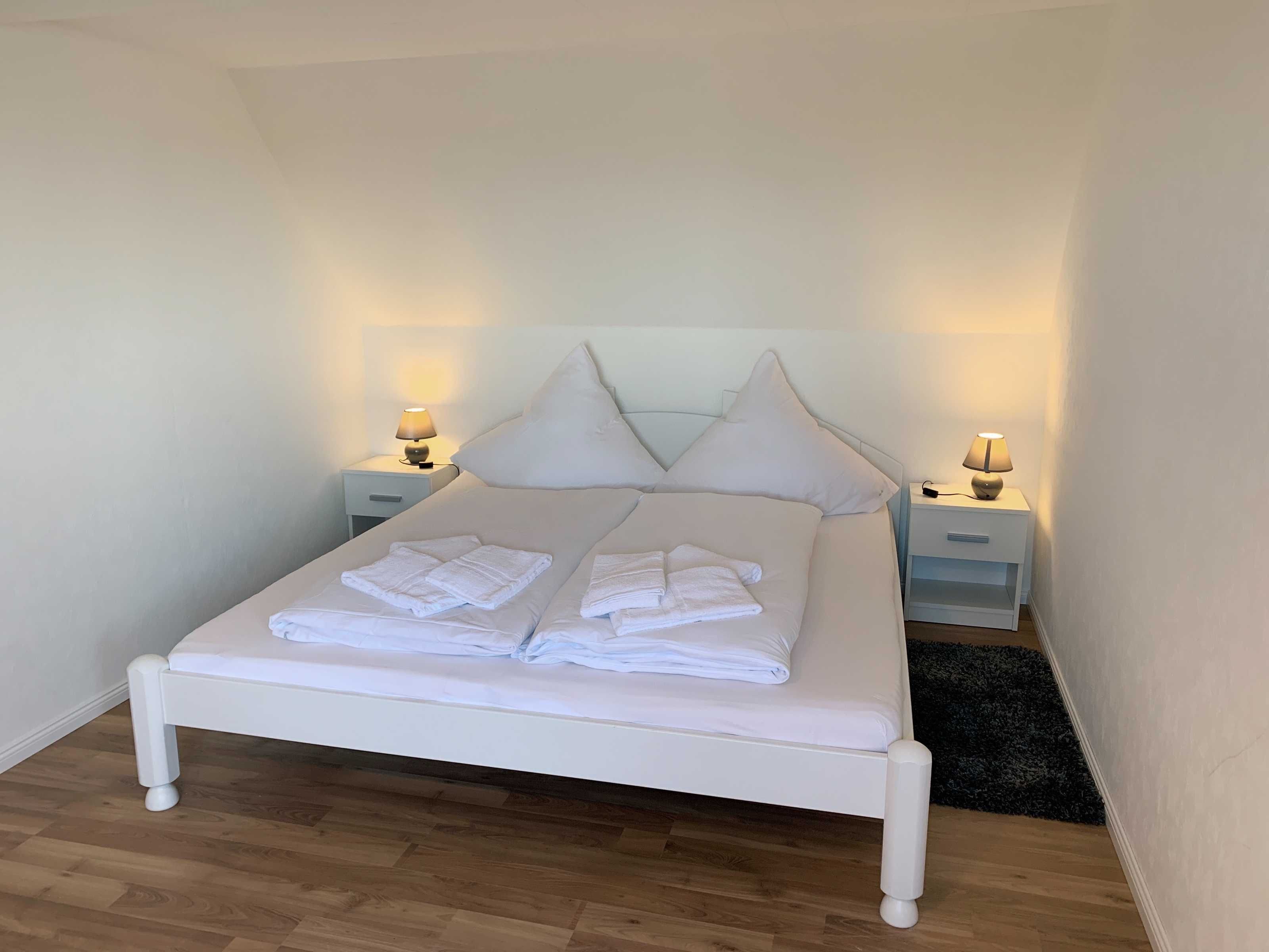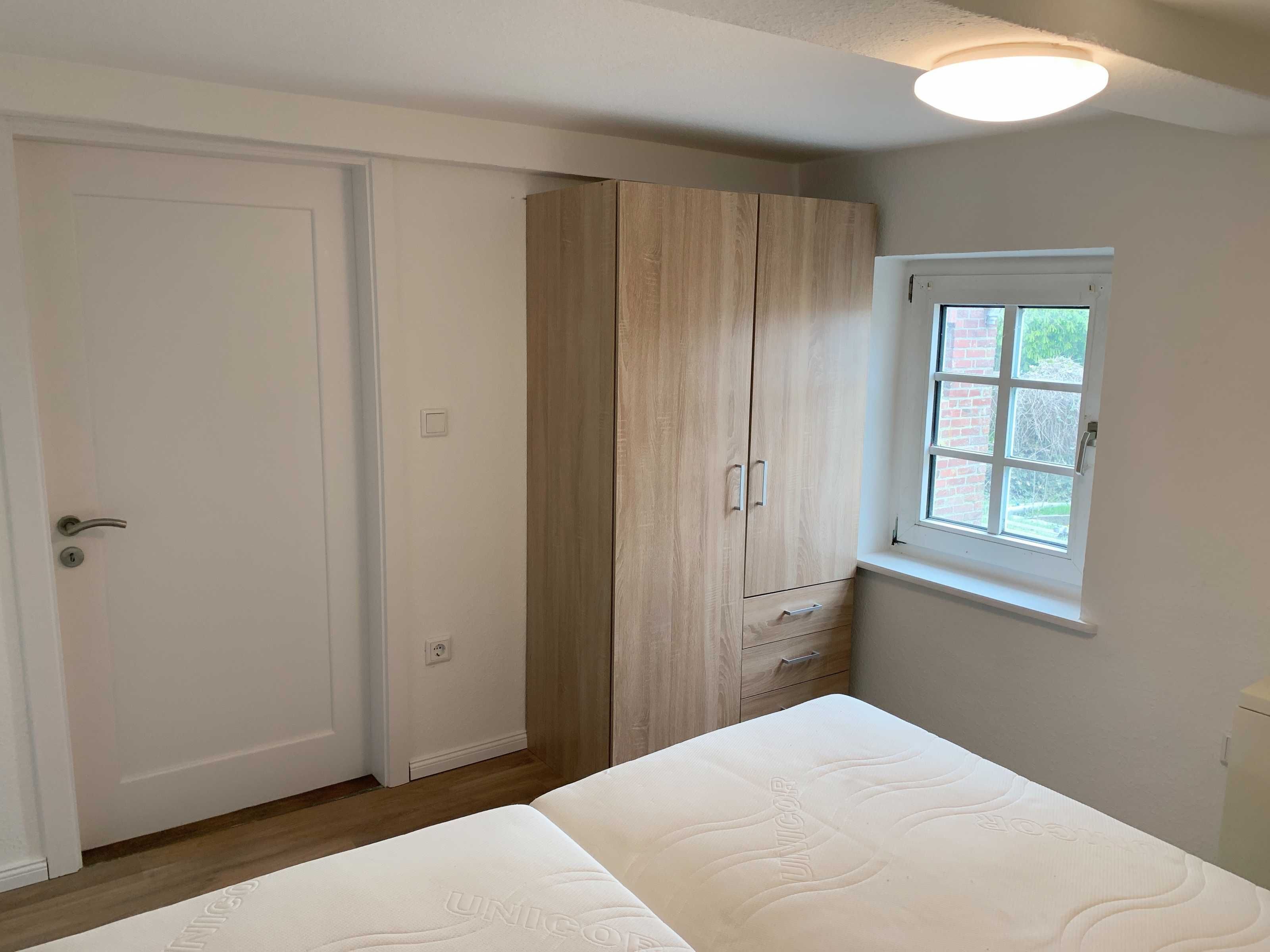 Von der Küche kommt man in das erste der drei Schlafzimmer, in welchem ein 160cm Doppelbett steht.