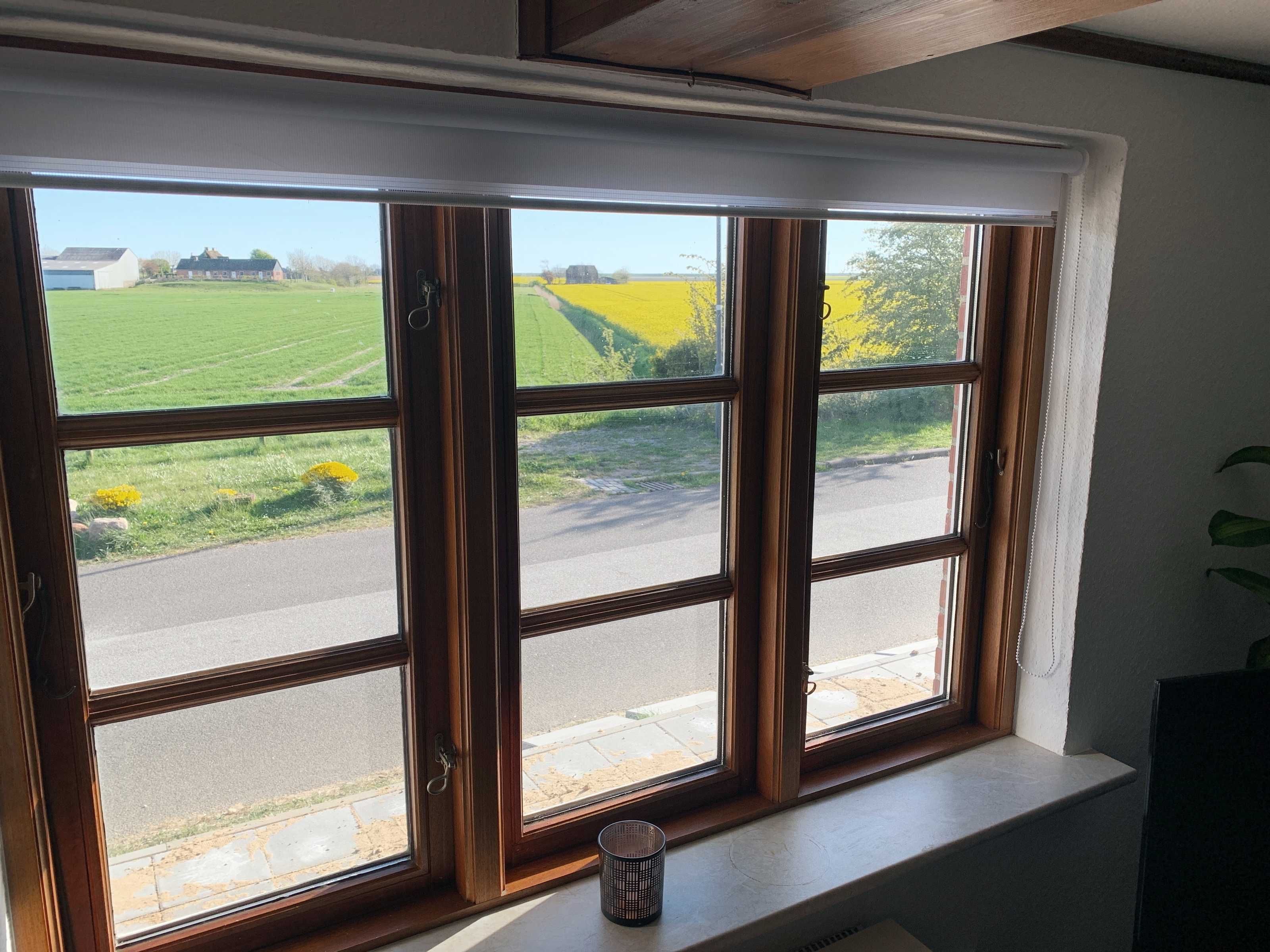Über eine offene Treppe erreicht man den ersten Stock. Oben sind zwei große Schlafzimmer. Das erste mit zwei 90cm Einzelbetten und tollem Blick ins Land rein. Das zweite Schlafzimmer, mit 180cm Doppelbett bietet sogar Meerblick und man kann den Schafen und Lämmern beim spielen und sonnen zuschauen.