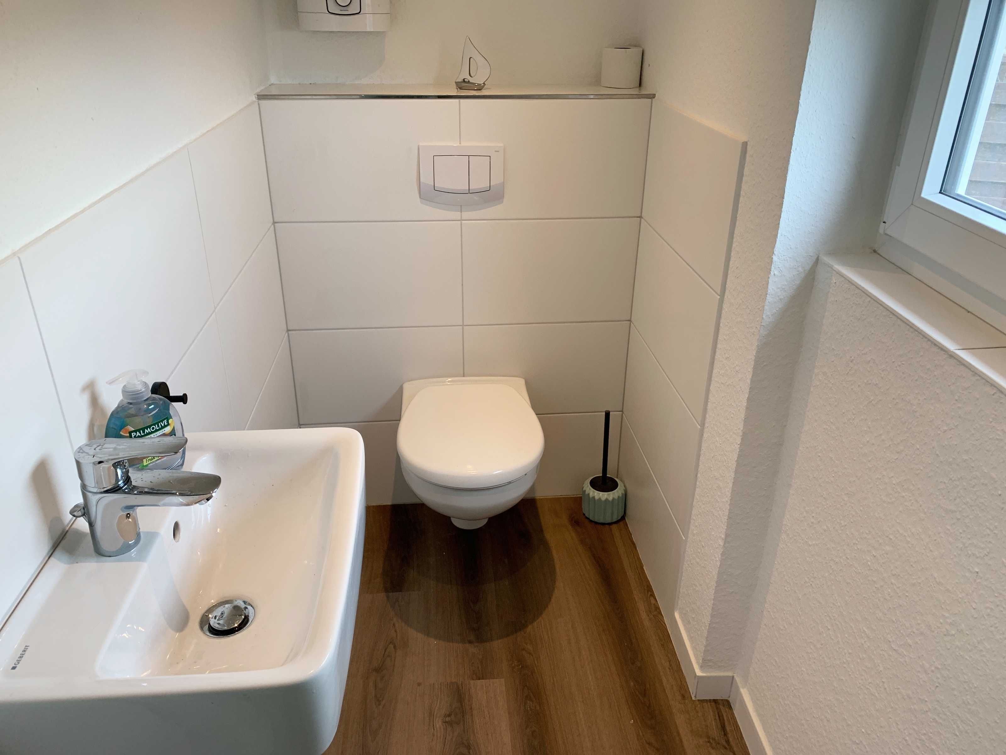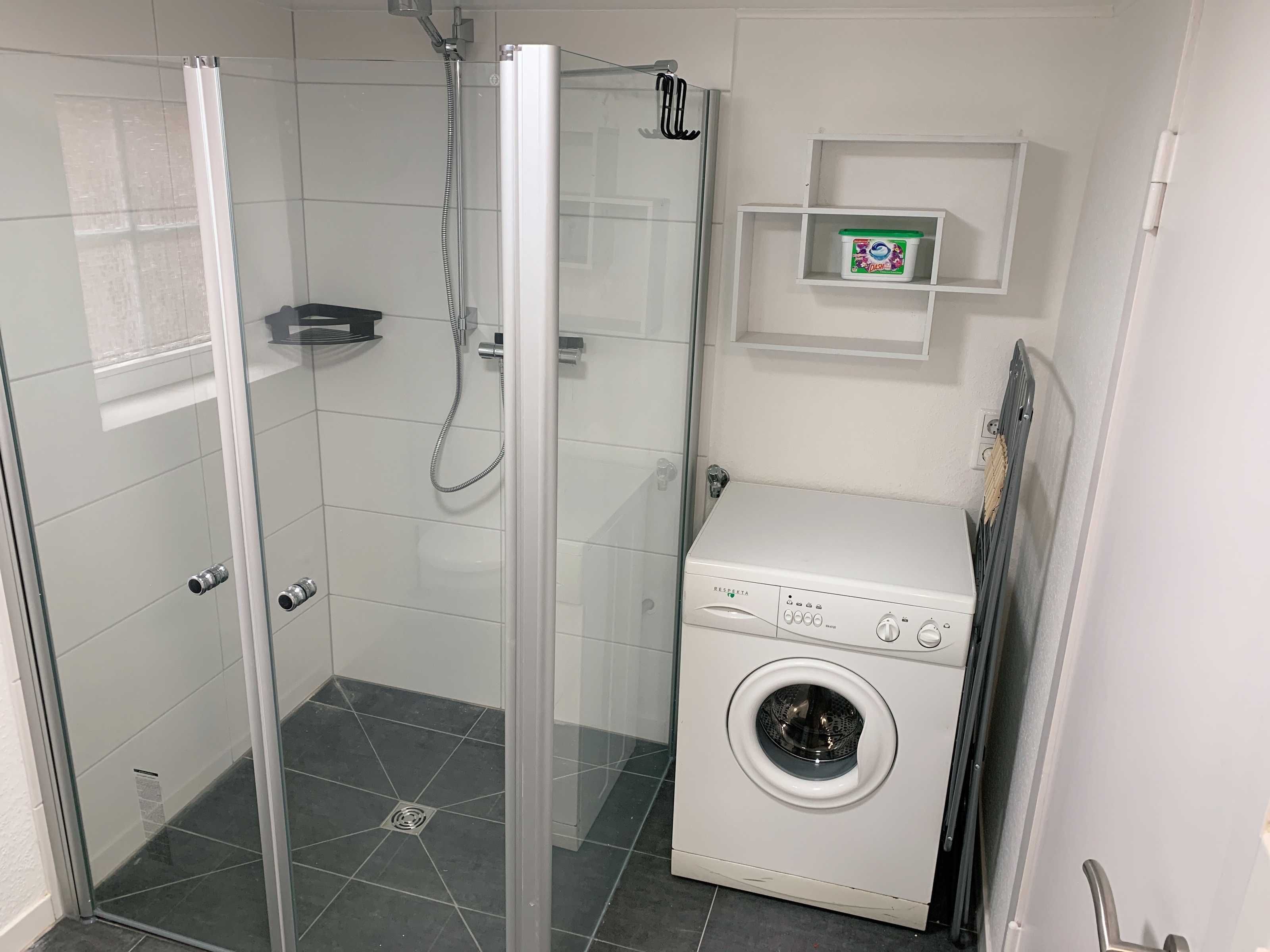 Weiterhin ist unten das Duschbad mit Waschmaschine und ein weiteres Gäste-WC.