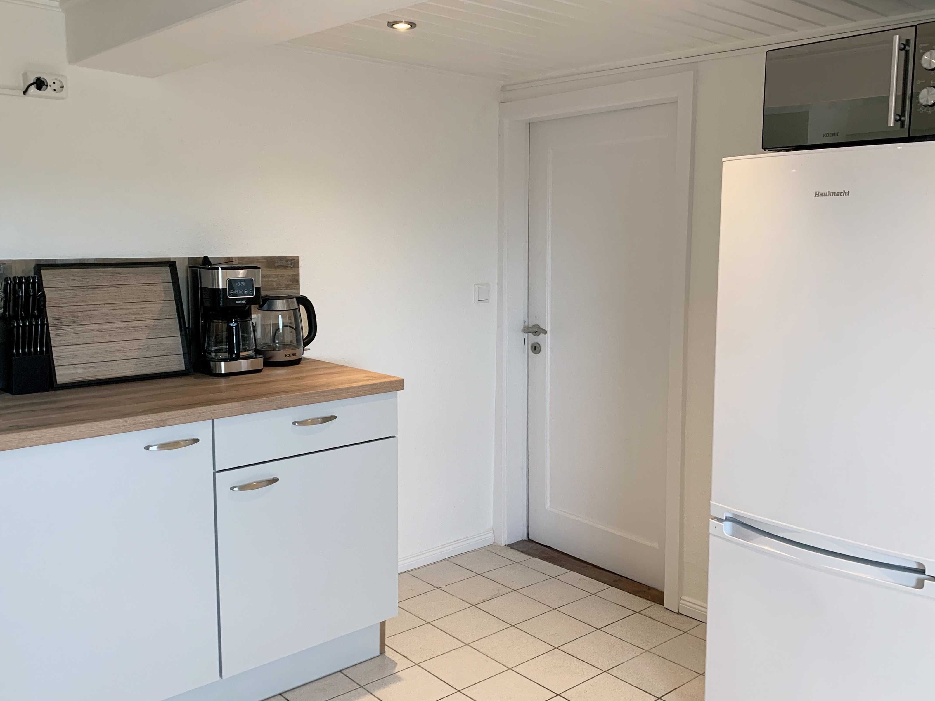 Die Küche ist ausgestattet mit Geschirrspüler, Kühl- Gefrierkombi, Herd, Backofen, Mikrowelle, Kaffeemaschine und Wasserkocher. Und auch fürs Kochen ist alles vorhanden, so dass man seiner Kulinarik freien Lauf lassen kann.
