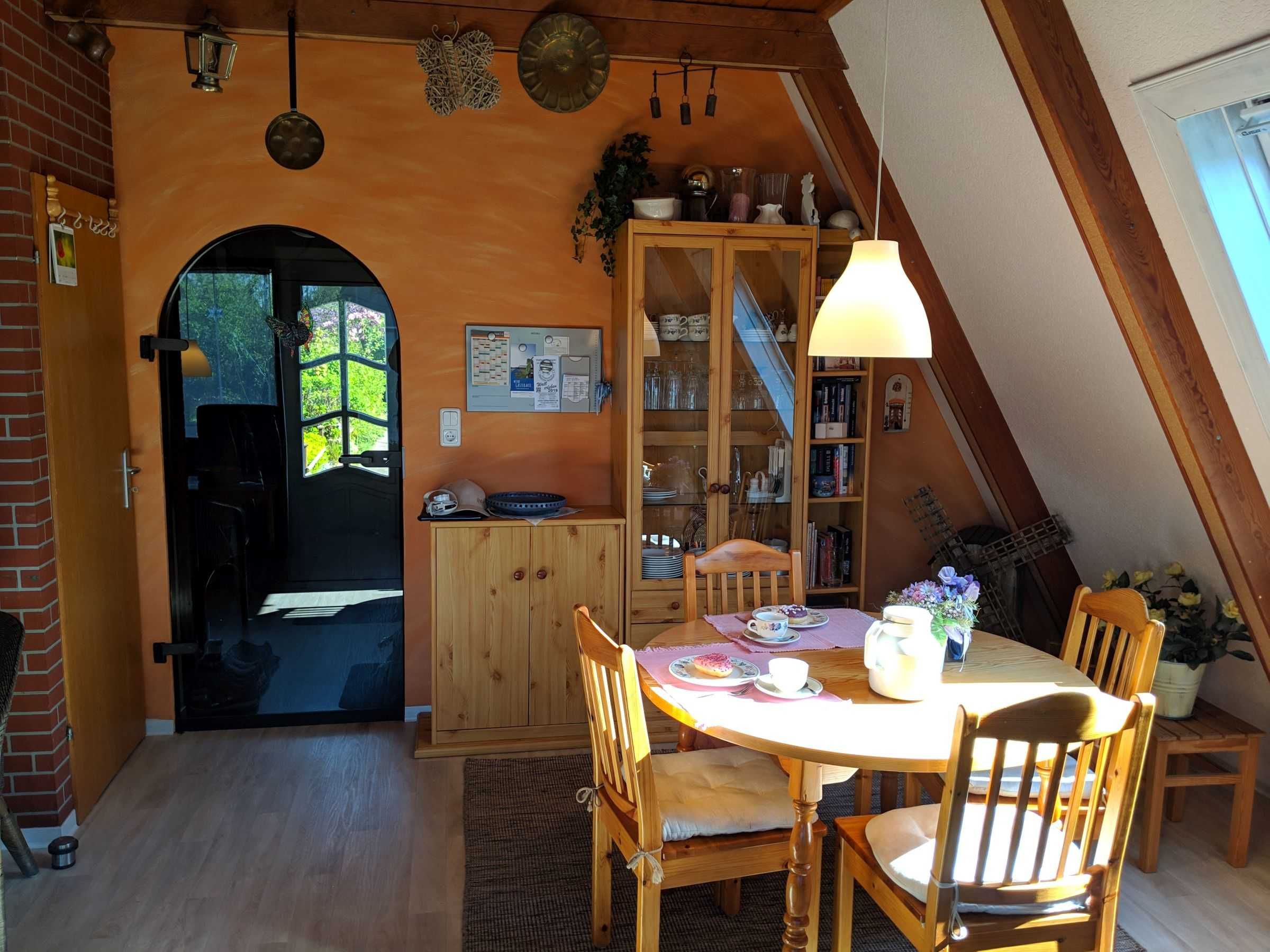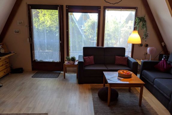 Gemütliches individuell eingerichtetes Nurdachferienhaus für maximal vier Personen mit zirka 65 m². Mit großem Garten am Eckgrundstück im Wendehammer nur 100 Meter vom Deich mit Badestrand. Die Einrichtung des Wohnzimmer u.A. Sitzecke mit Couch, Essbereich, Fernseher mit Sat-Anschluß, Video und Radio/CD. Voll ausgestattete Küche u.A. Spüle, 4-Plattenherd mit Backofen, Mikrowelle und Spülmaschine. Zwei Schlafzimmer u.A.jeweils zwei Einzelbetten, Nachttisch, Schrank, Kinderreisebett. Bad u.A. Dusche, Waschbecken und Toilette.