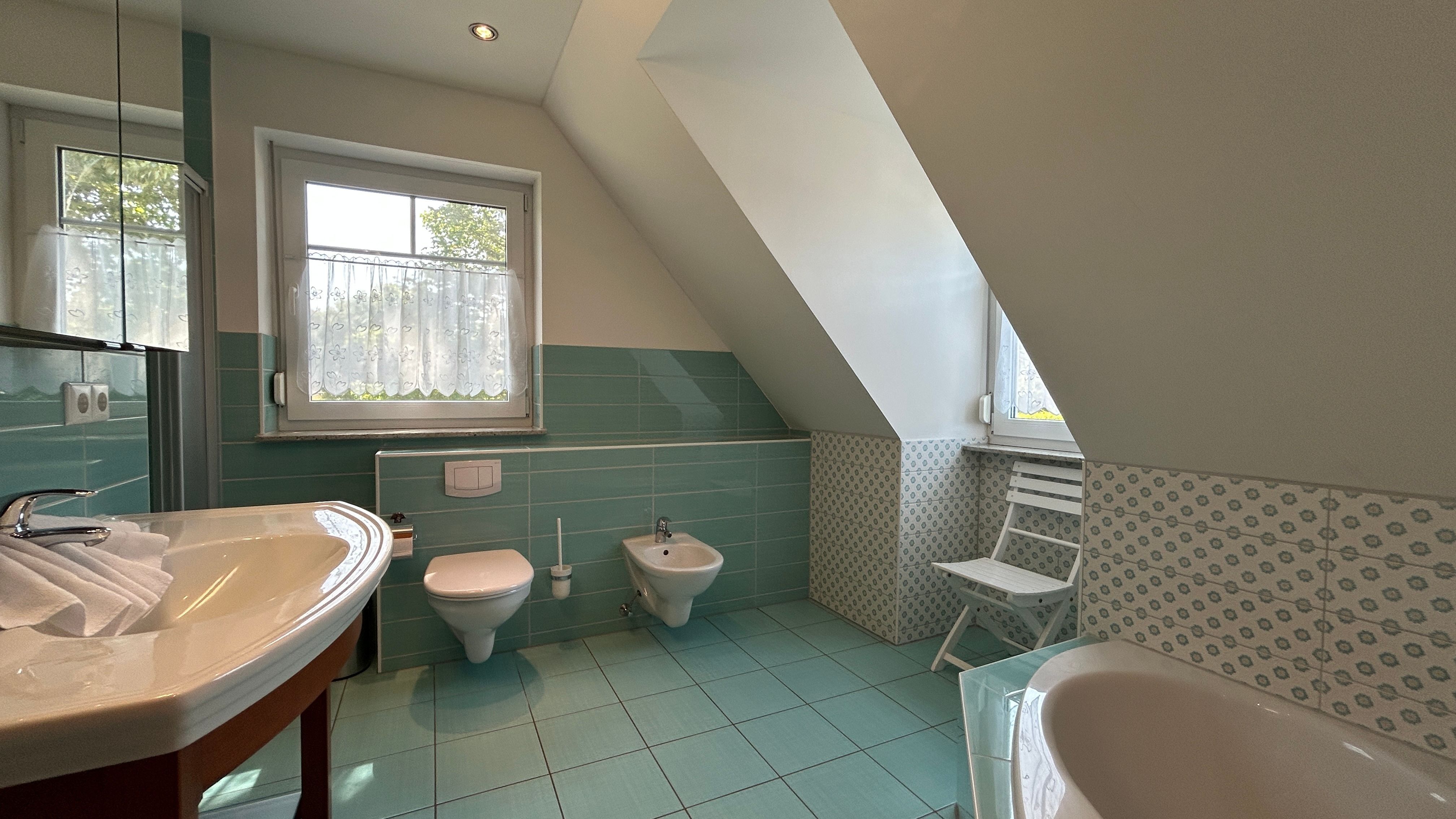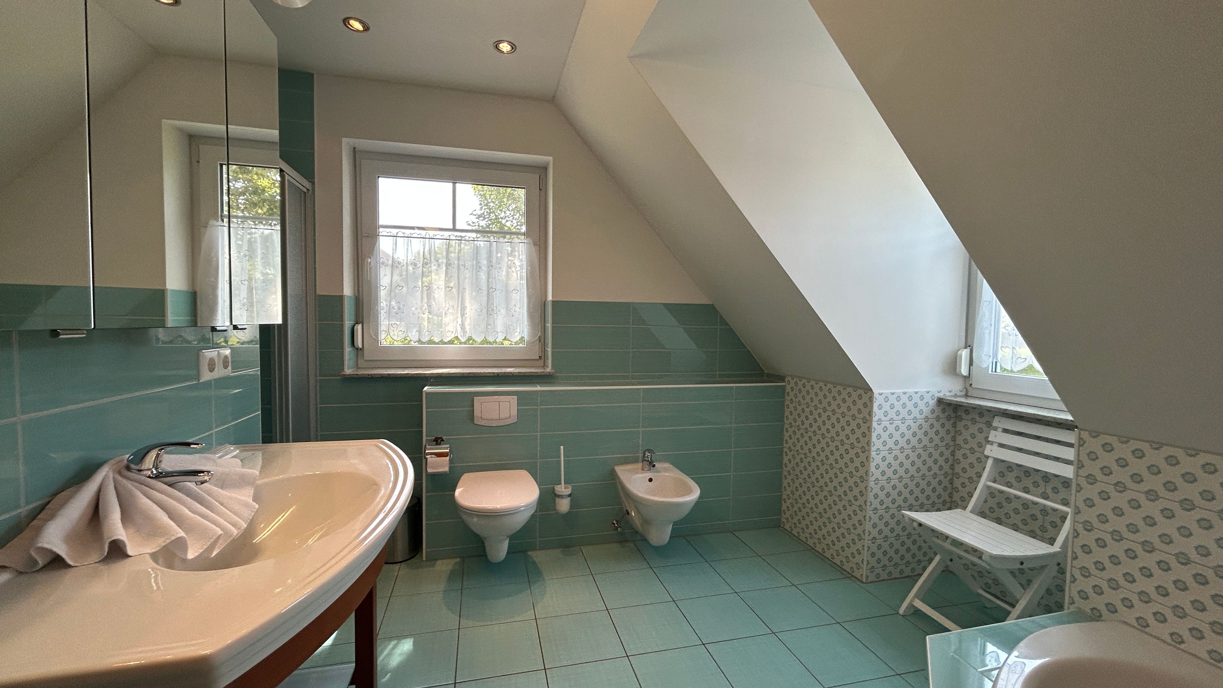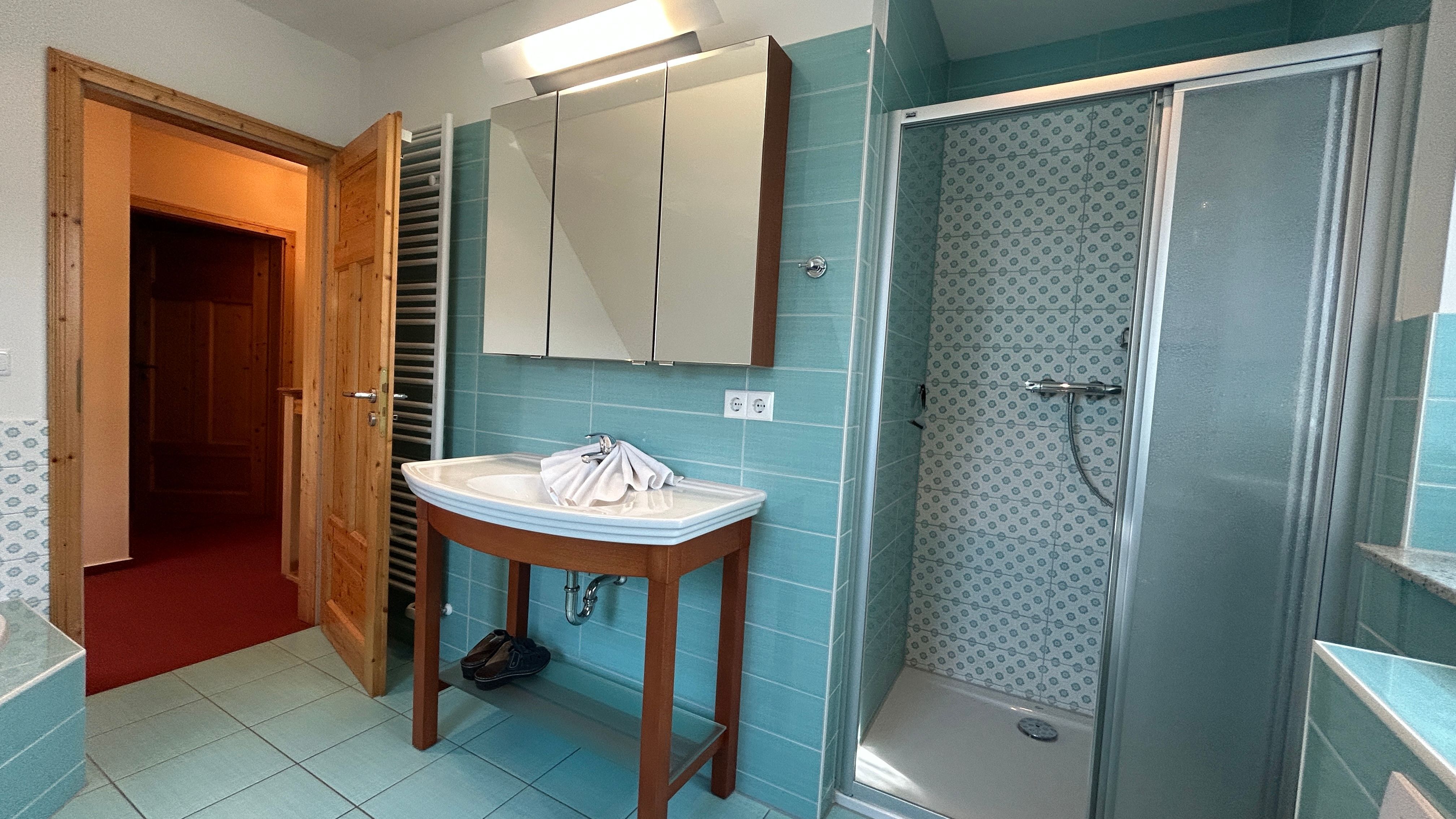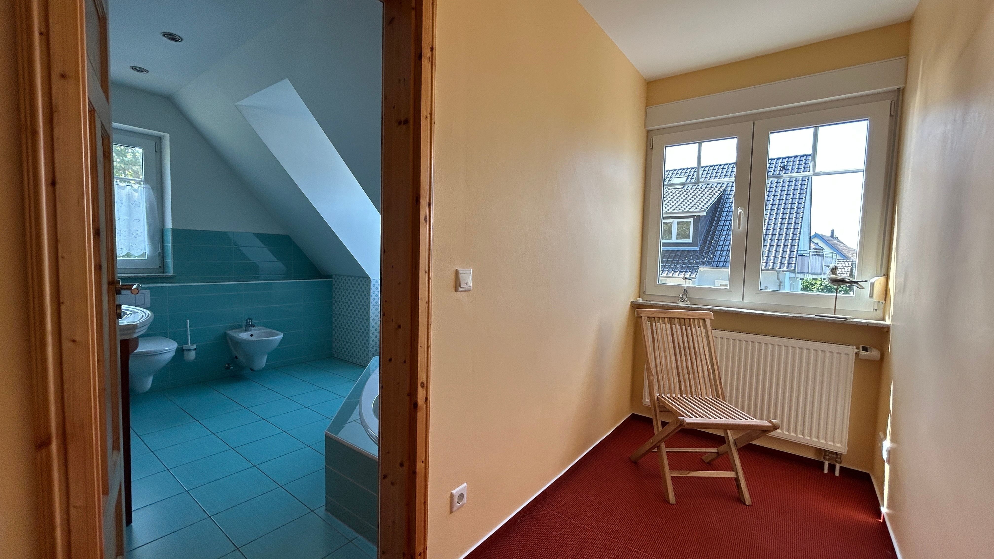 Im Erdgeschoss befindet sich ebenfalls ein Badezimmer mit Dusche und WC.